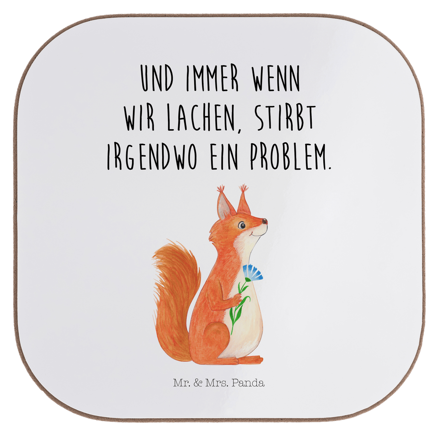 Quadratische Untersetzer Eichhörnchen Blume - mit Spruch - Weiß