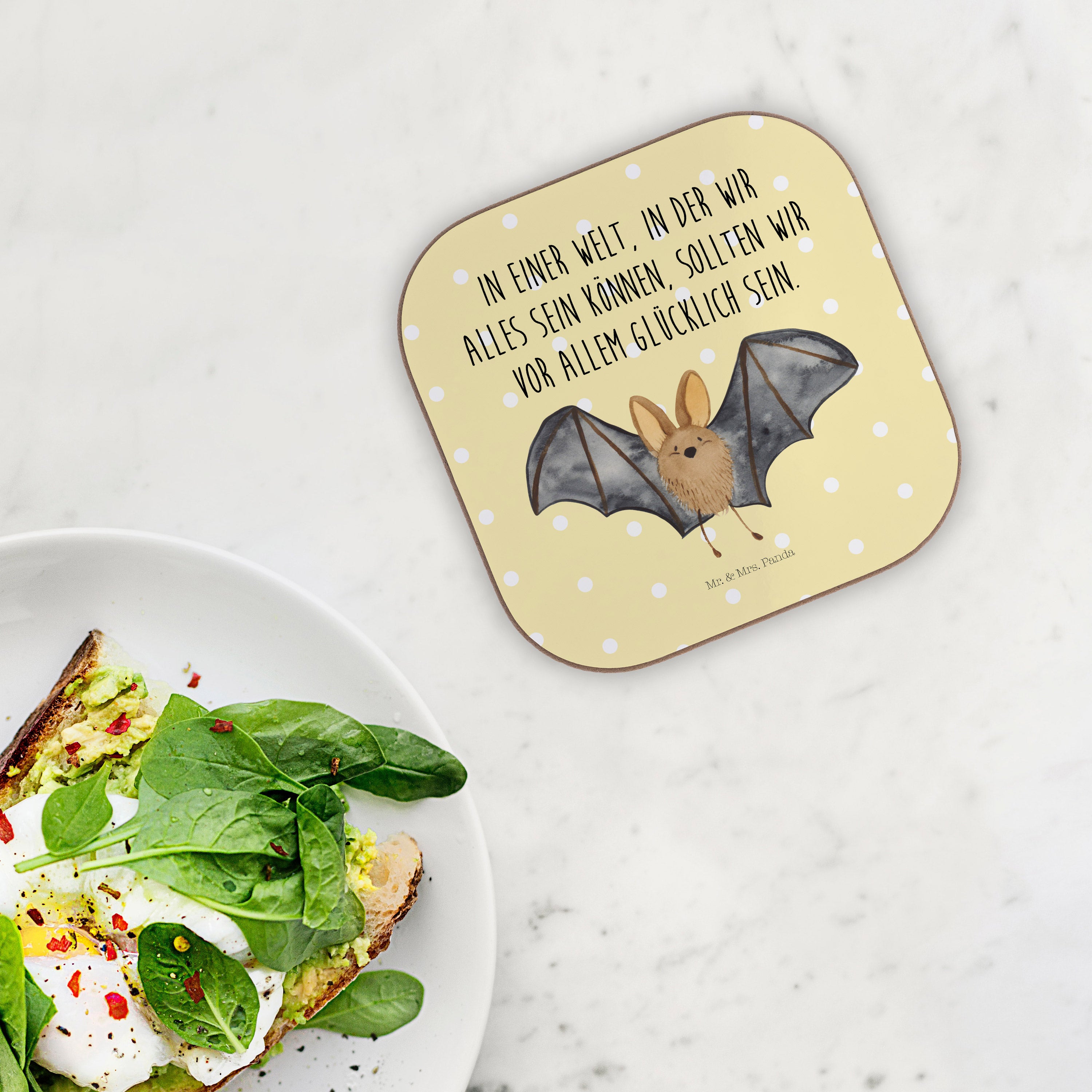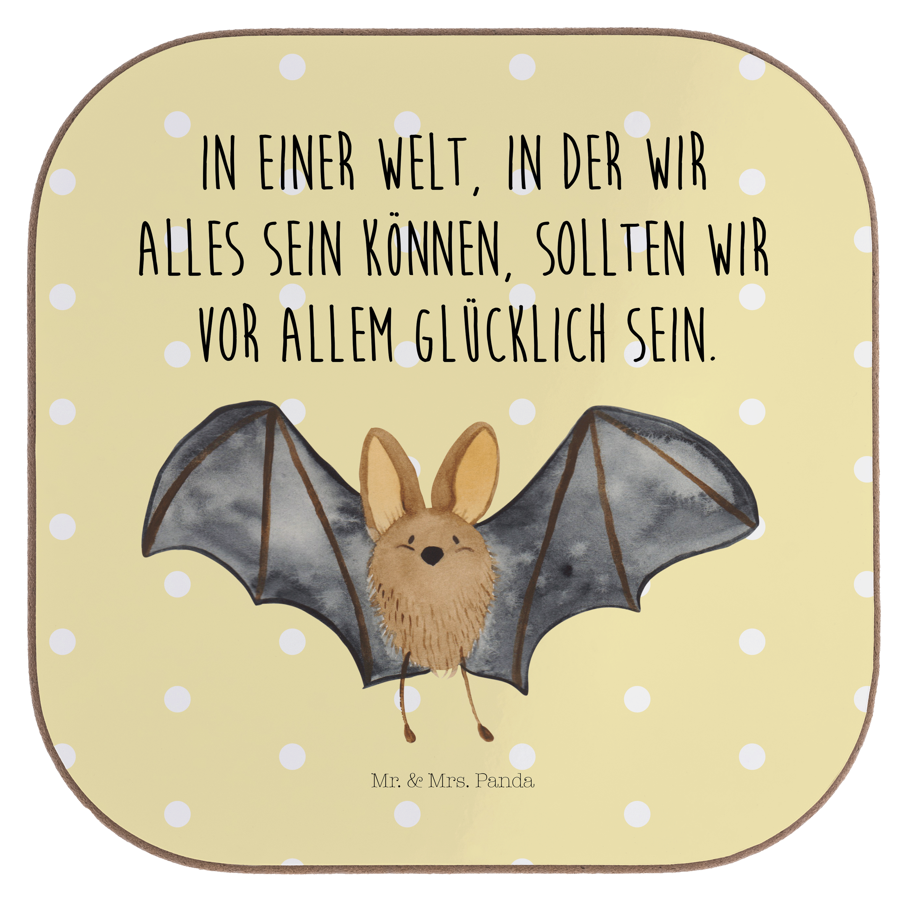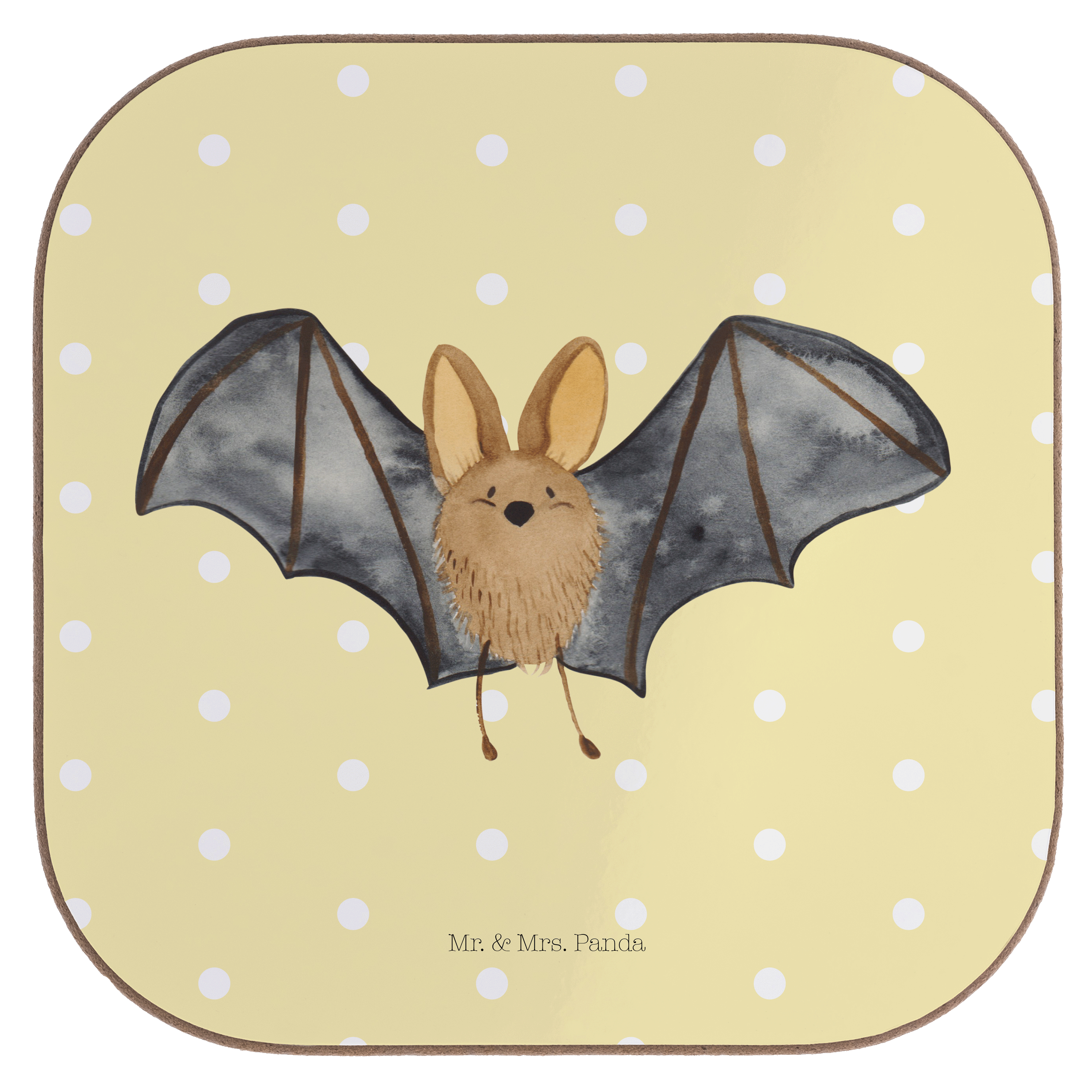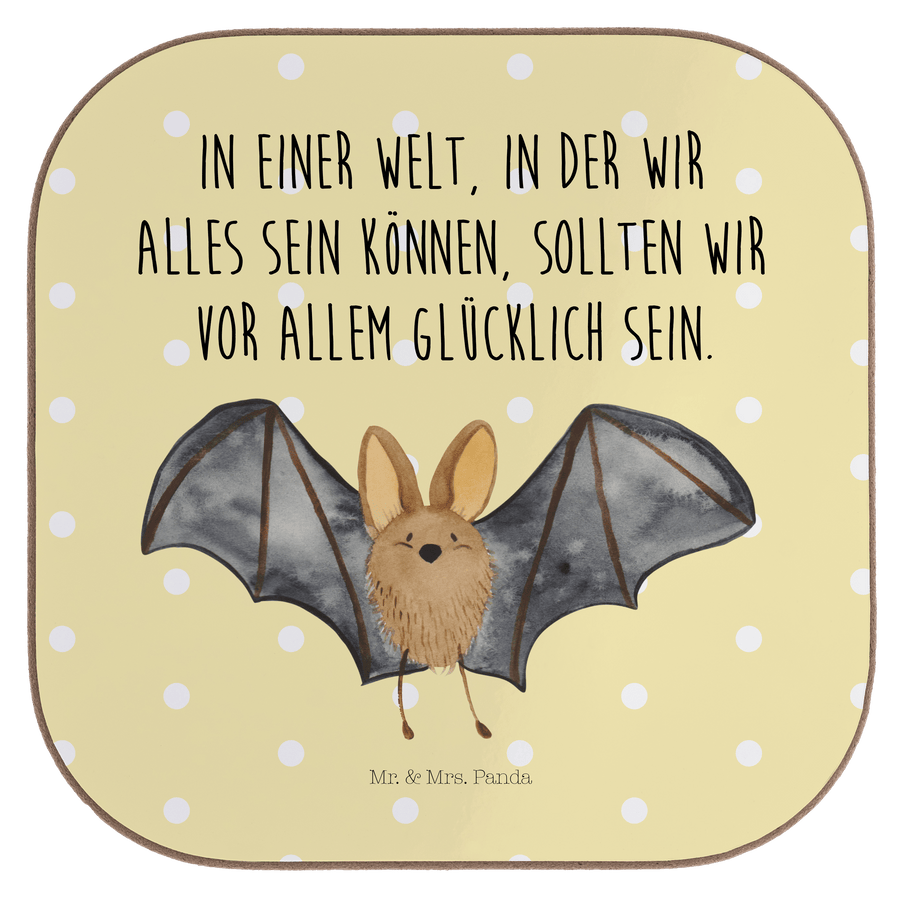 Quadratische Untersetzer Fledermaus Flügel - mit Spruch - Gelb Pastell