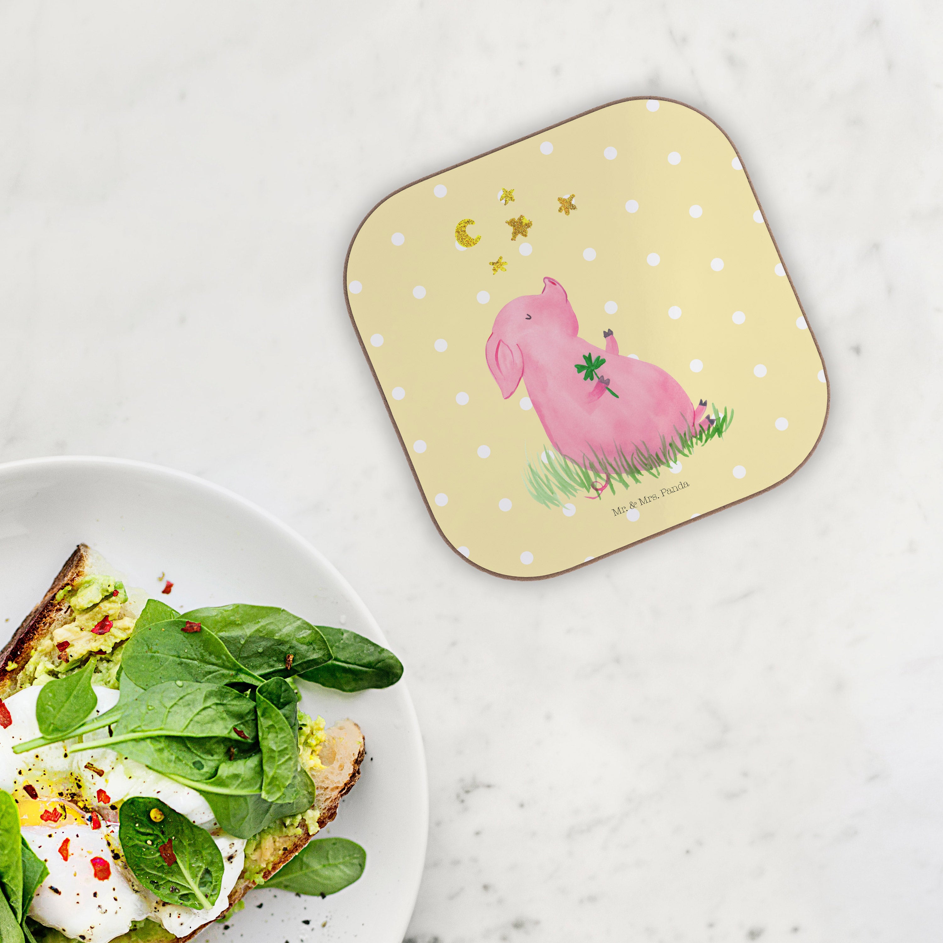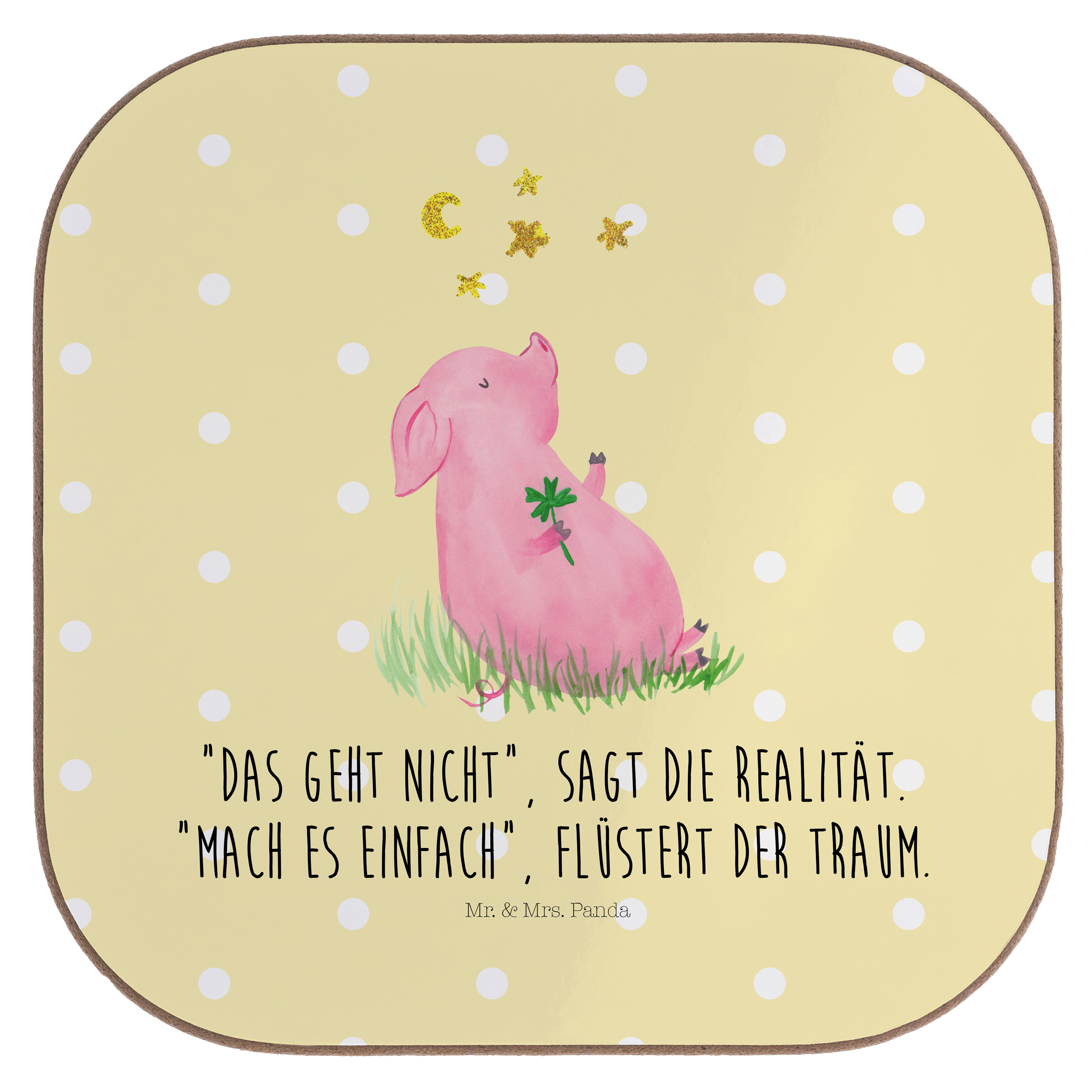 Du bist auf der Suche nach einem Weg, um das Glück in dein Leben zu lassen? Dann haben Mr. & Mrs. Panda genau das Richtige für dich - das Glücksschwein. Auf dem süßen Motiv hält ein kleines Schwein ein Kleeblatt in der Hand – das Symbol für Glück und Zufriedenheit. Das Glücksschwein ist der perfekte Begleiter für alle, die ihrem Leben eine Extraportion Glück verleihen wollen.