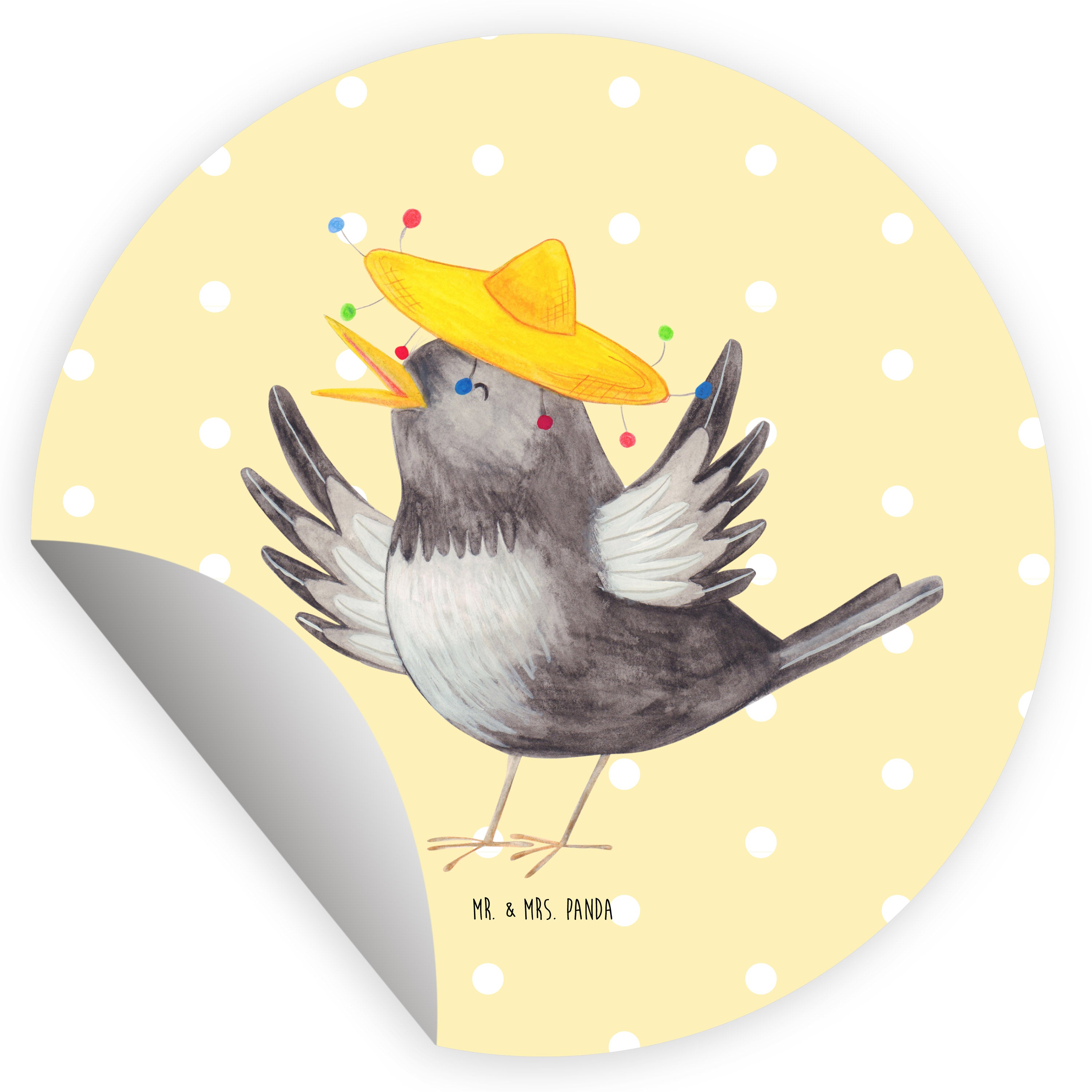 40mm Rund Aufkleber Rabe mit Sombrero - mit Spruch - Gelb Pastell
