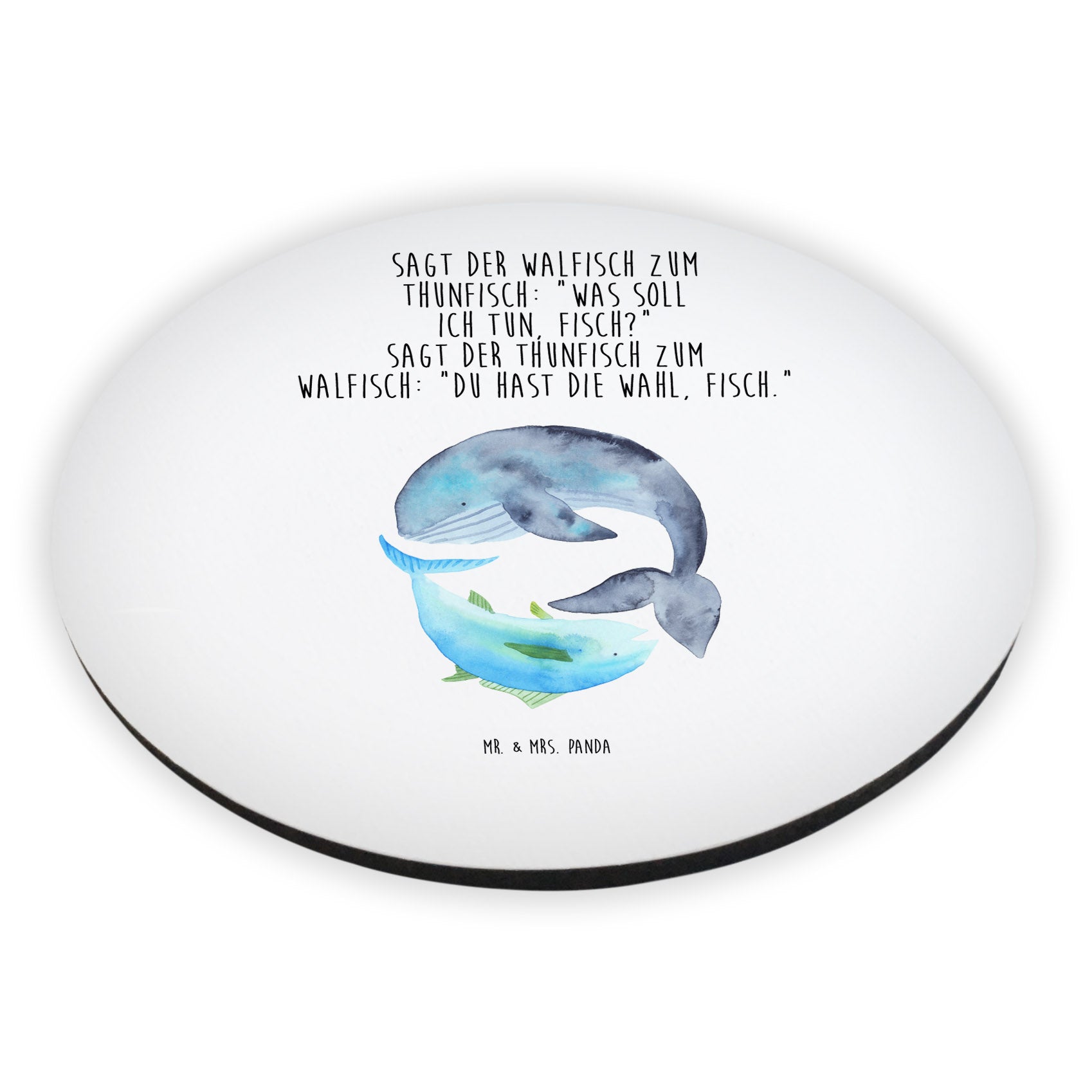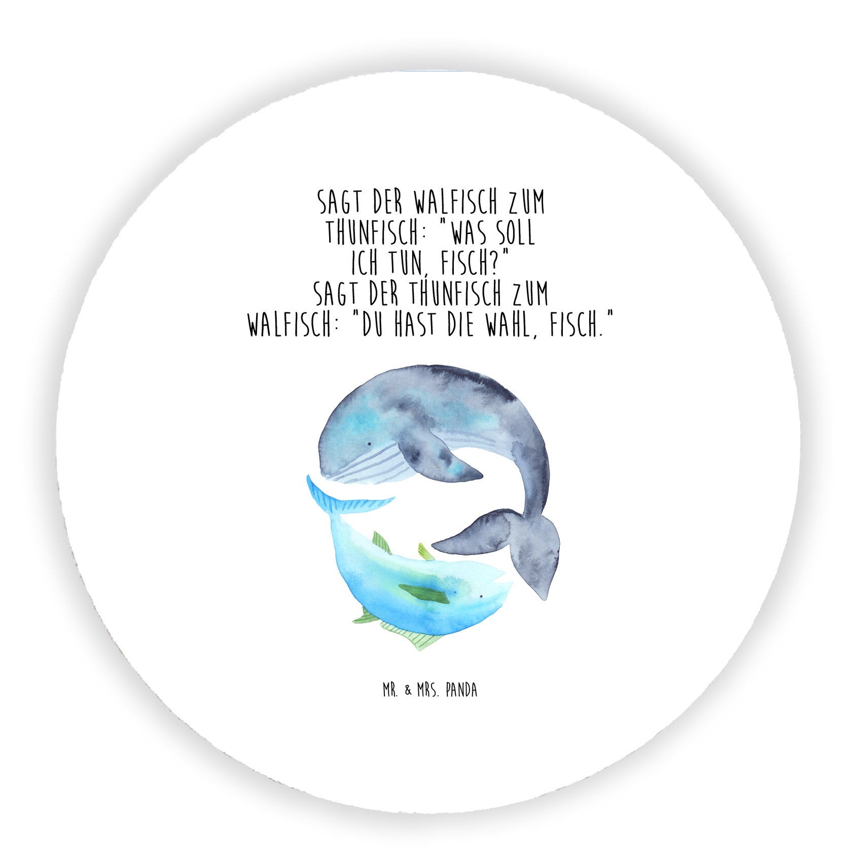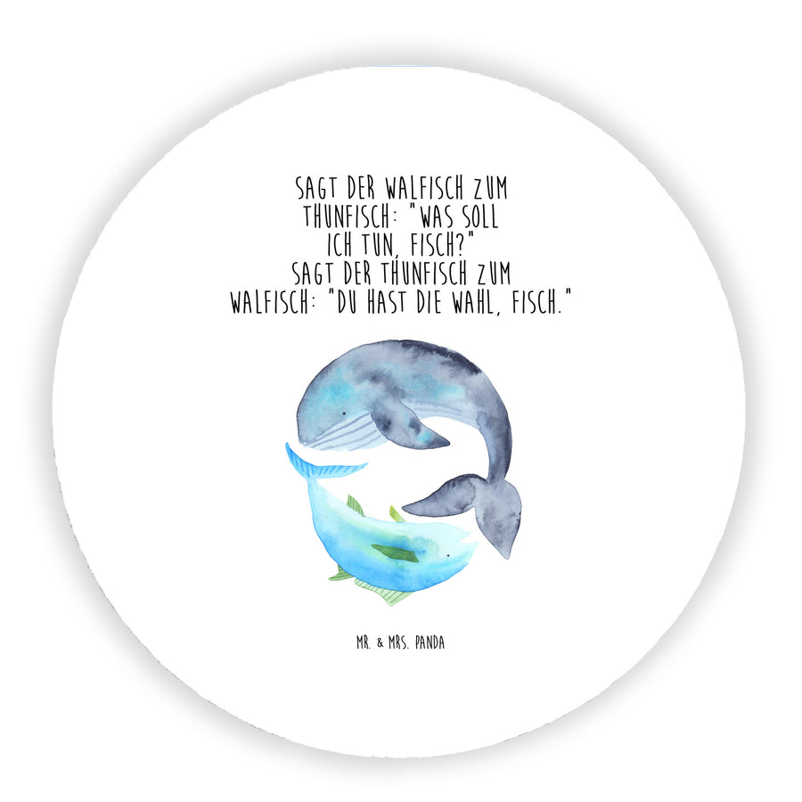 Rund Magnet Walfisch & Thunfisch - mit Spruch - Weiß