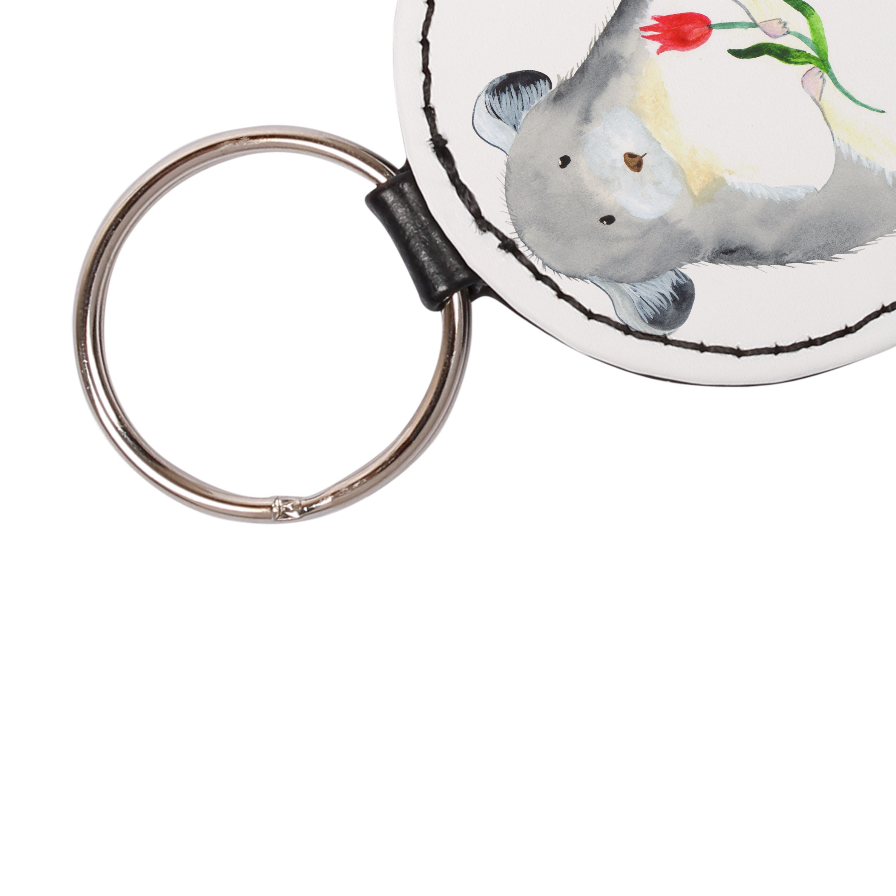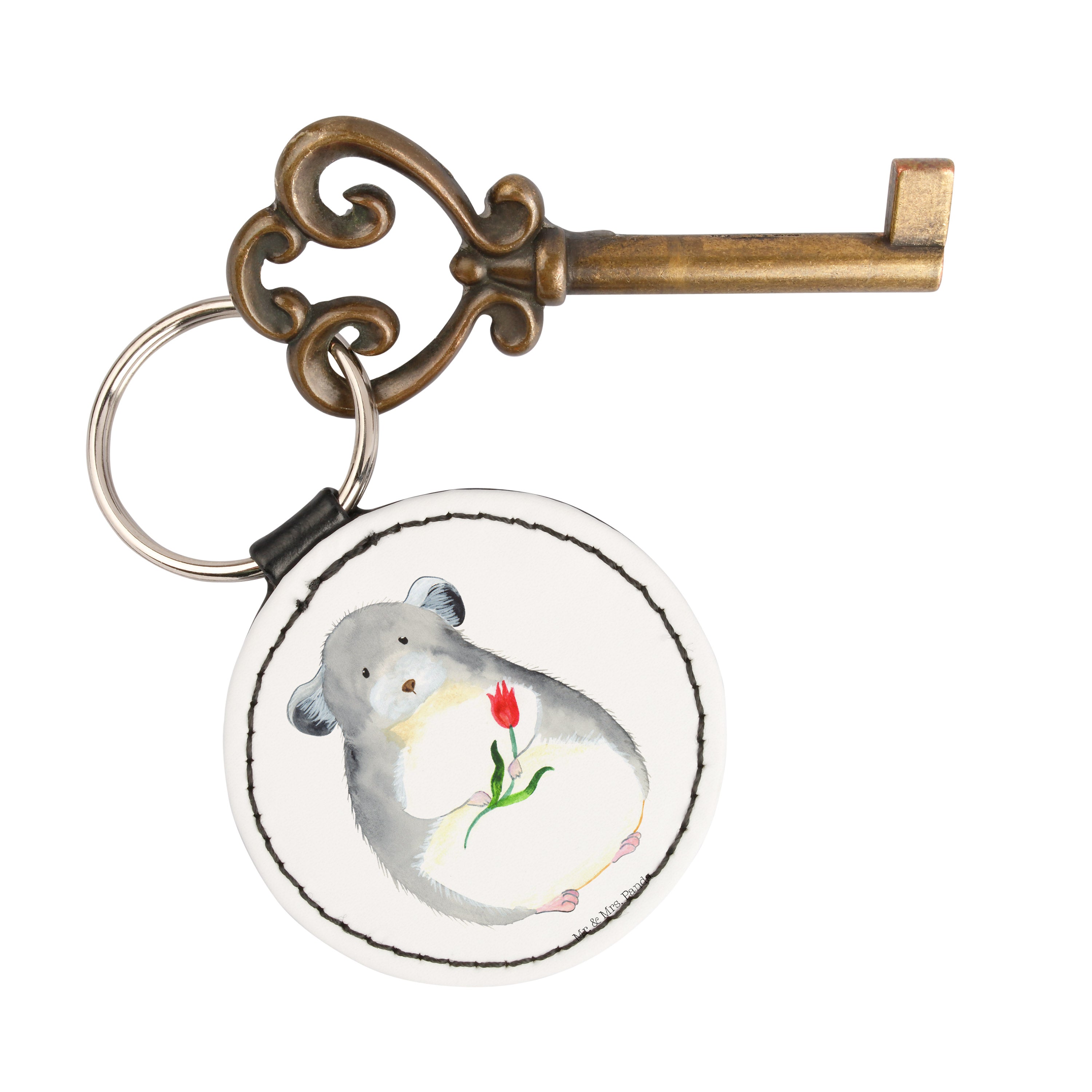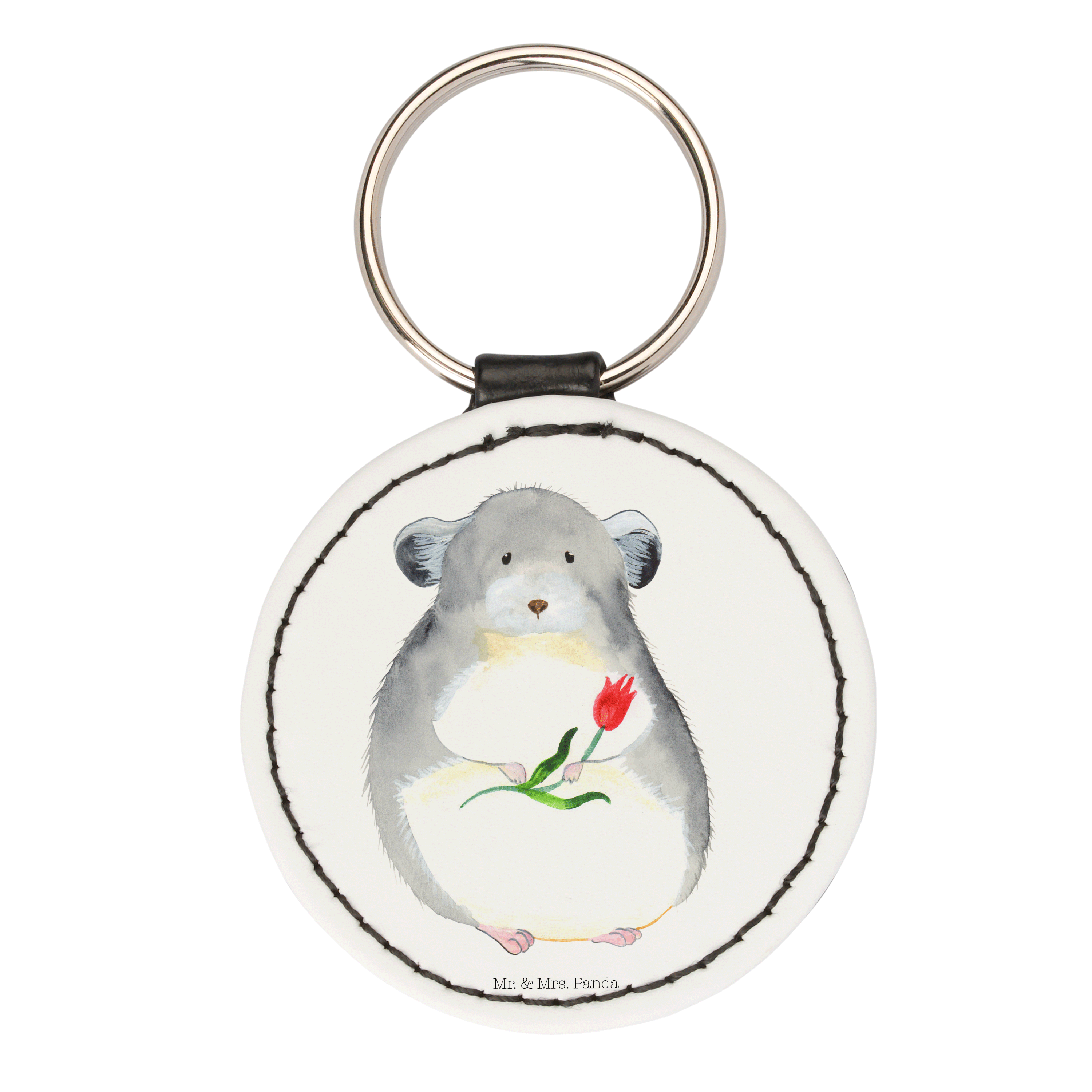 Du kannst dich dem niedlichen Chinchilla nicht entziehen, der dich mit großen Augen und einem Blumenstrauß in der Hand anschaut. Schon allein sein flauschiges Fell und seine niedliche Nase strahlen pure Herzenswärme aus. Das Design "Chinchilla mit Blume" von Mr. & Mrs. Panda ist das perfekte Accessoire für alle Tierfreunde.