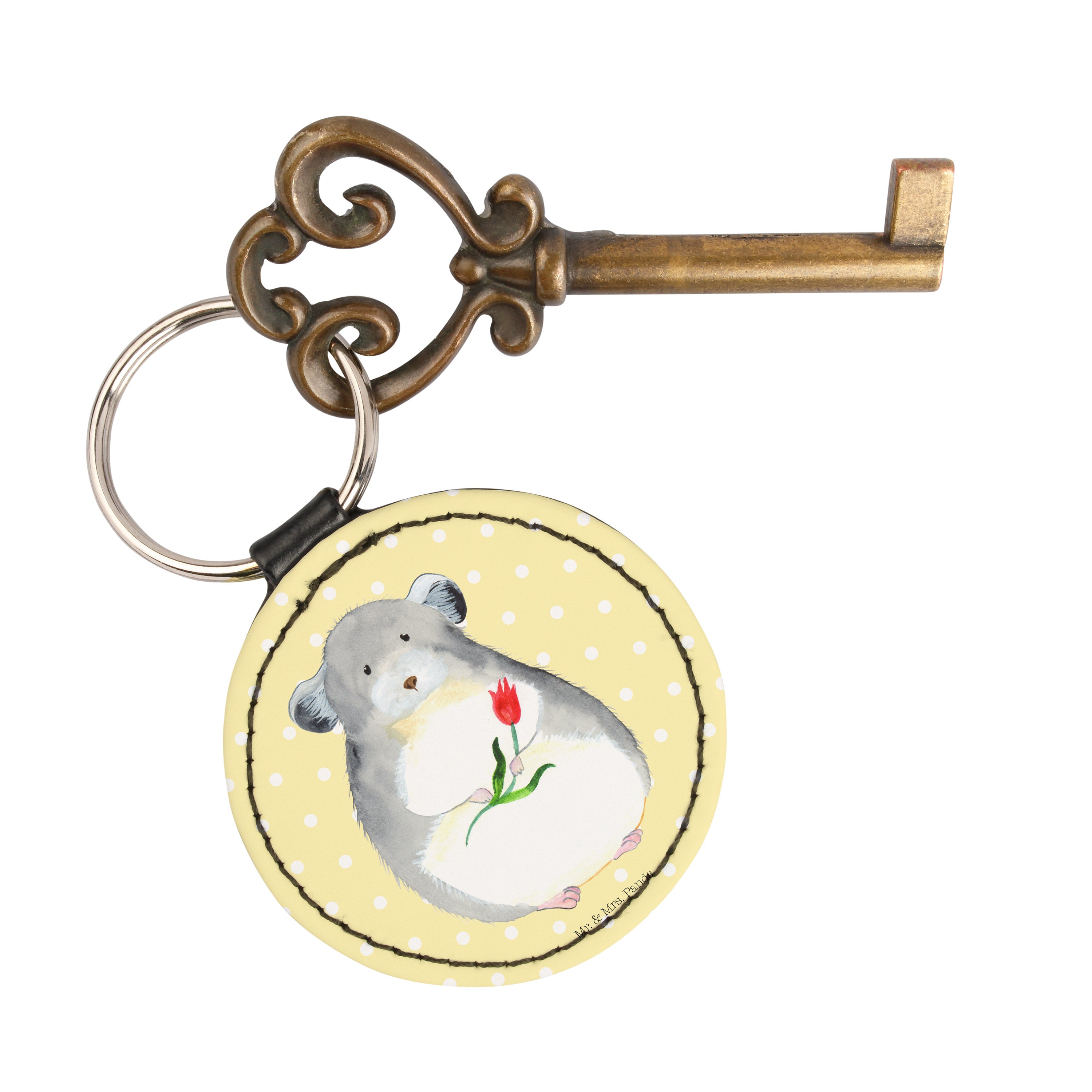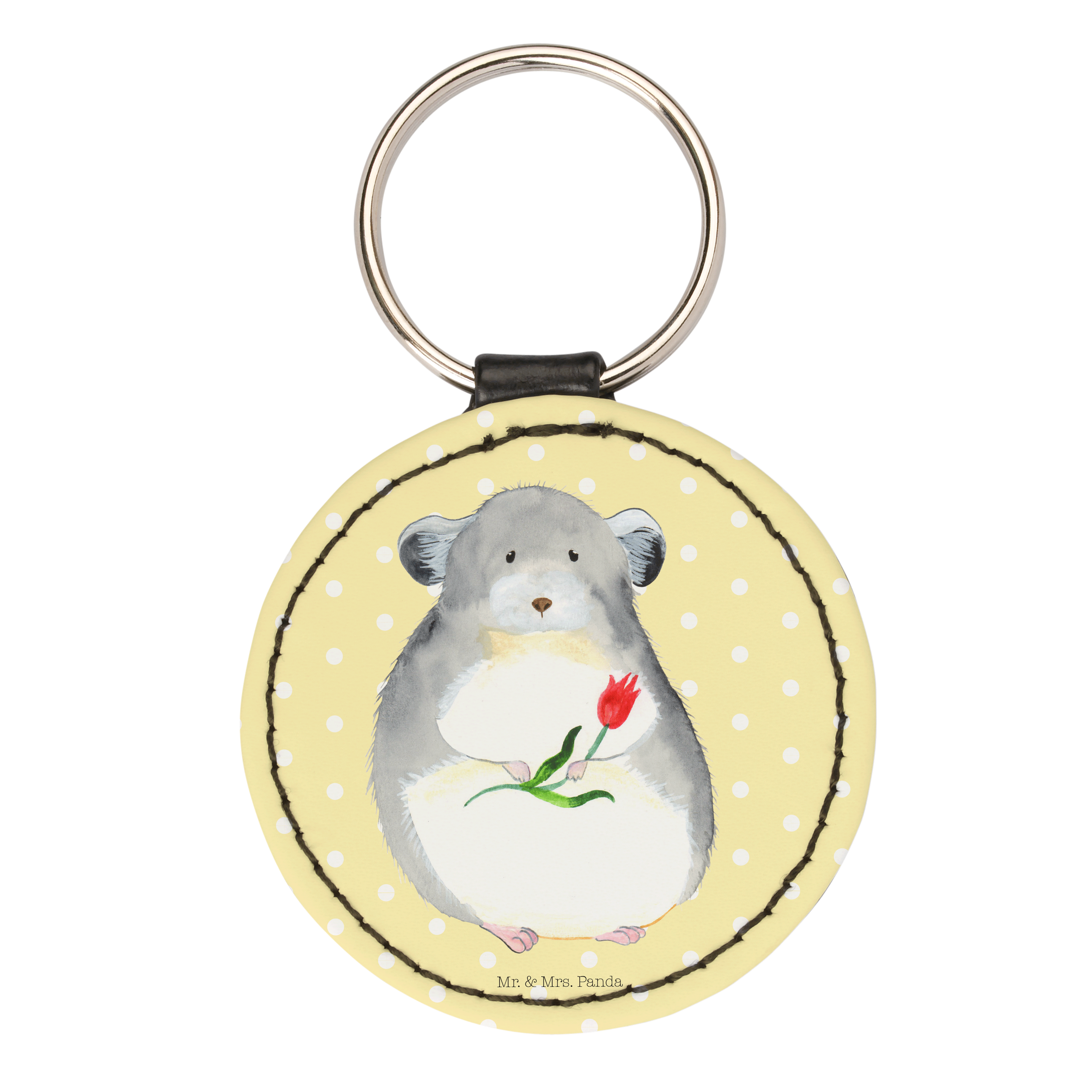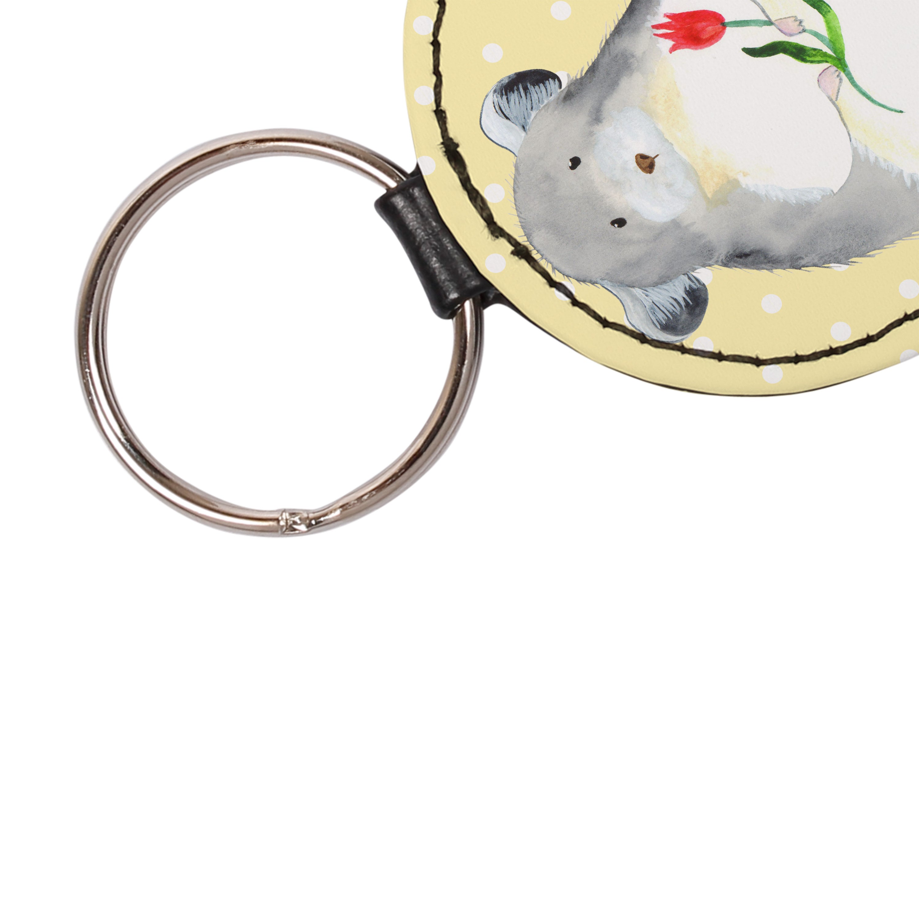 Rund Schlüsselanhänger Chinchilla mit Blume - Gelb Pastell