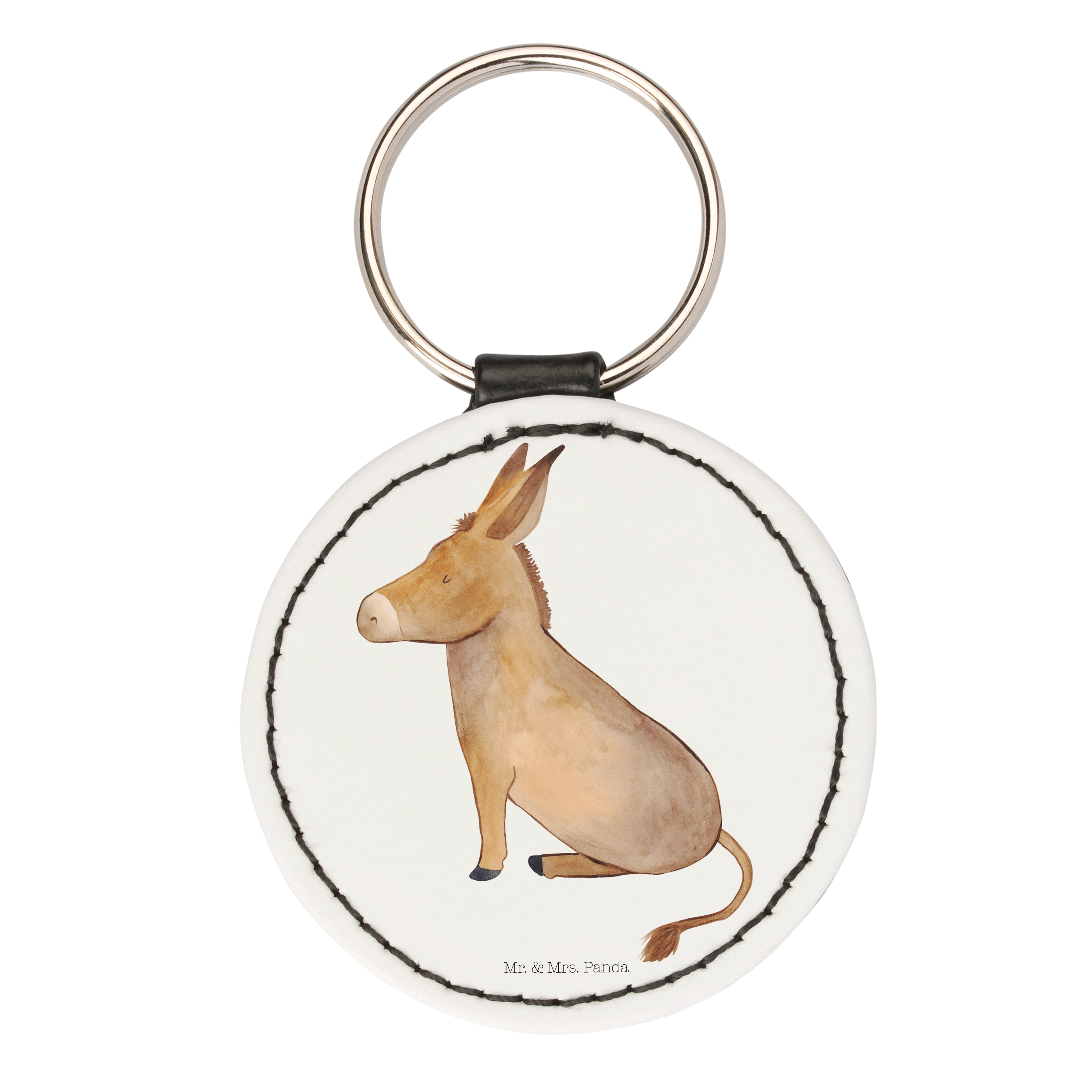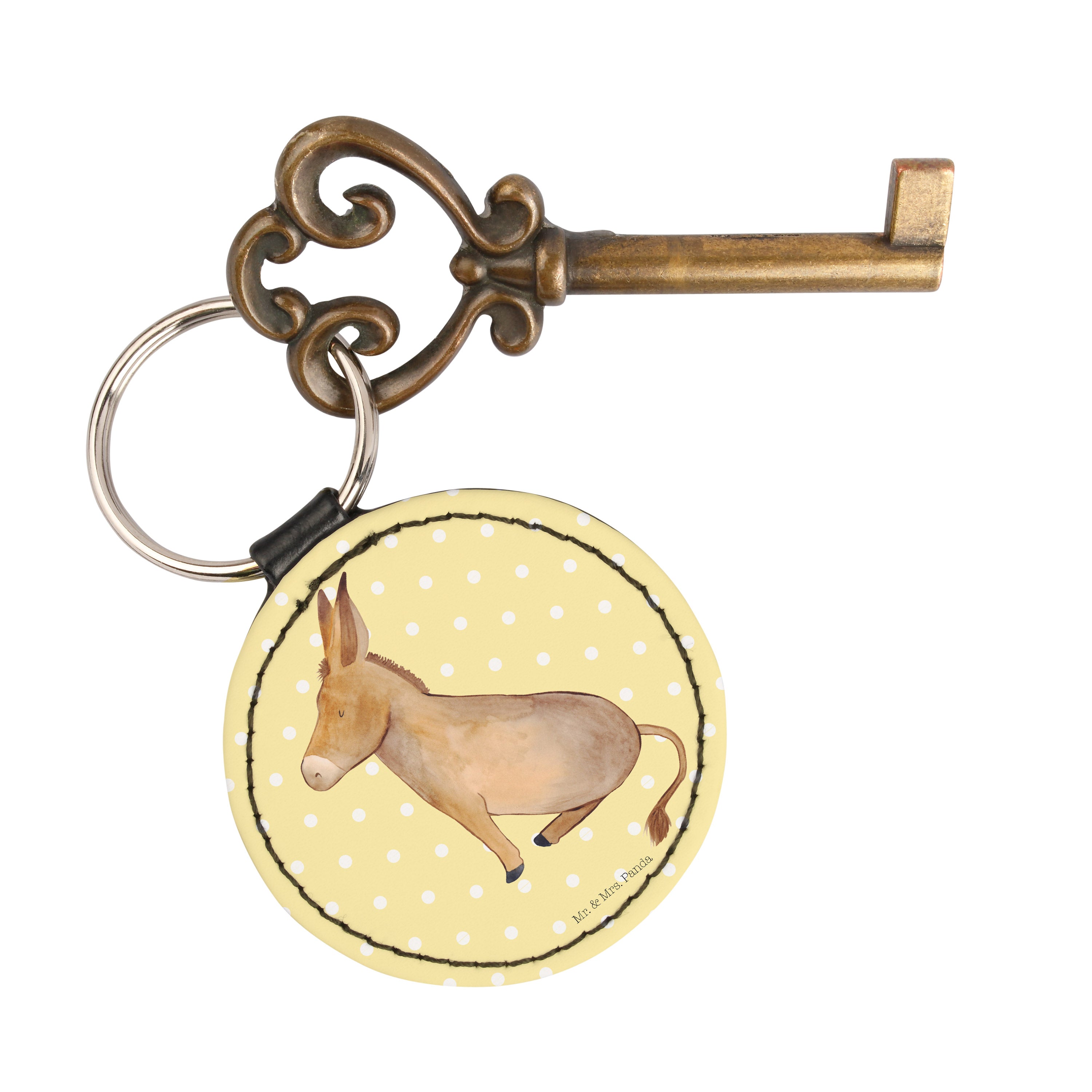Rund Schlüsselanhänger Esel - Gelb Pastell