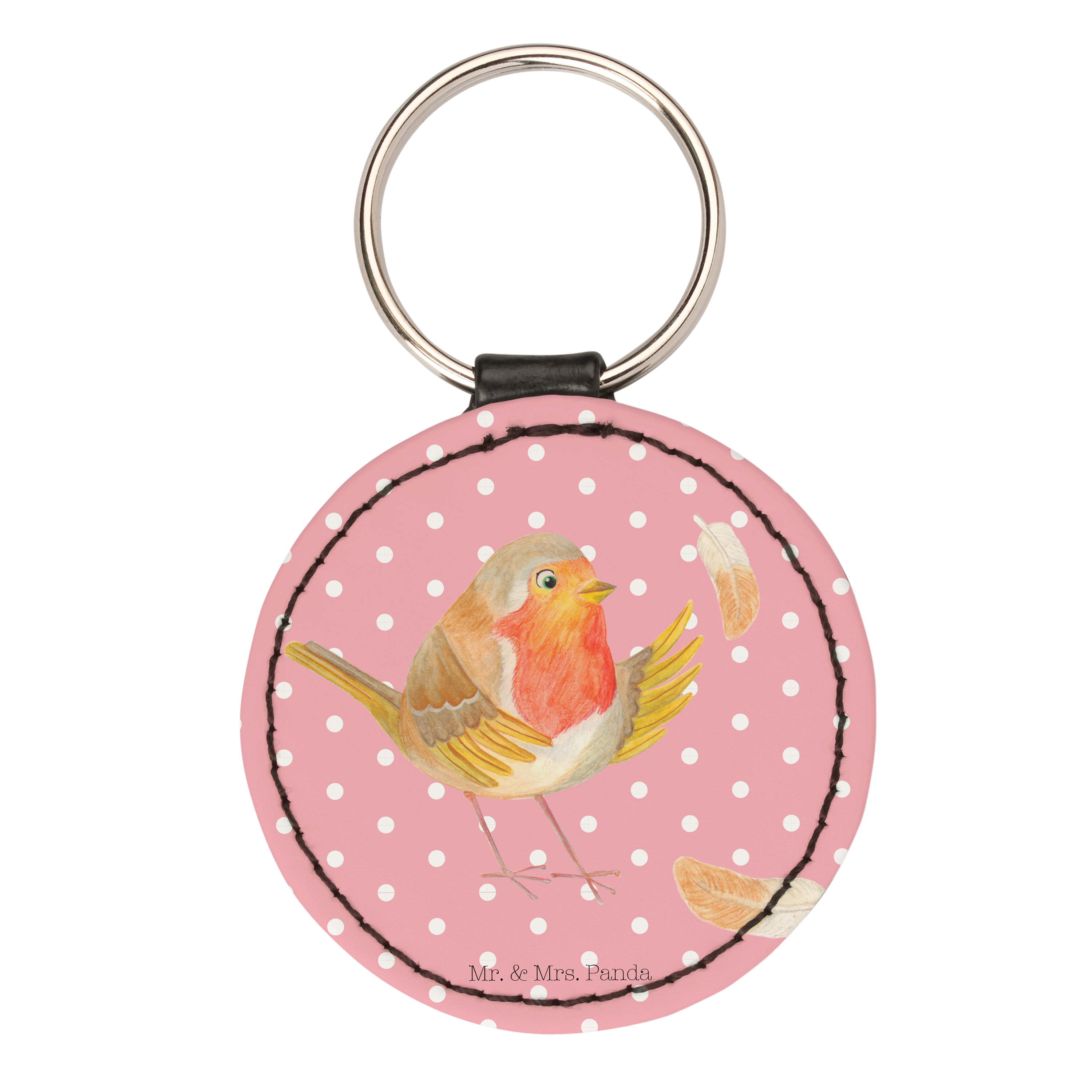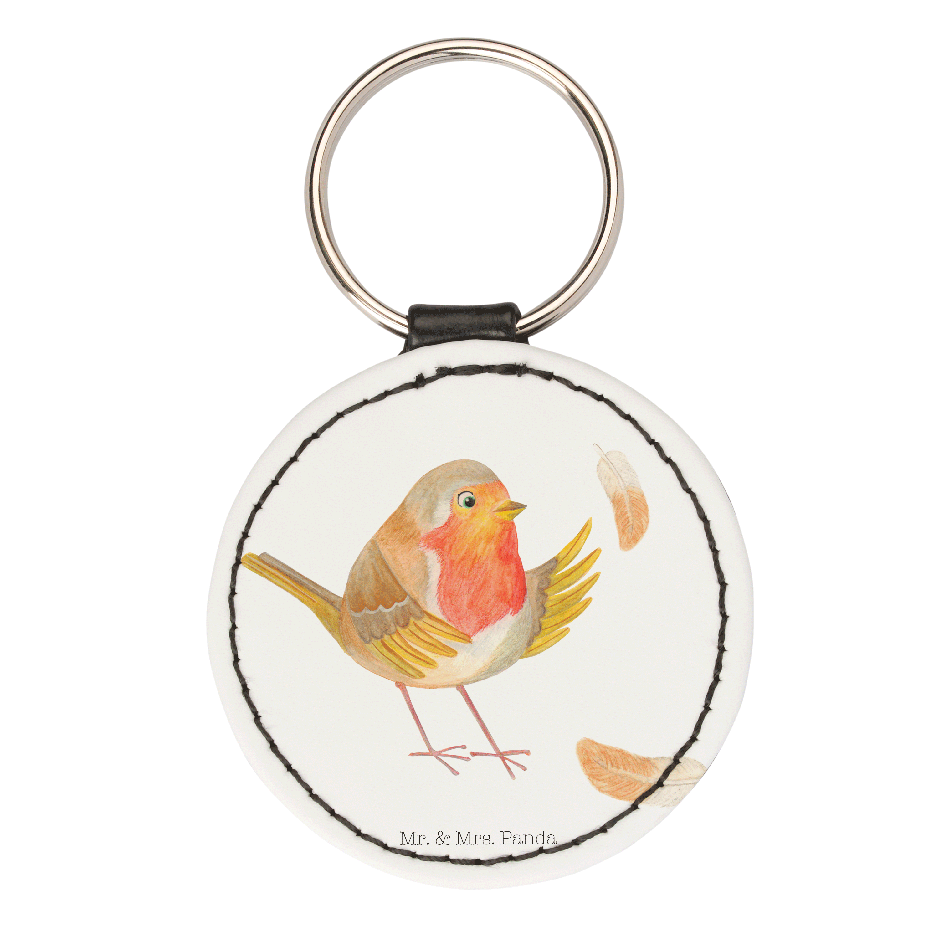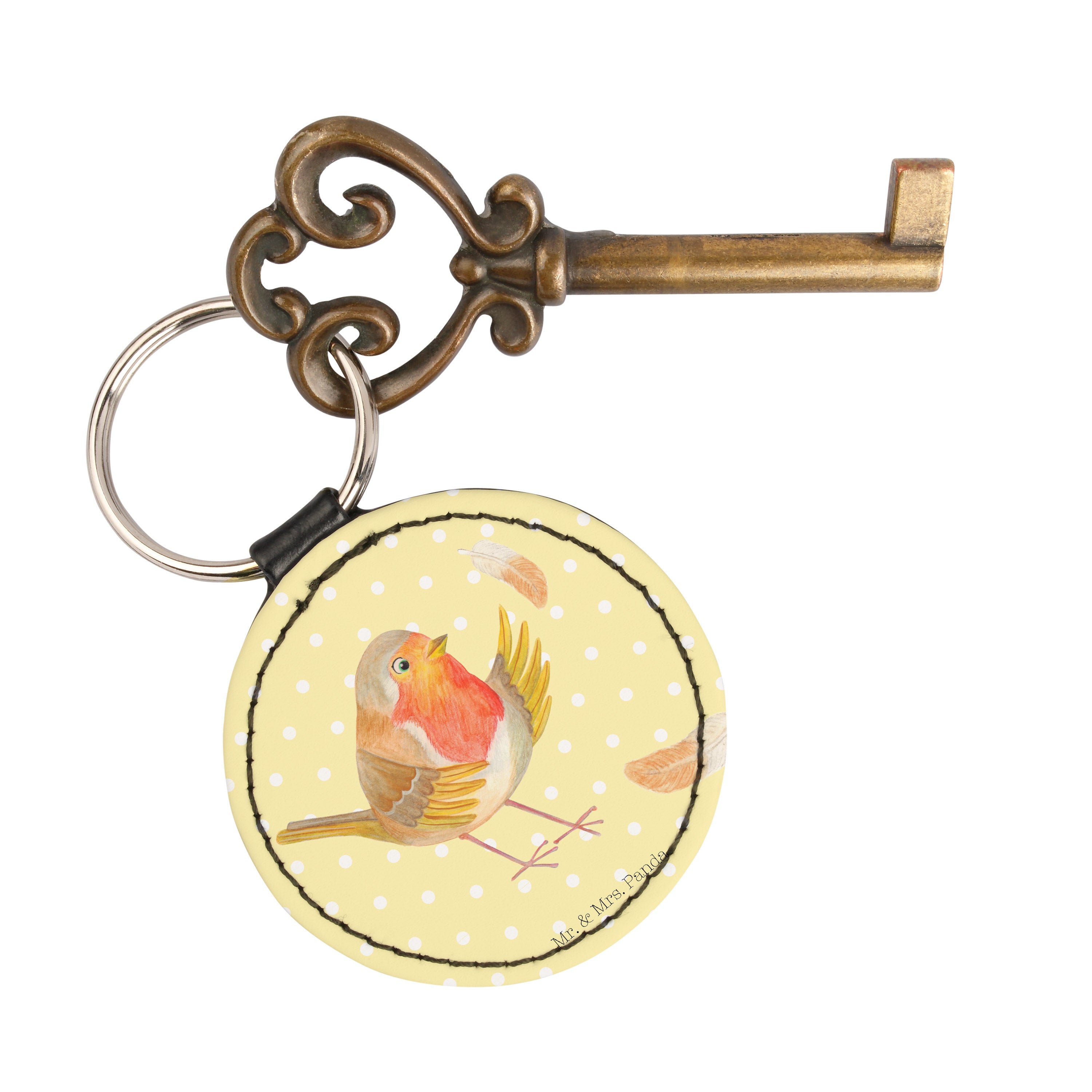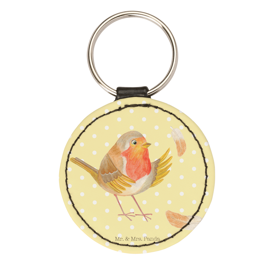 Rund Schlüsselanhänger Rotkehlchen mit Federn - Gelb Pastell