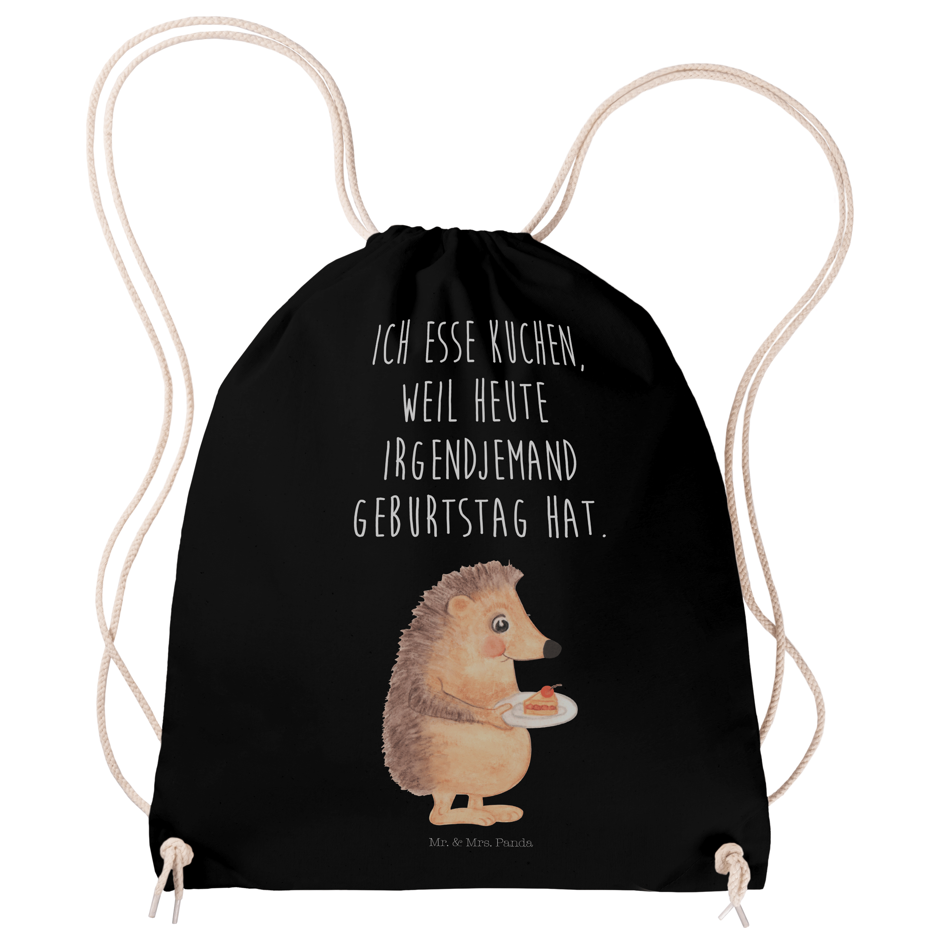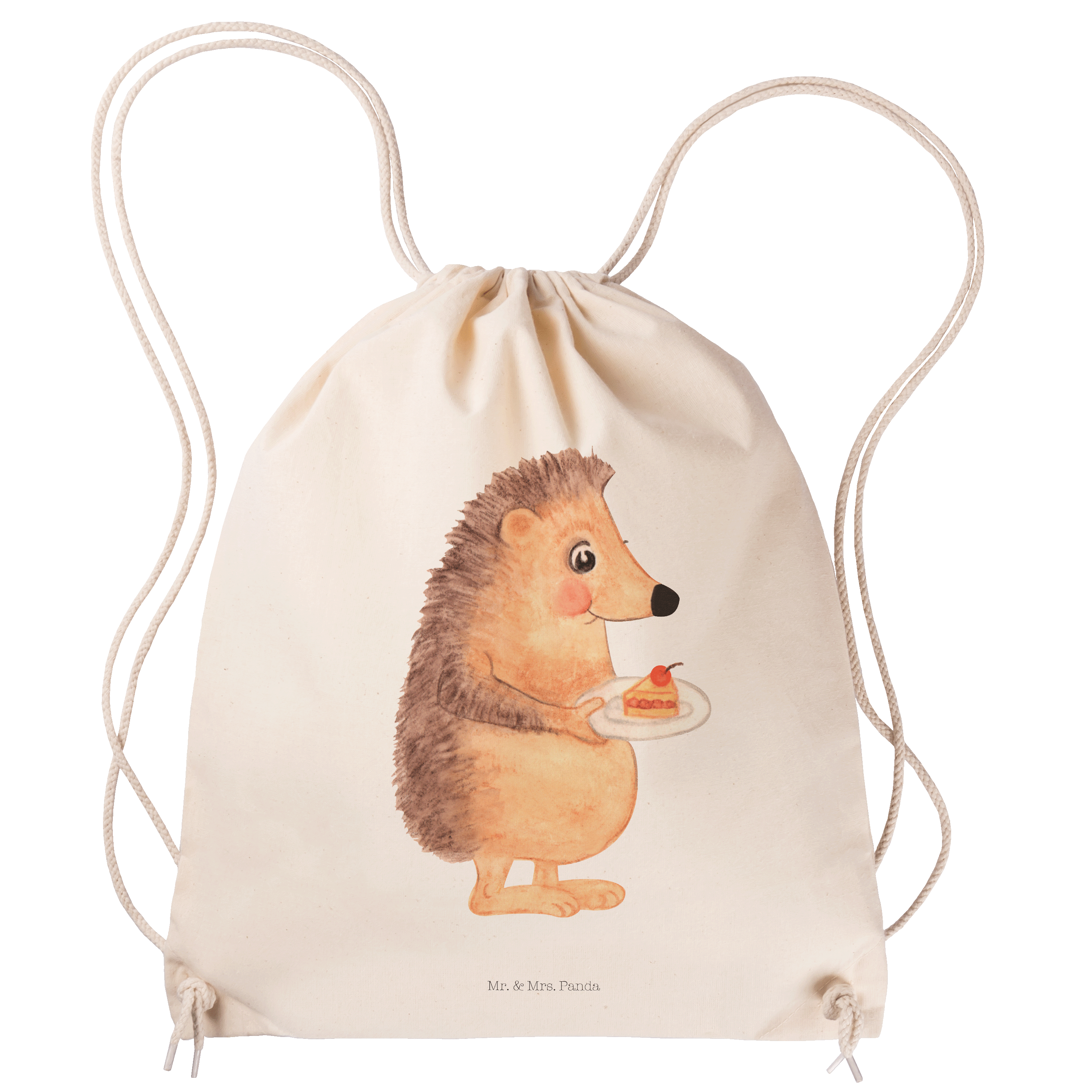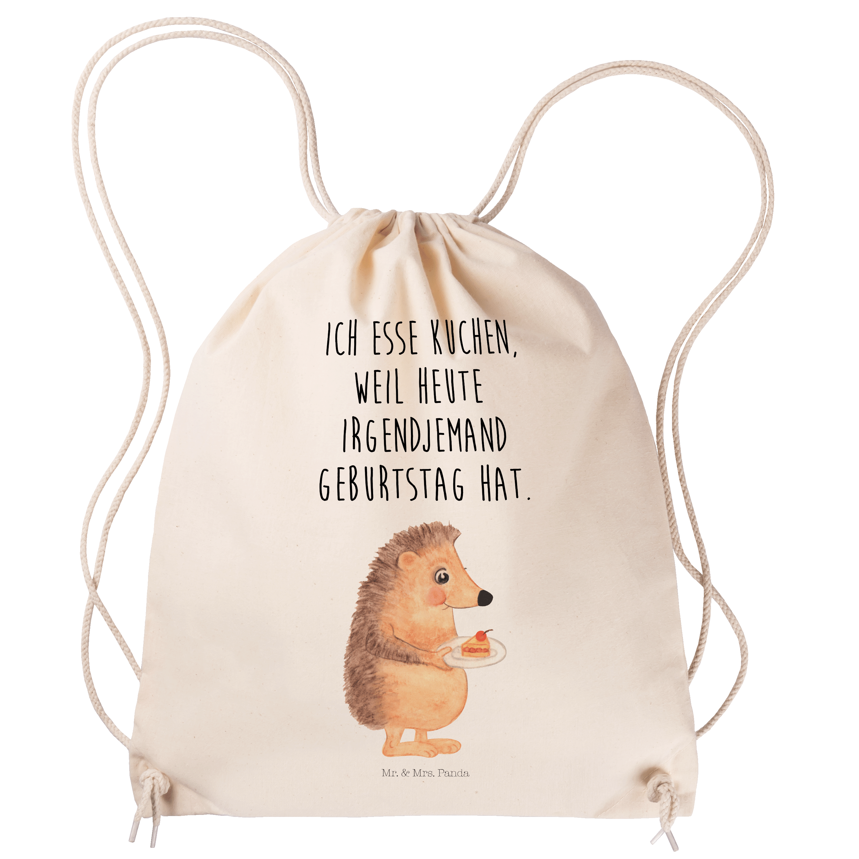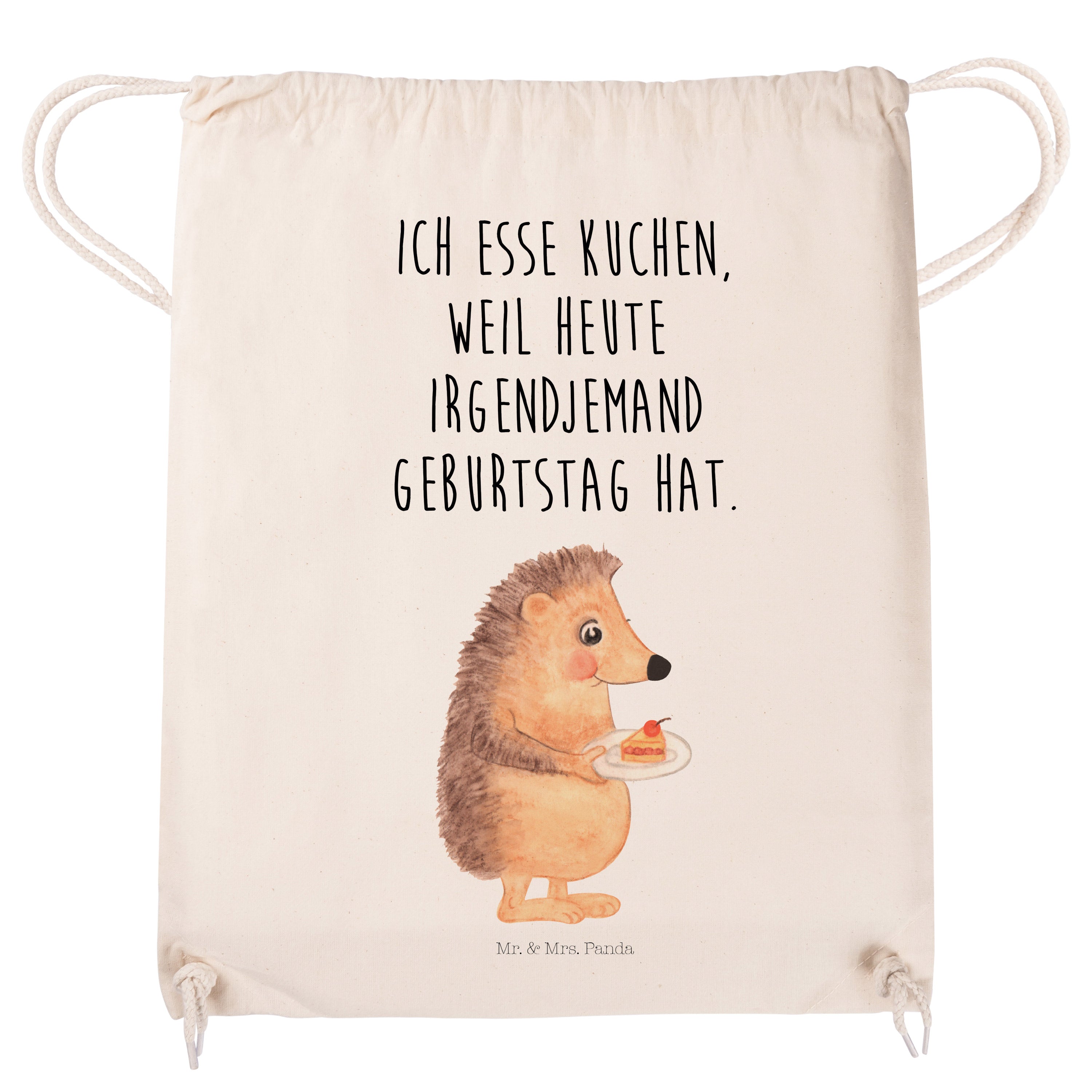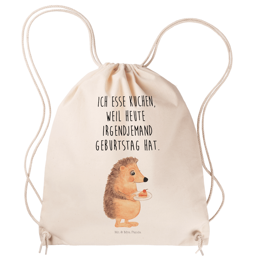 Sportbeutel Igel mit Kuchenstück - mit Spruch - Transparent