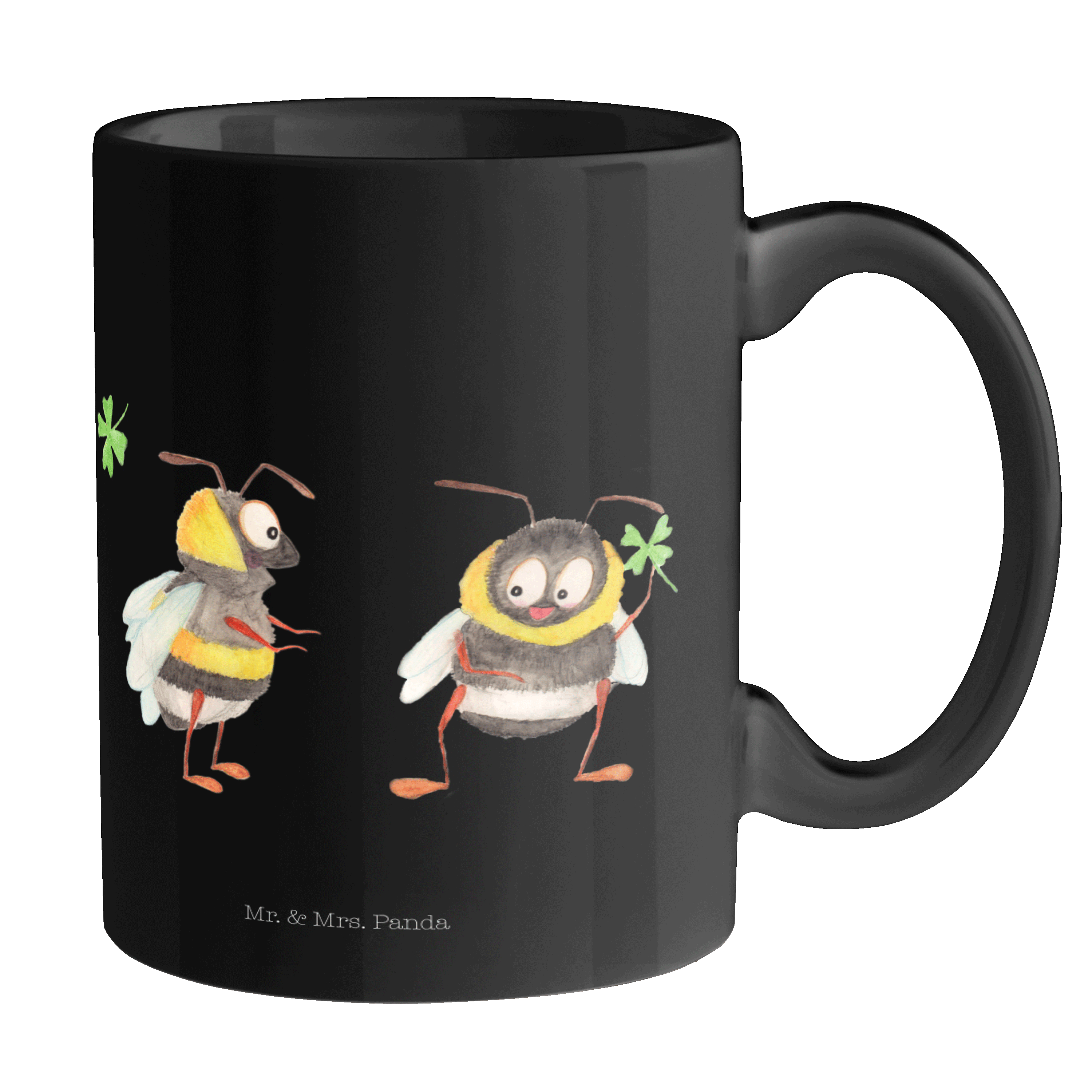 Tasse Hummeln mit Kleeblatt - ohne Spruch - Schwarz