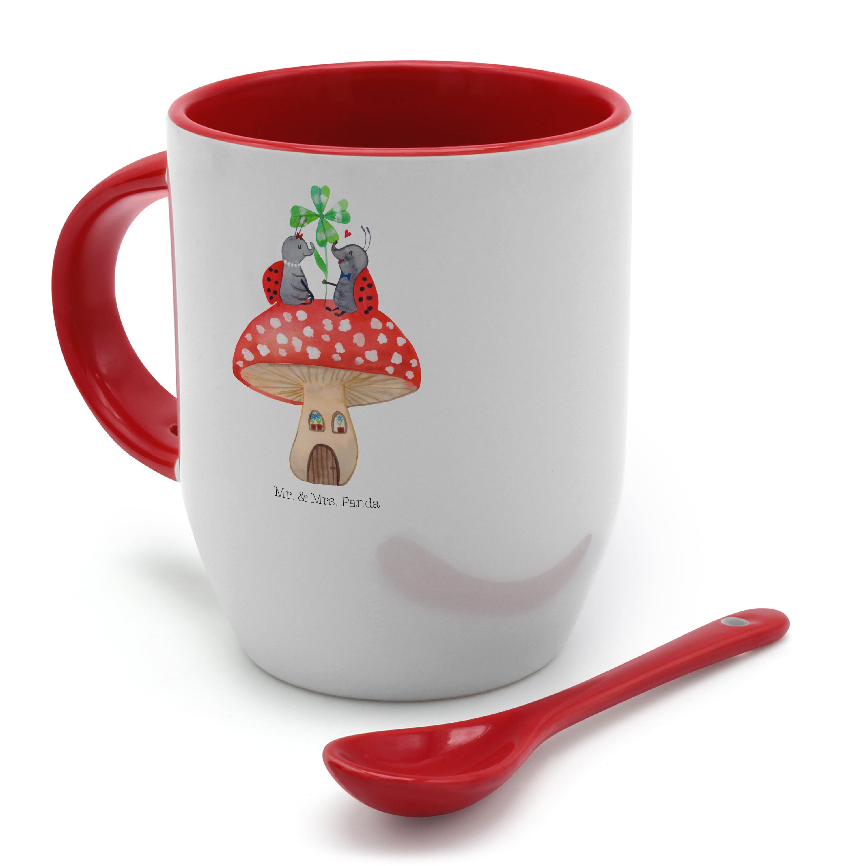 Tasse mit Löffel Marienkäfer Paar Fliegenpilz - mit Spruch