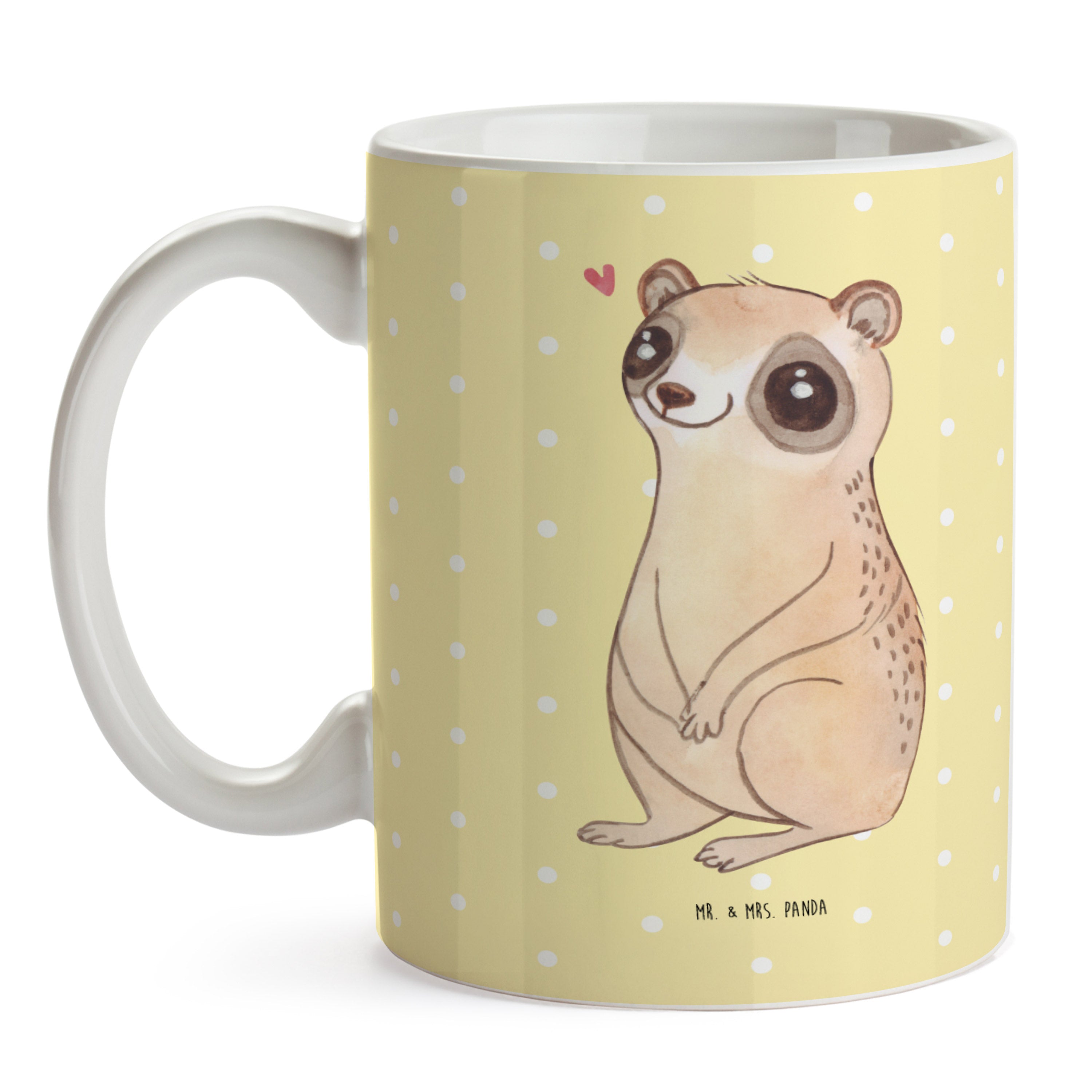 Tauche ein in die zauberhafte Welt der Mr. & Mrs. Panda Kollektion 'Small World' und lass Dich von dem handgezeichneten, niedlichen Plumplori Motiv verzaubern. Spüre, wie Dein Herz vor Glück hüpft, während Du in die großen, verliebt schimmernden Augen dieses süßen Geschöpfs blickst, das die Welt mit Neugier entdeckt. Lass Dich von der liebevollen Atmosphäre, die dieses Motiv ausstrahlt, beseelen und spüre, wie die Wärme und Zufriedenheit dieses Plumploris Deine Seele streicheln.