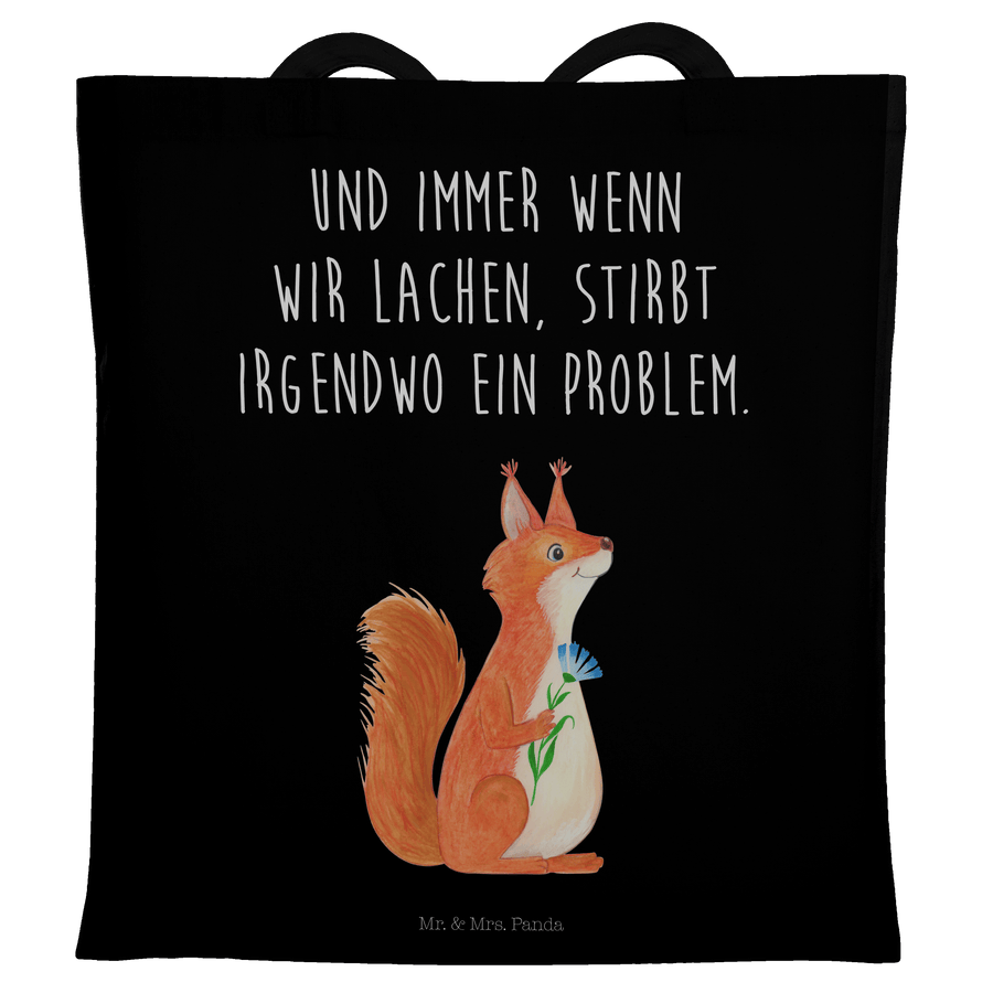Tragetasche Eichhörnchen Blume - mit Spruch - Schwarz
