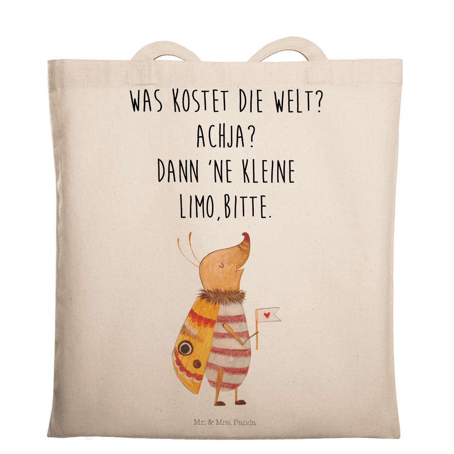Tragetasche Nachtfalter mit Fähnchen Beuteltasche, Beutel, Einkaufstasche, Jutebeutel, Stoffbeutel, Tiermotive, Gute Laune, lustige Sprüche, Tiere, Nachtfalter, Käfer, Spruch lustig, Spruch witzig, süß, niedlich, Küche Deko, Was kostet die Welt