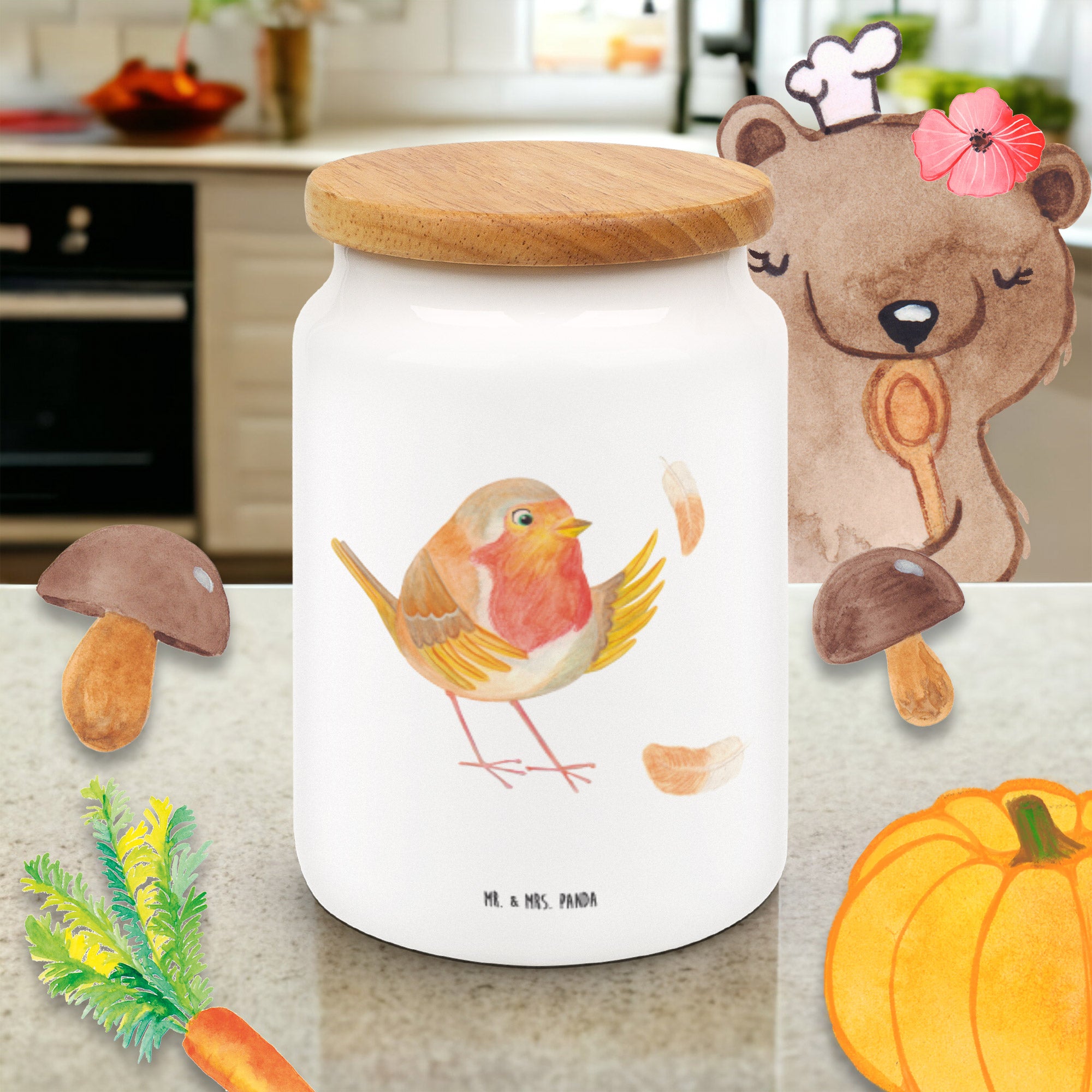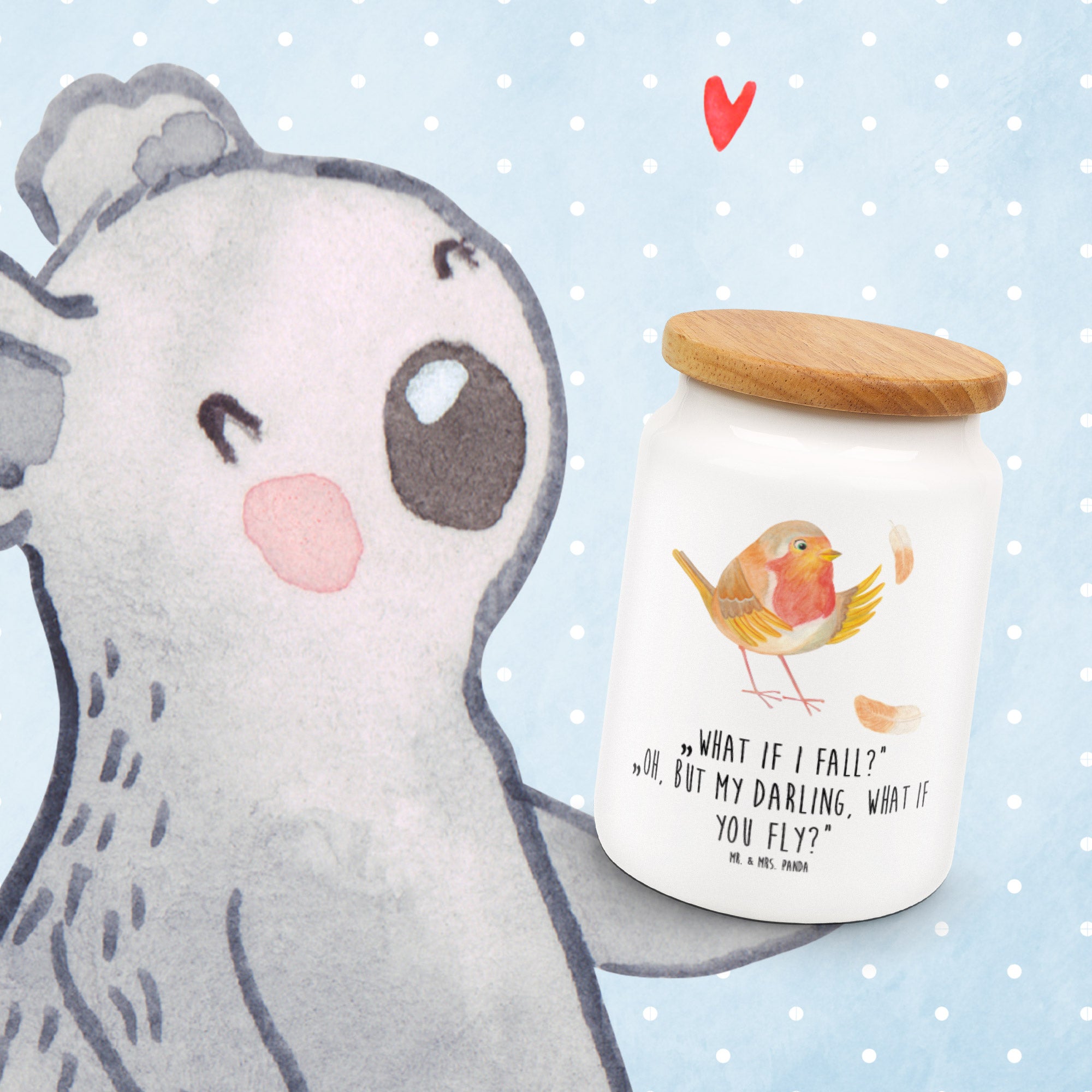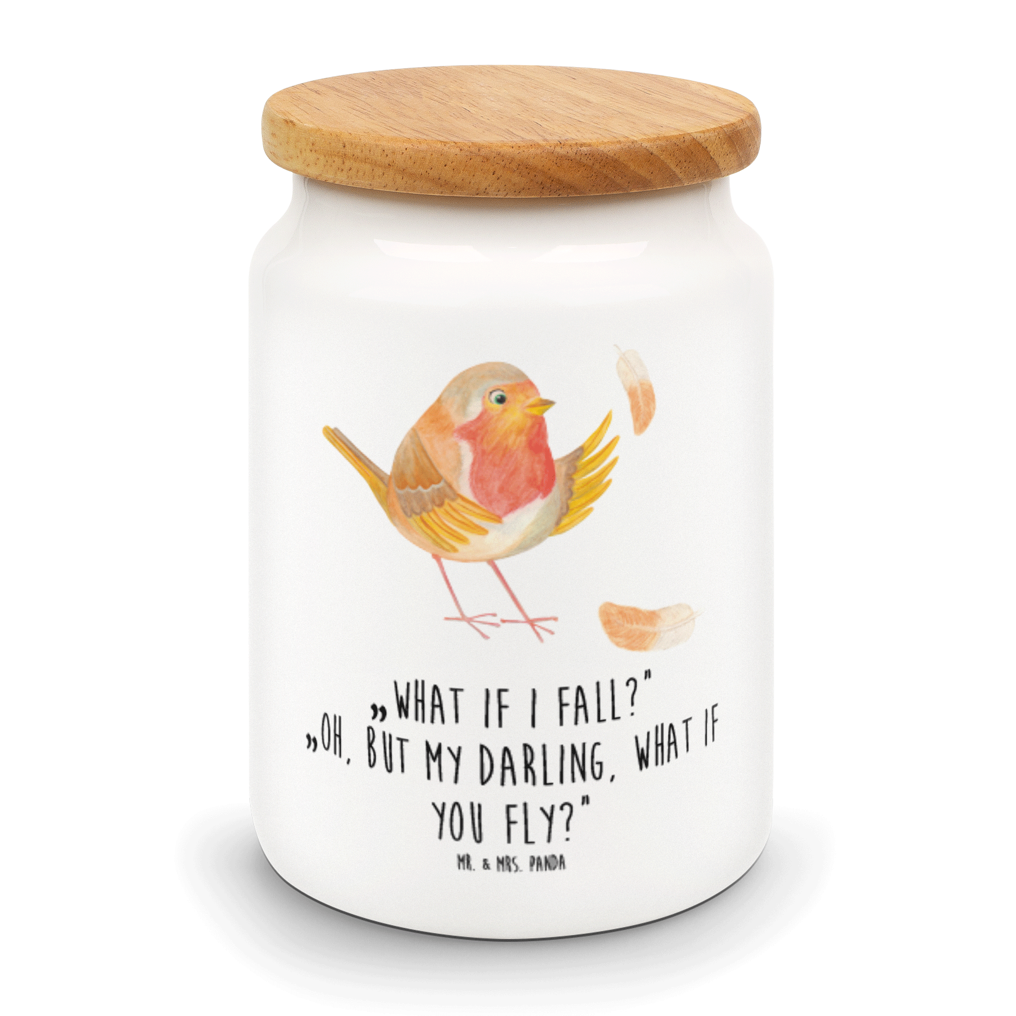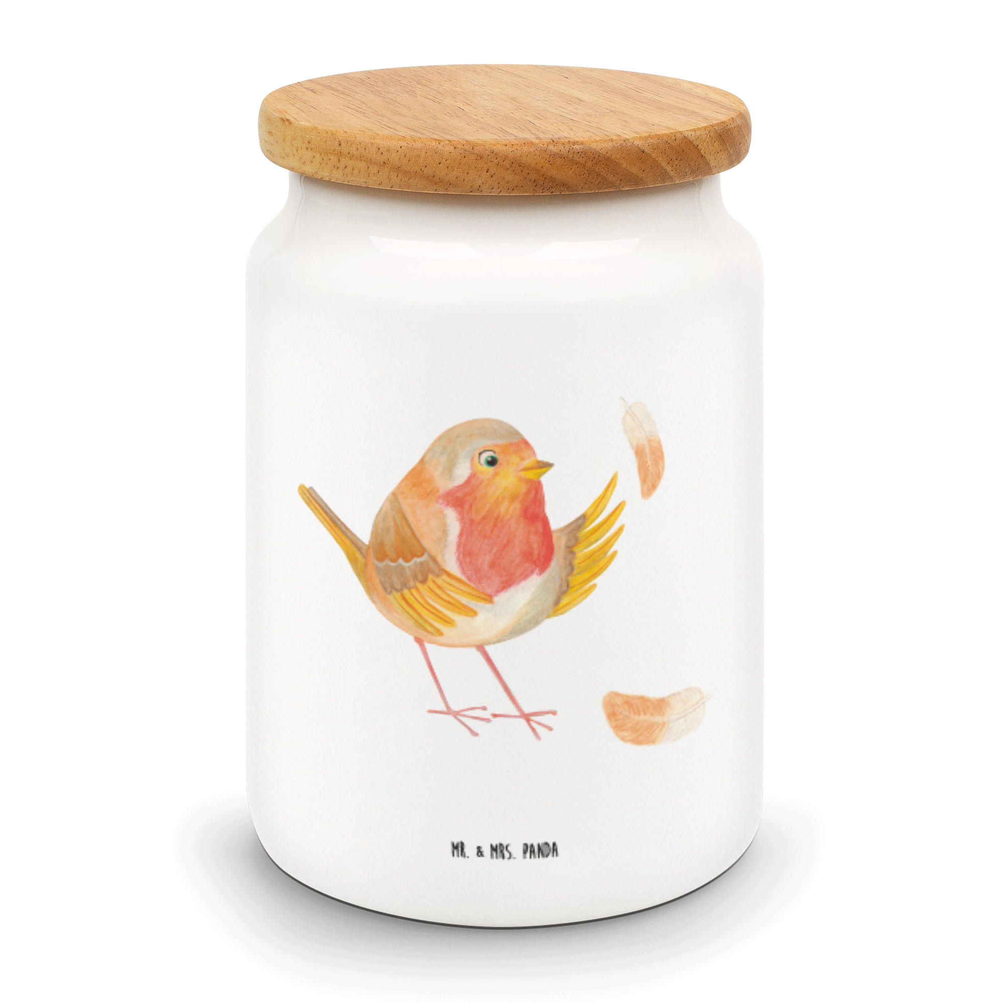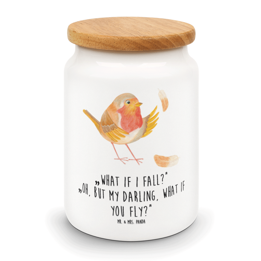 Vorratsdose Rotkehlchen mit Federn - mit Spruch