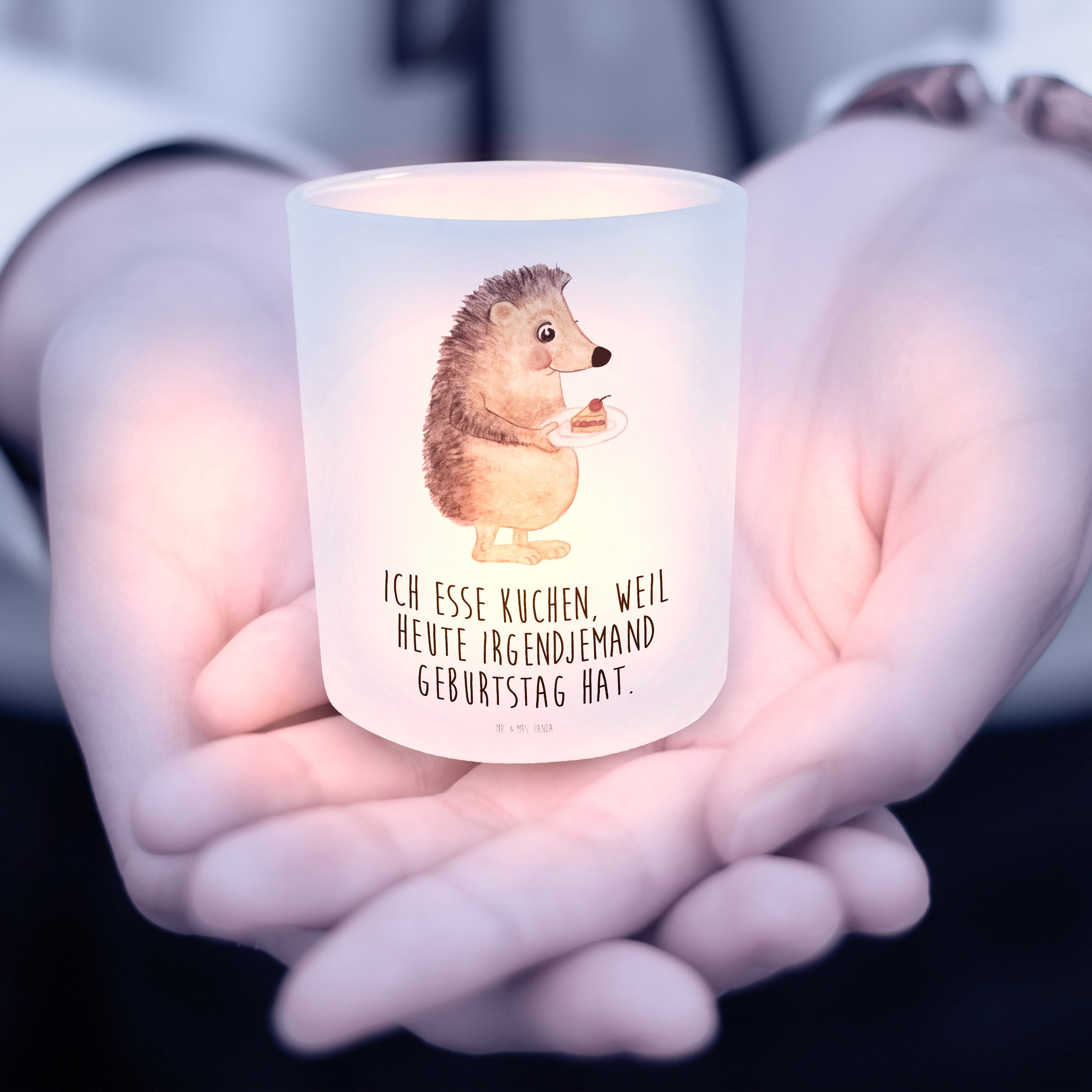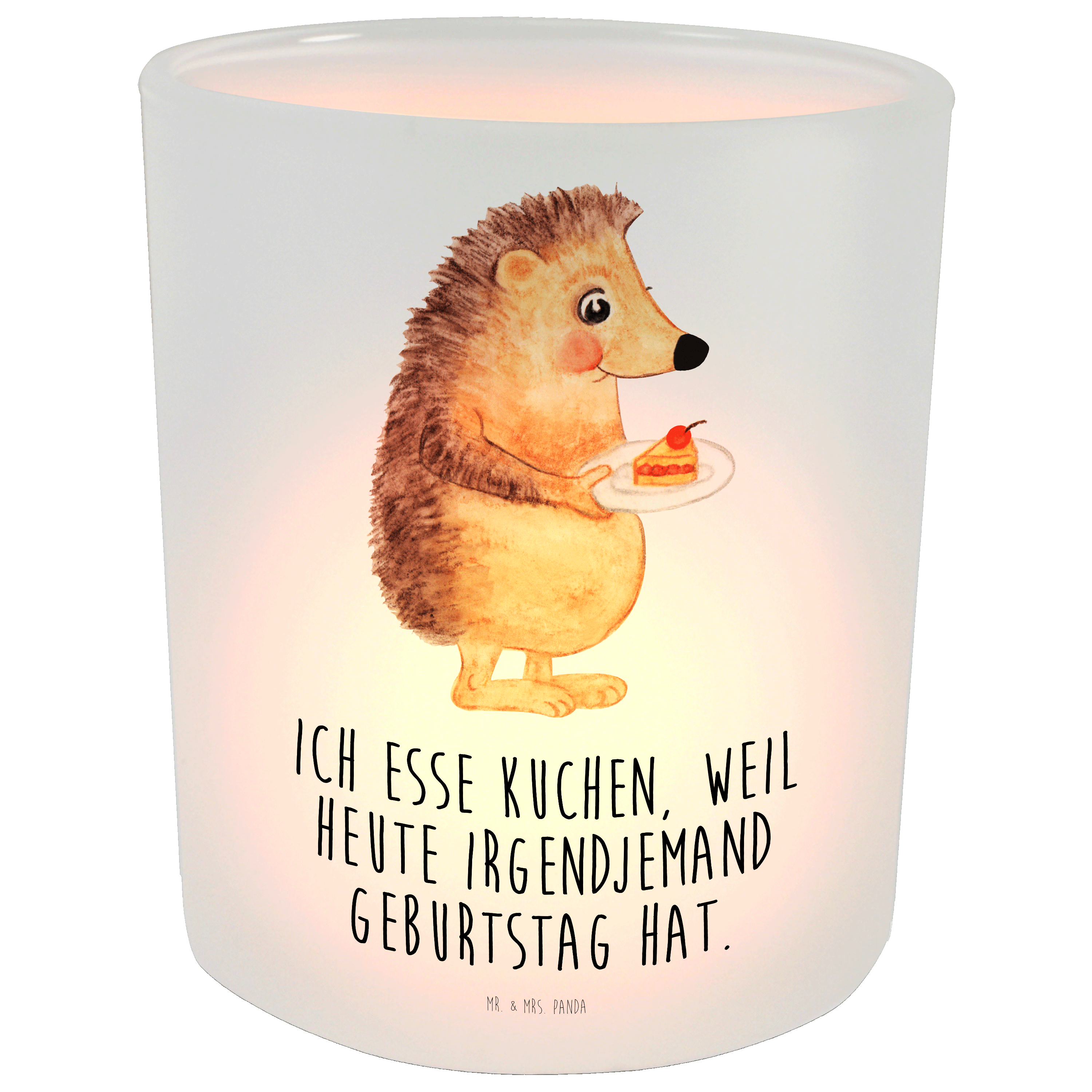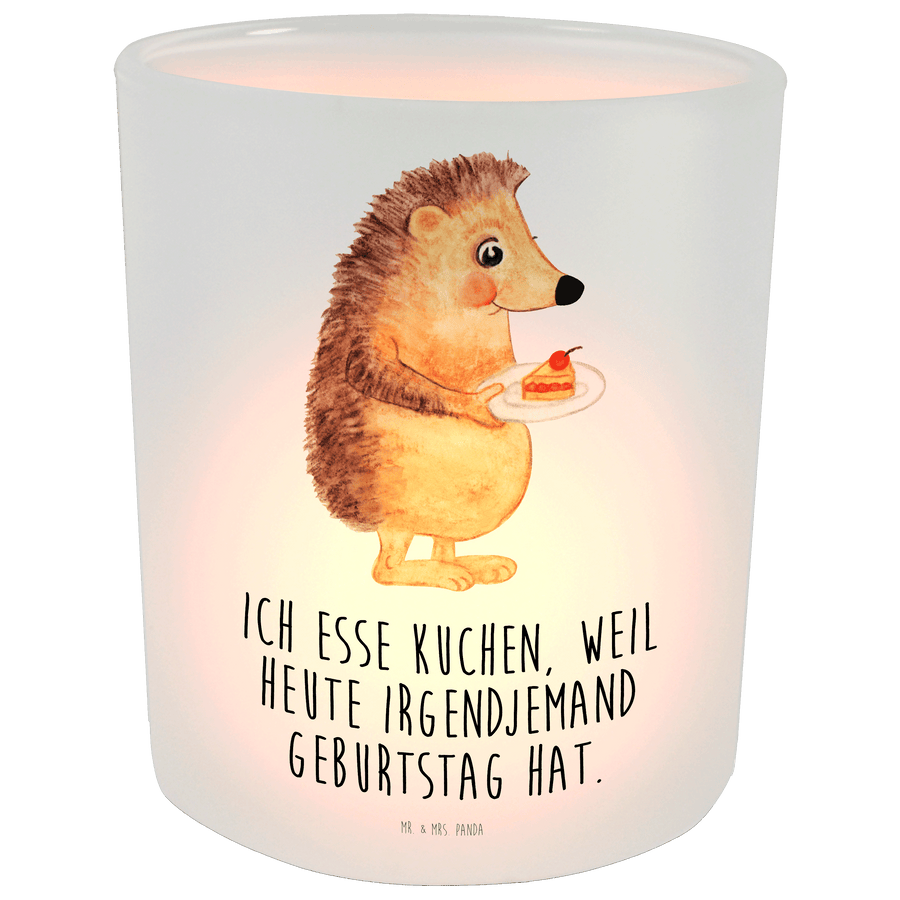 Windlicht Igel mit Kuchenstück - mit Spruch