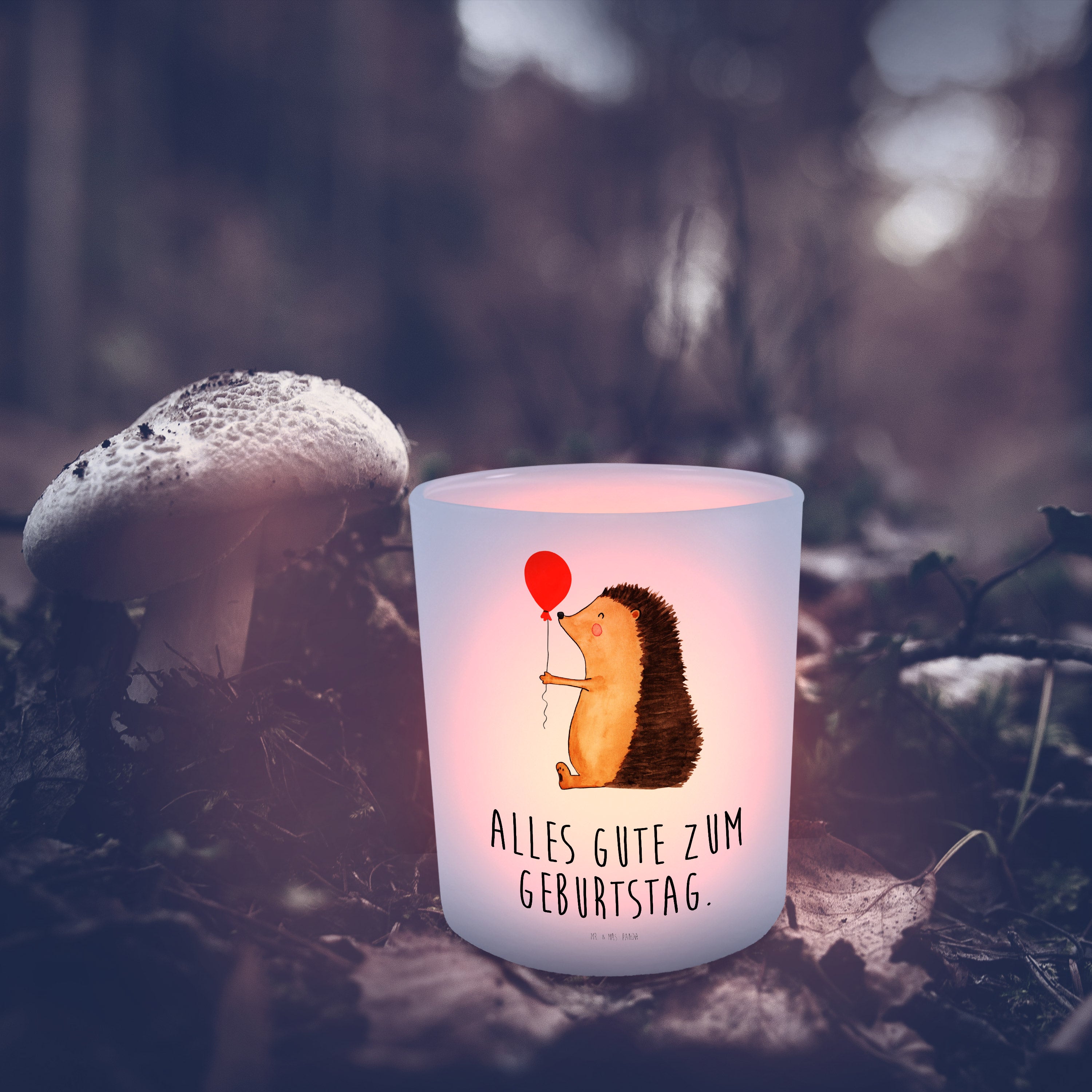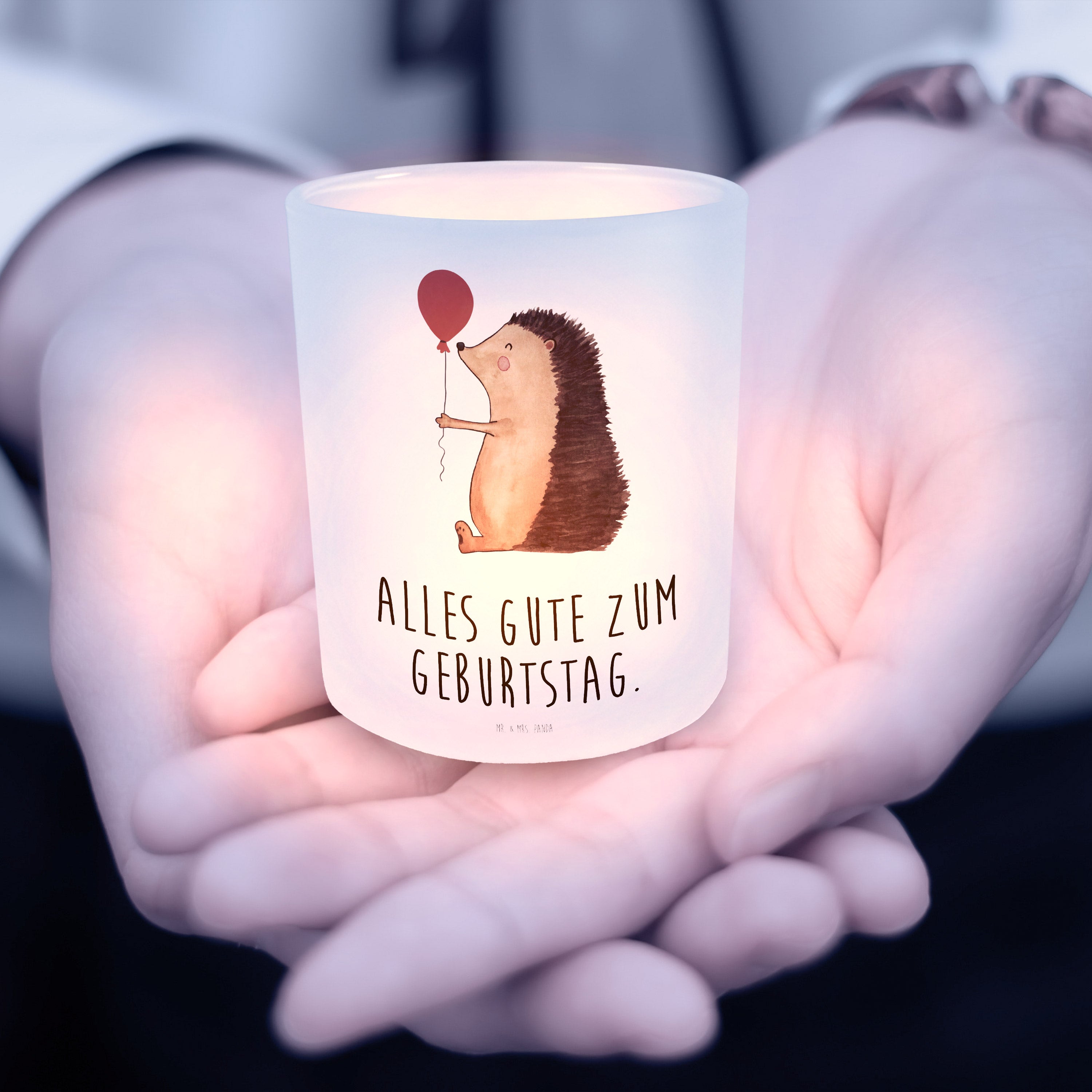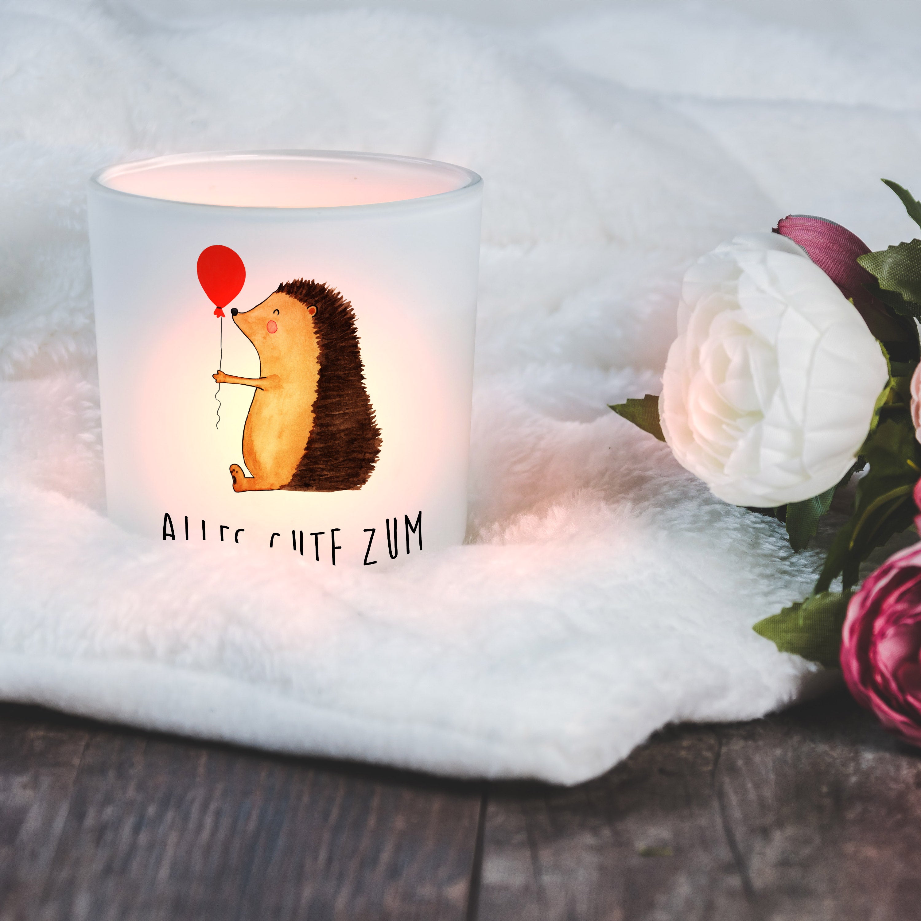 Windlicht Igel mit Luftballon - mit Spruch