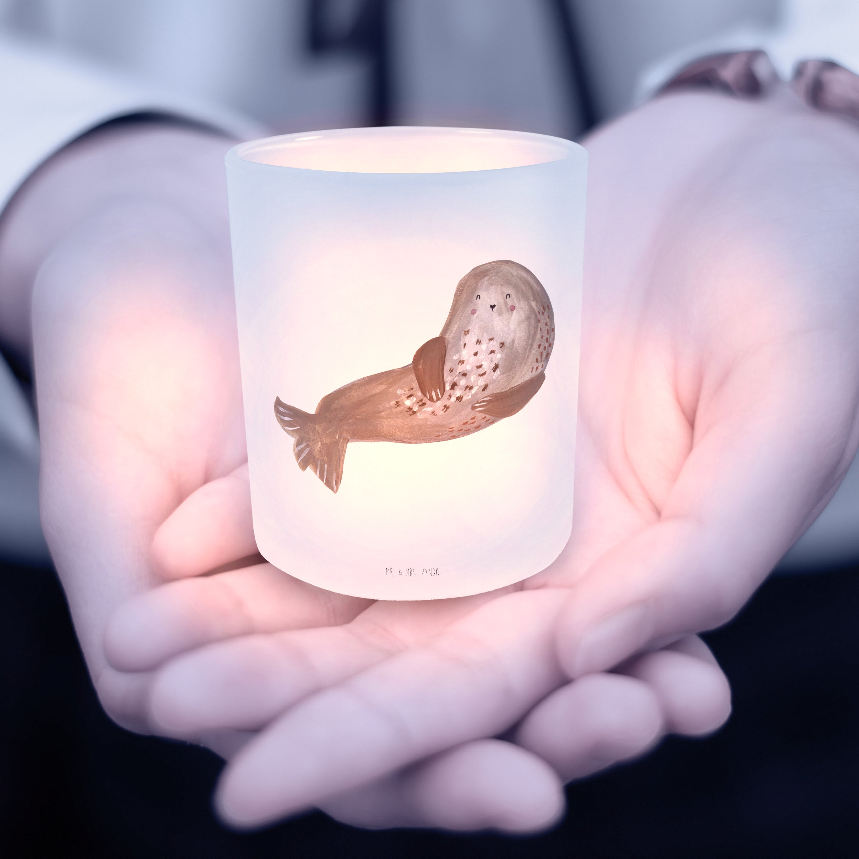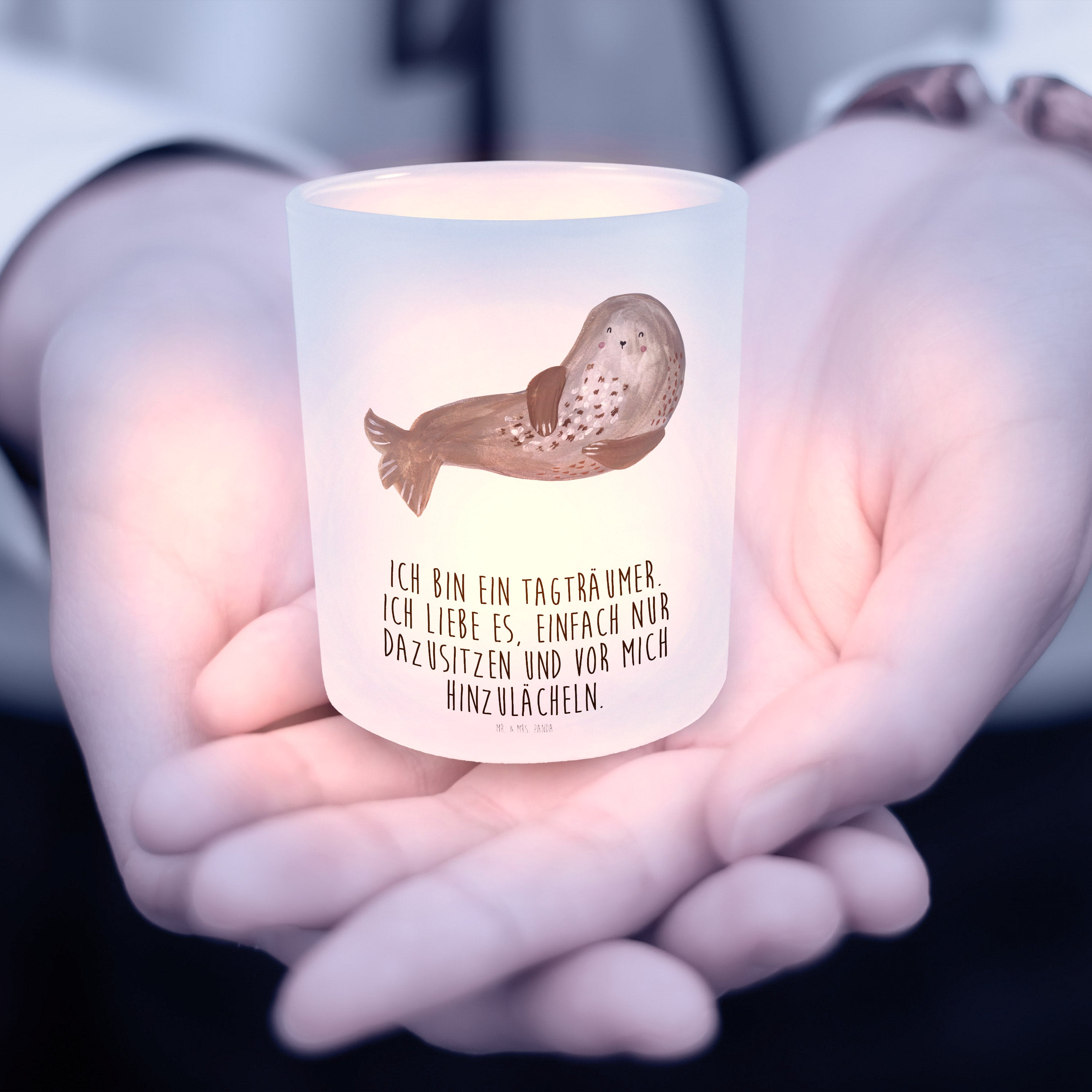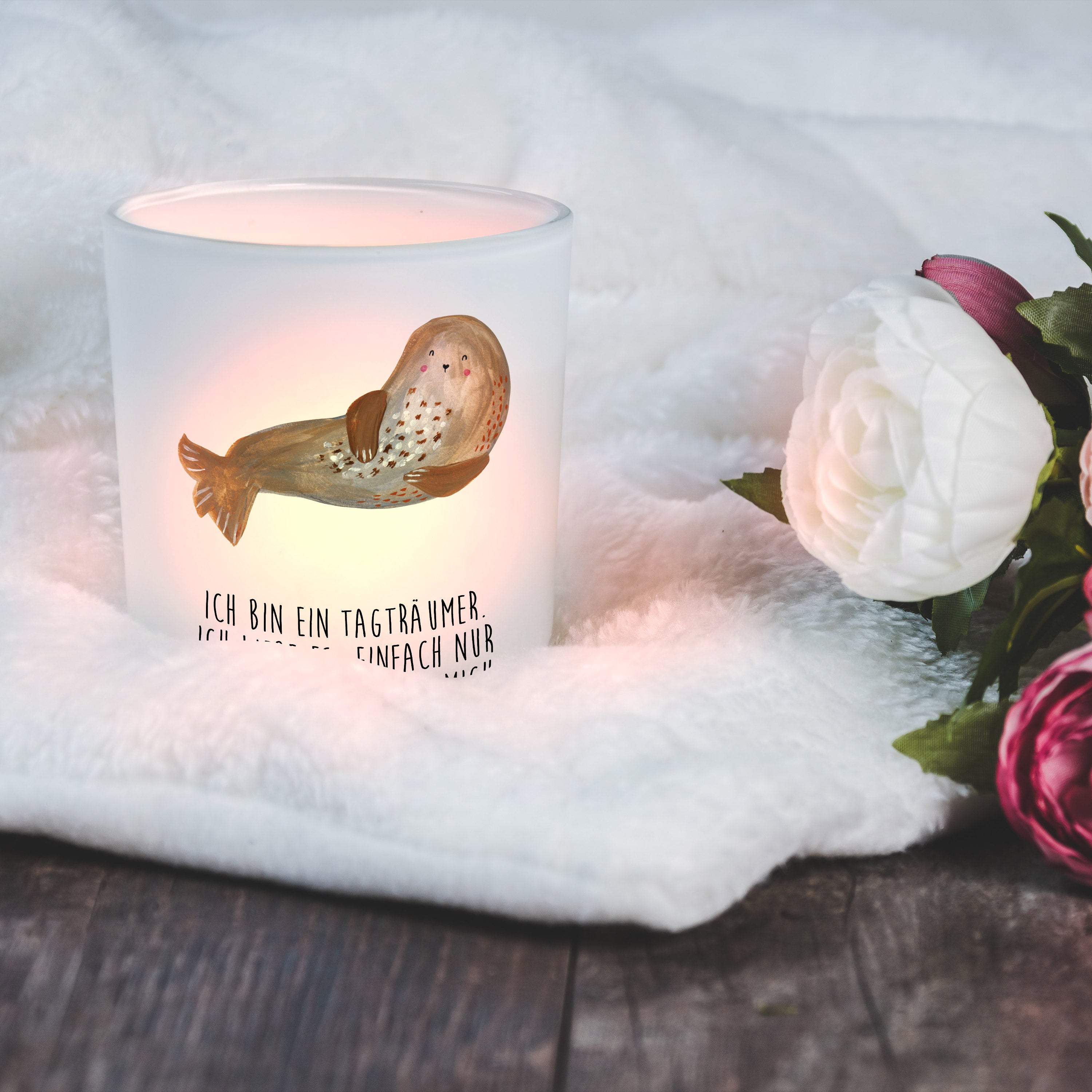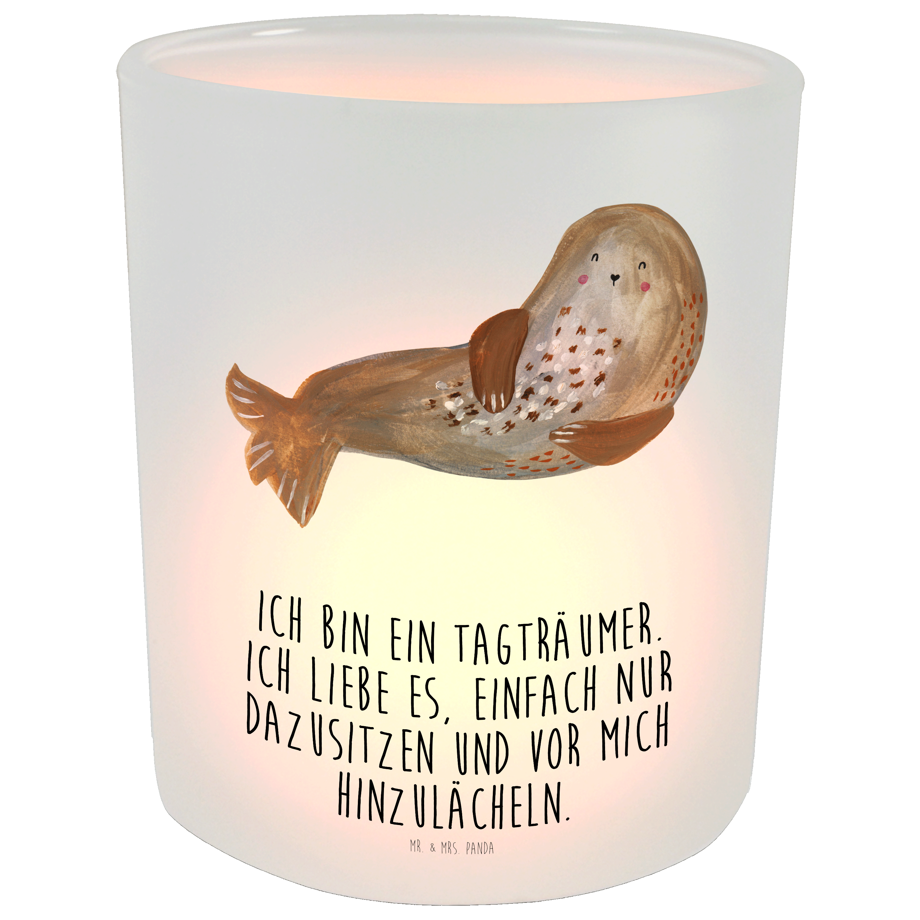 Windlicht Robbe lachend - mit Spruch
