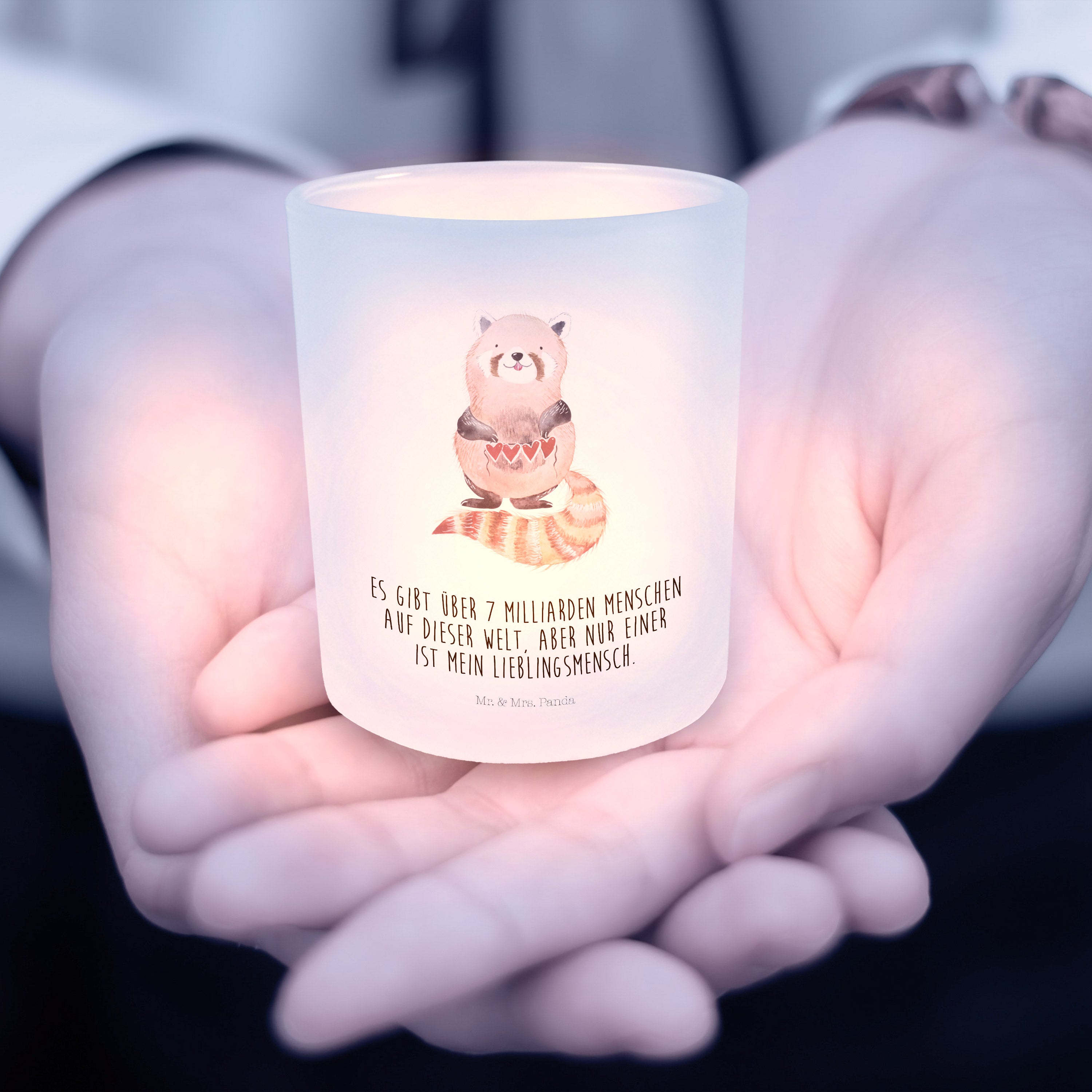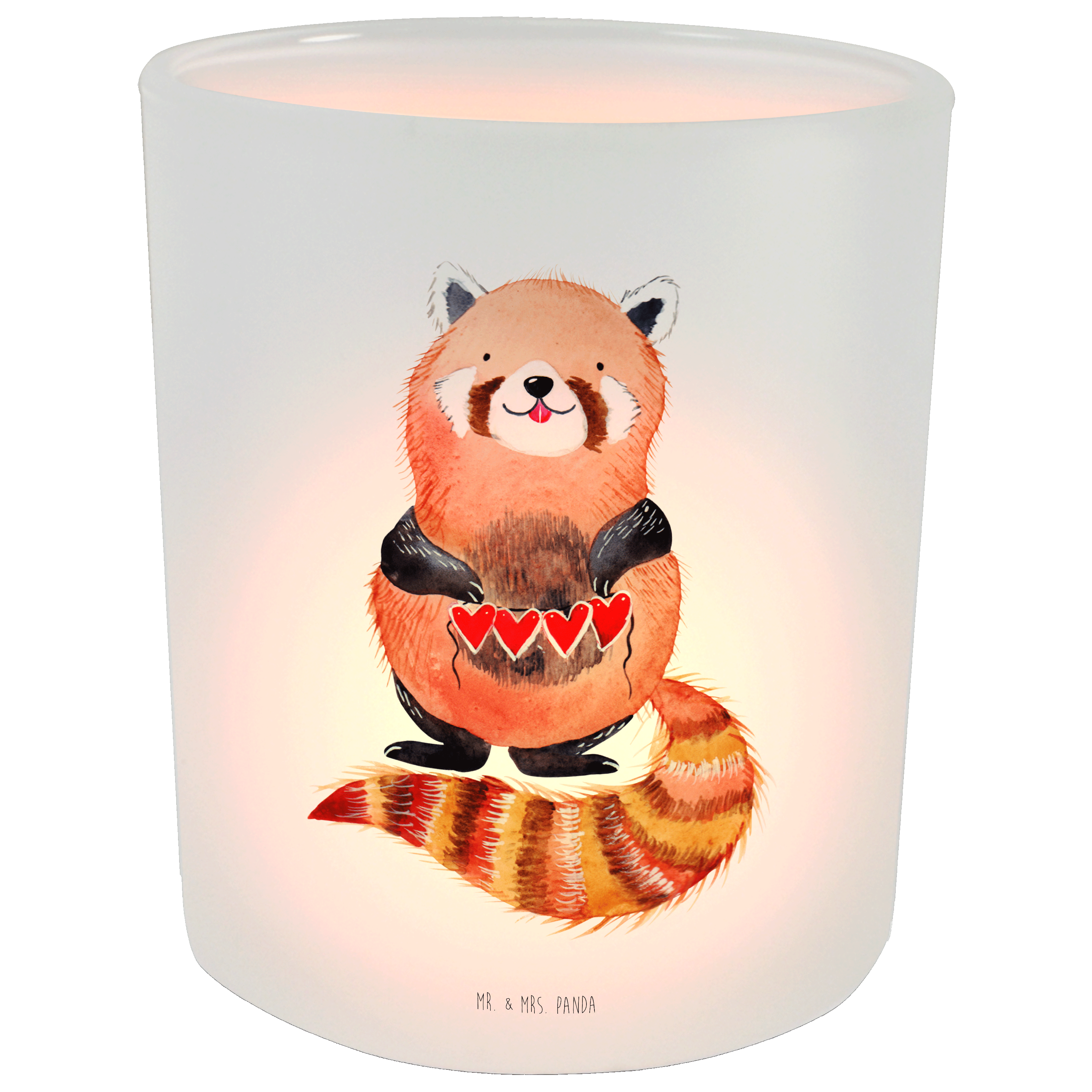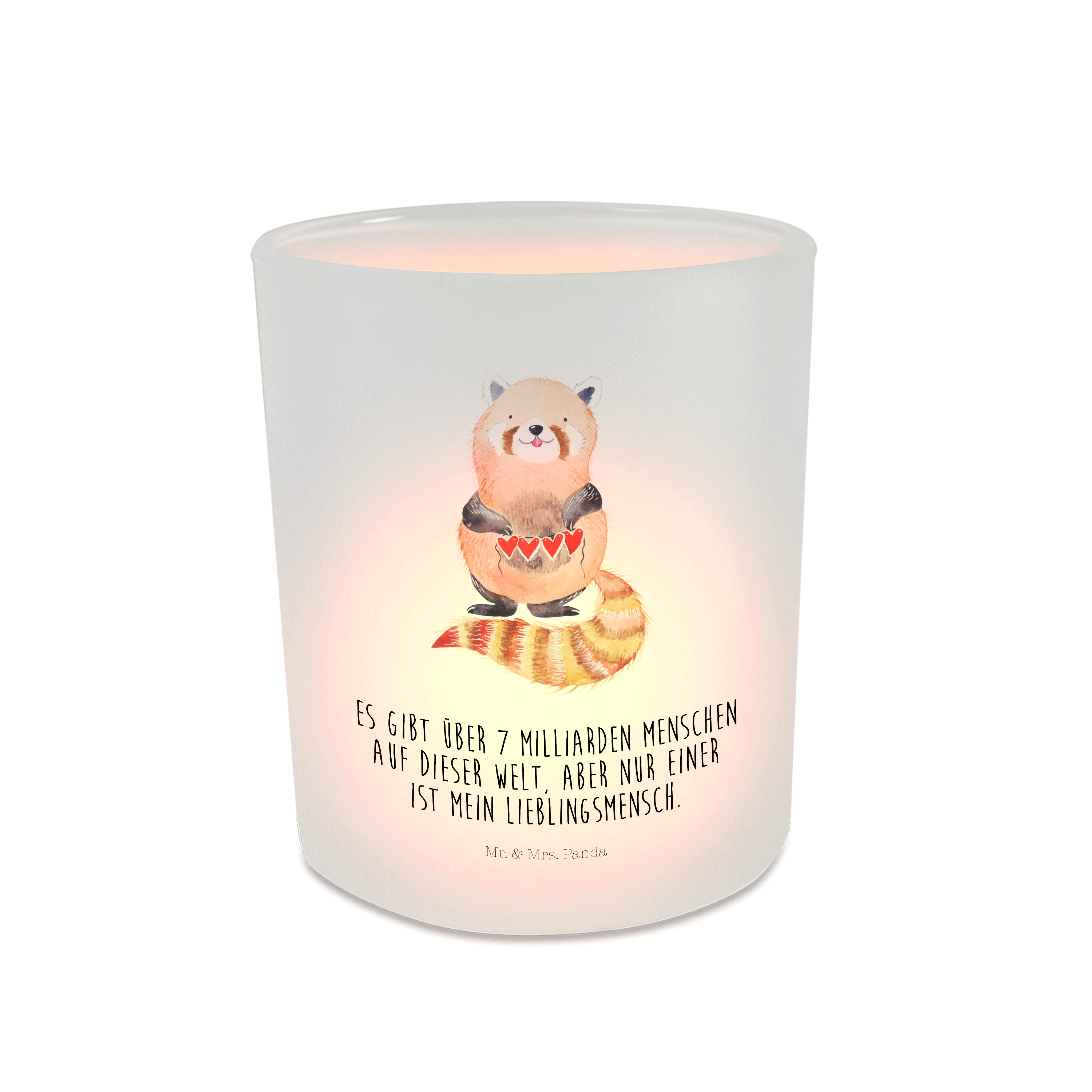 Windlicht Roter Panda Windlicht Glas, Teelichtglas, Teelichthalter, Teelichter, Kerzenglas, Windlicht Kerze, Kerzenlicht, Tiermotive, Gute Laune, lustige Sprüche, Tiere, Panda, Liebe, Rot, Herz, Liebling, Lieblingsmensch