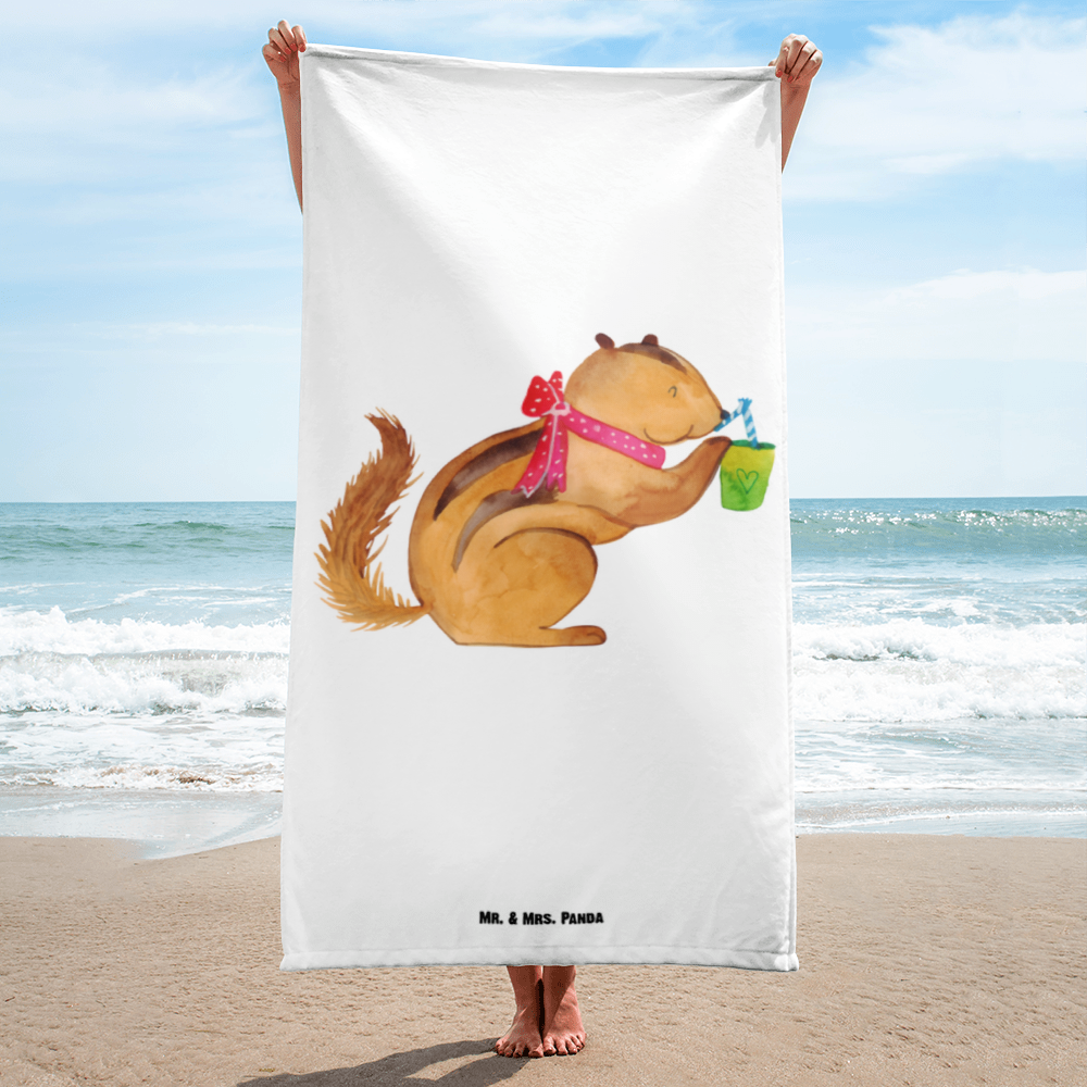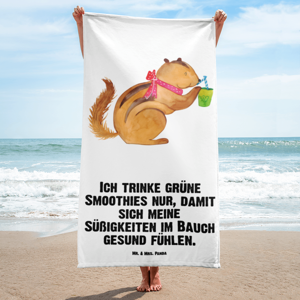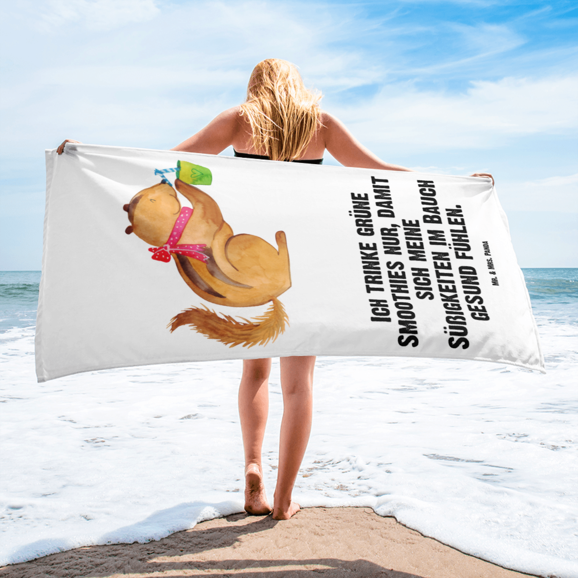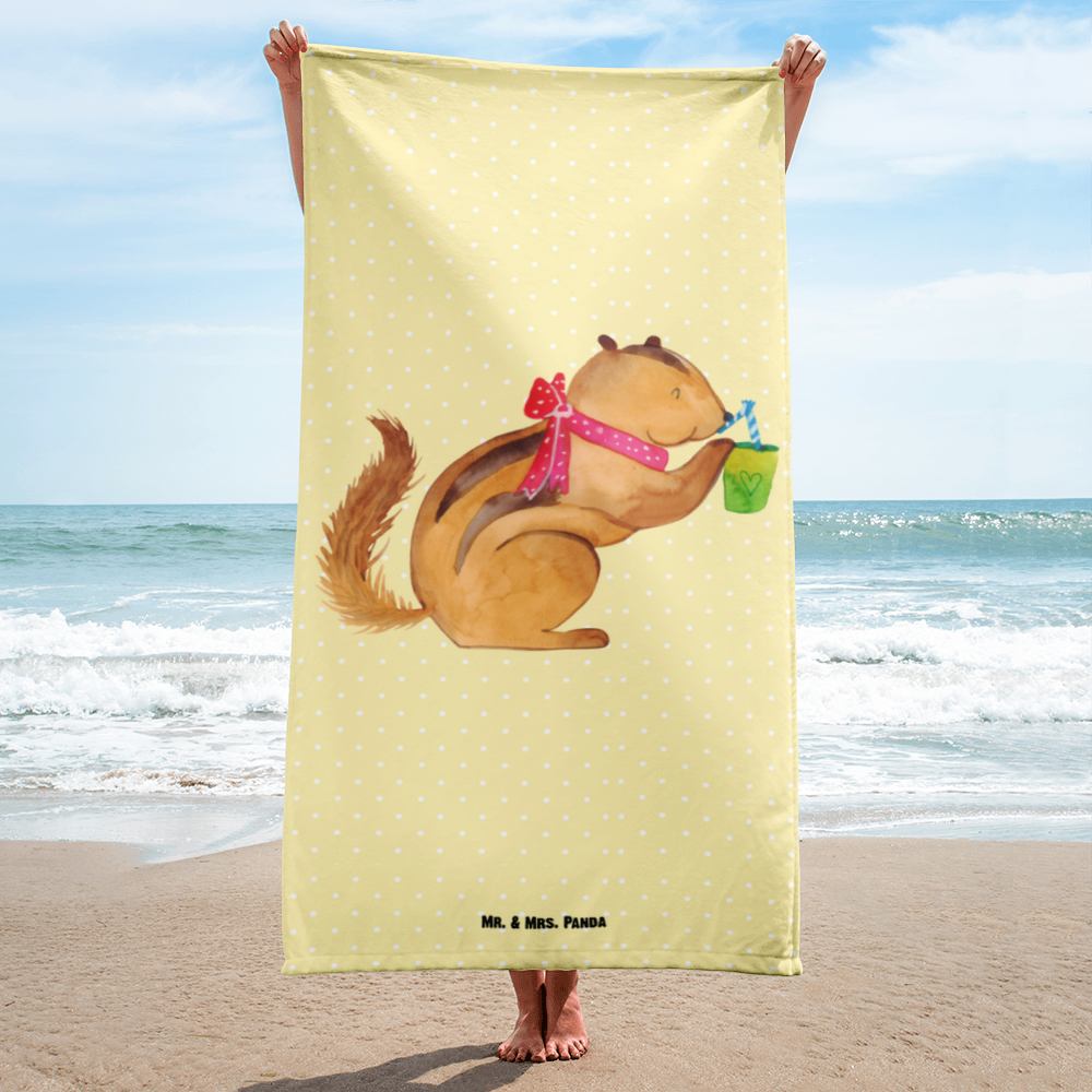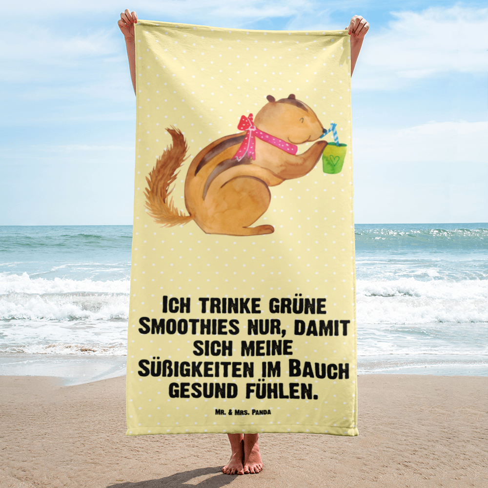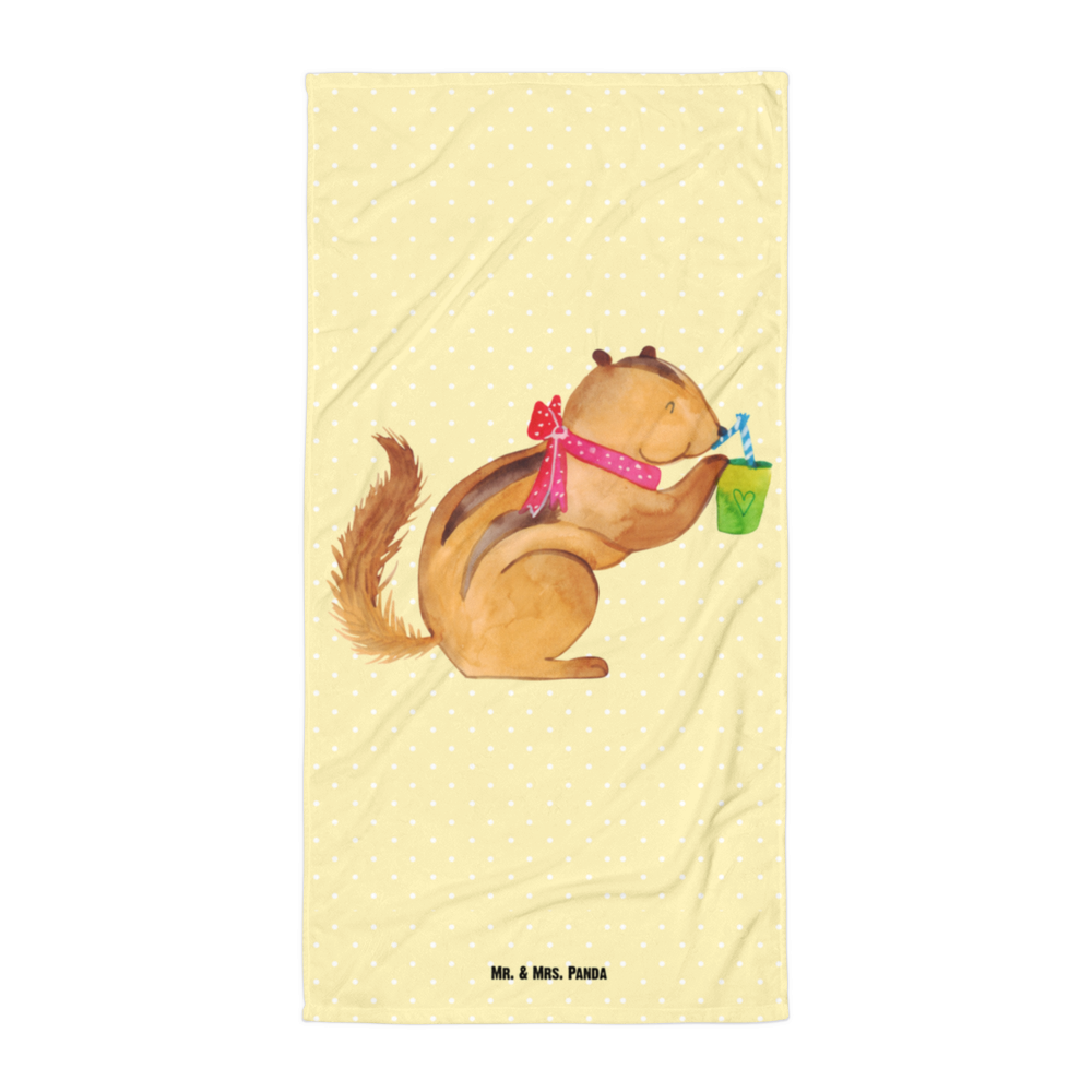 XL Badehandtuch Eichhörnchen Smoothie - mit Spruch - Gelb Pastell