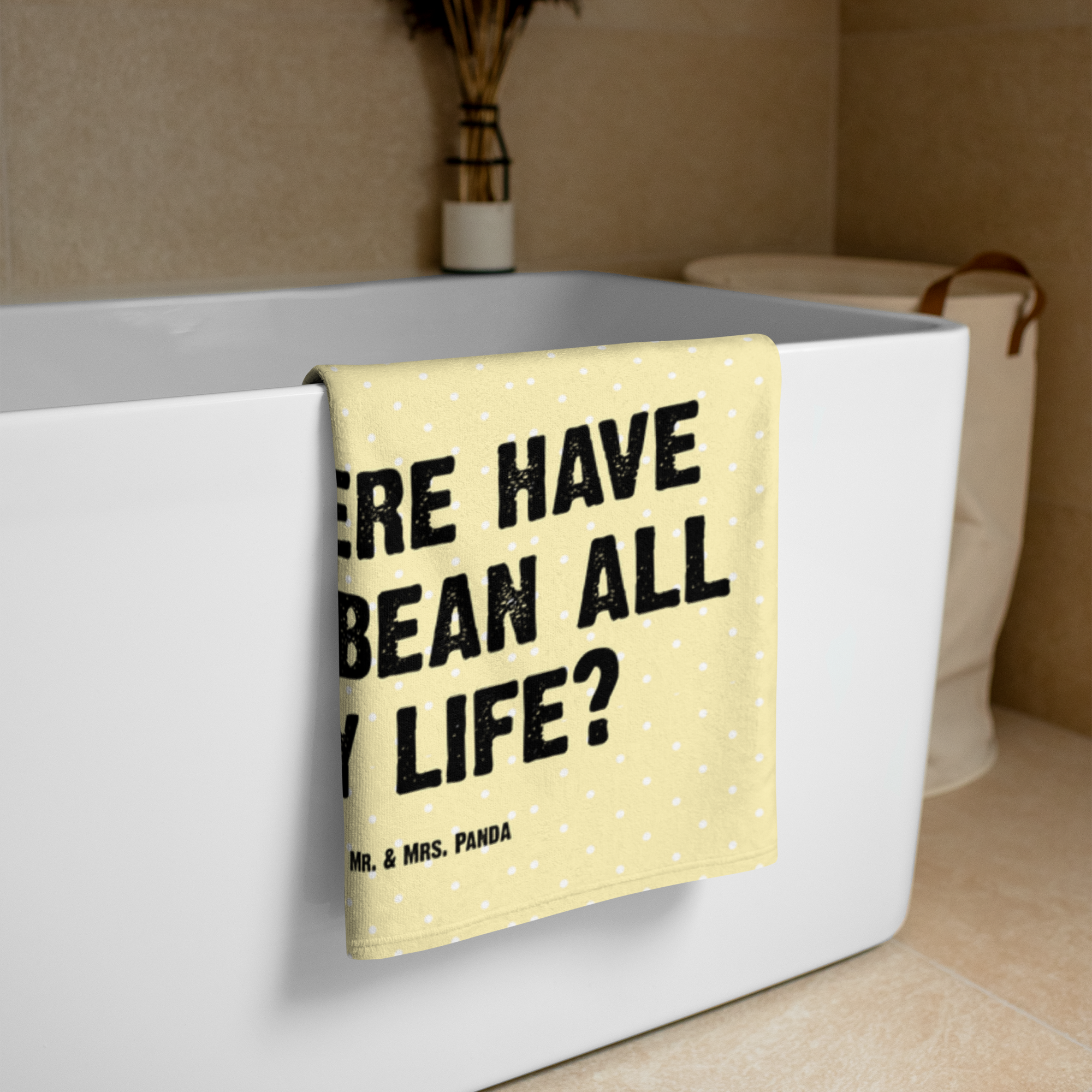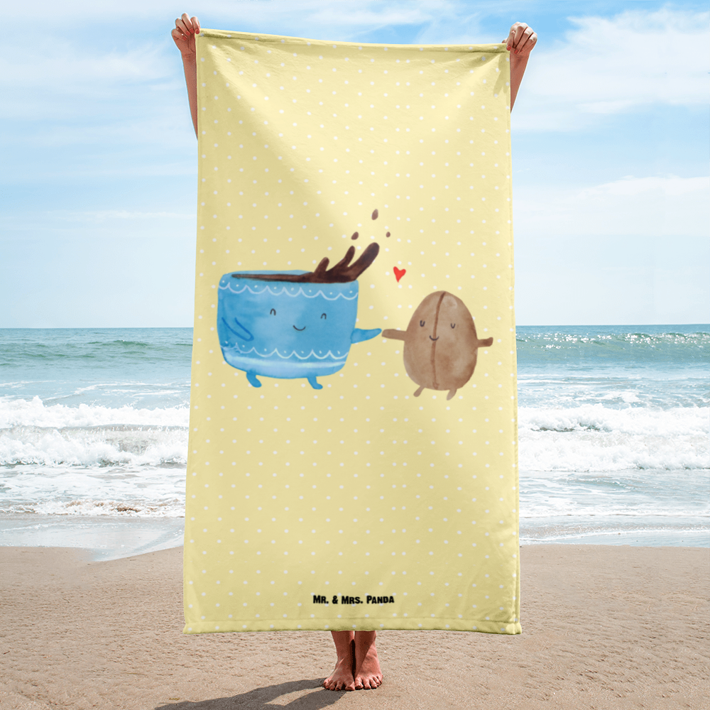 XL Badehandtuch Kaffee Bohne - mit Spruch - Gelb Pastell