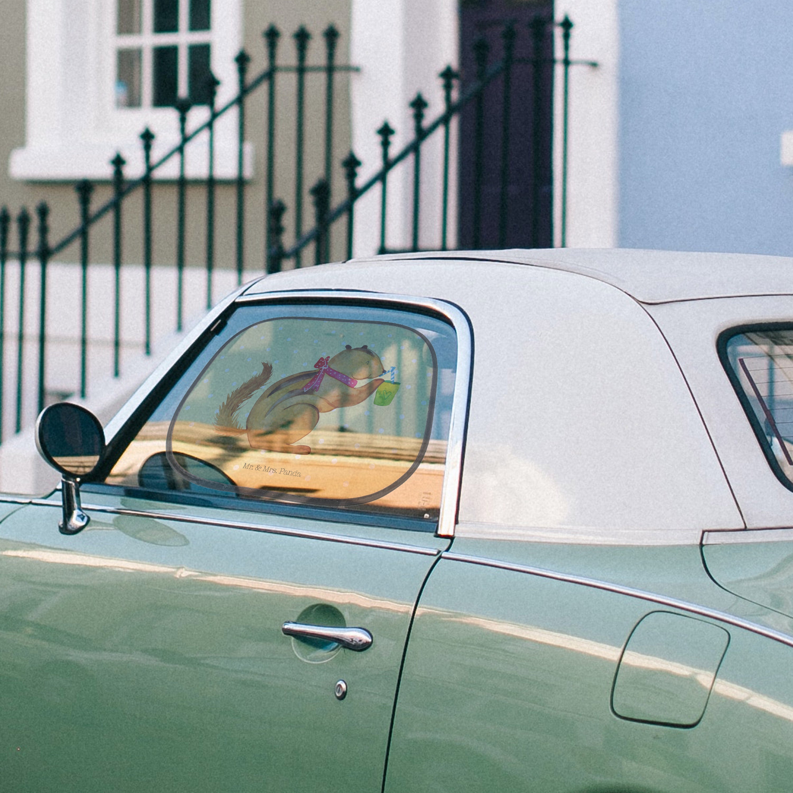Auto Sonnenschutz Eichhörnchen Smoothie - mit Spruch - Gelb Pastell