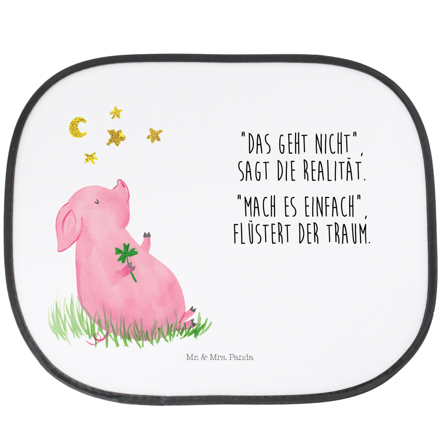 Auto Sonnenschutz Glücksschwein - mit Spruch - Weiß