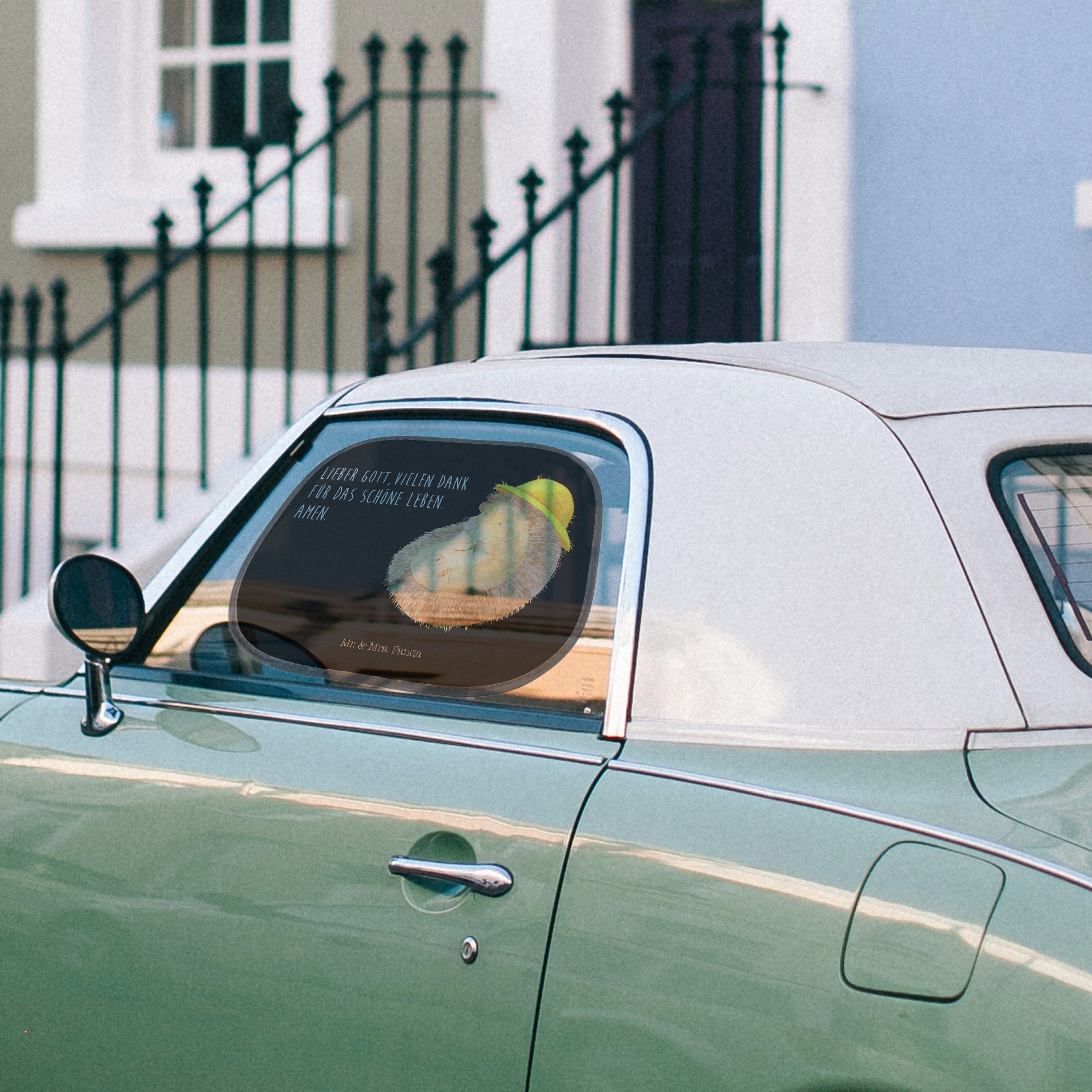 Auto Sonnenschutz Igel betet - mit Spruch - Weiß