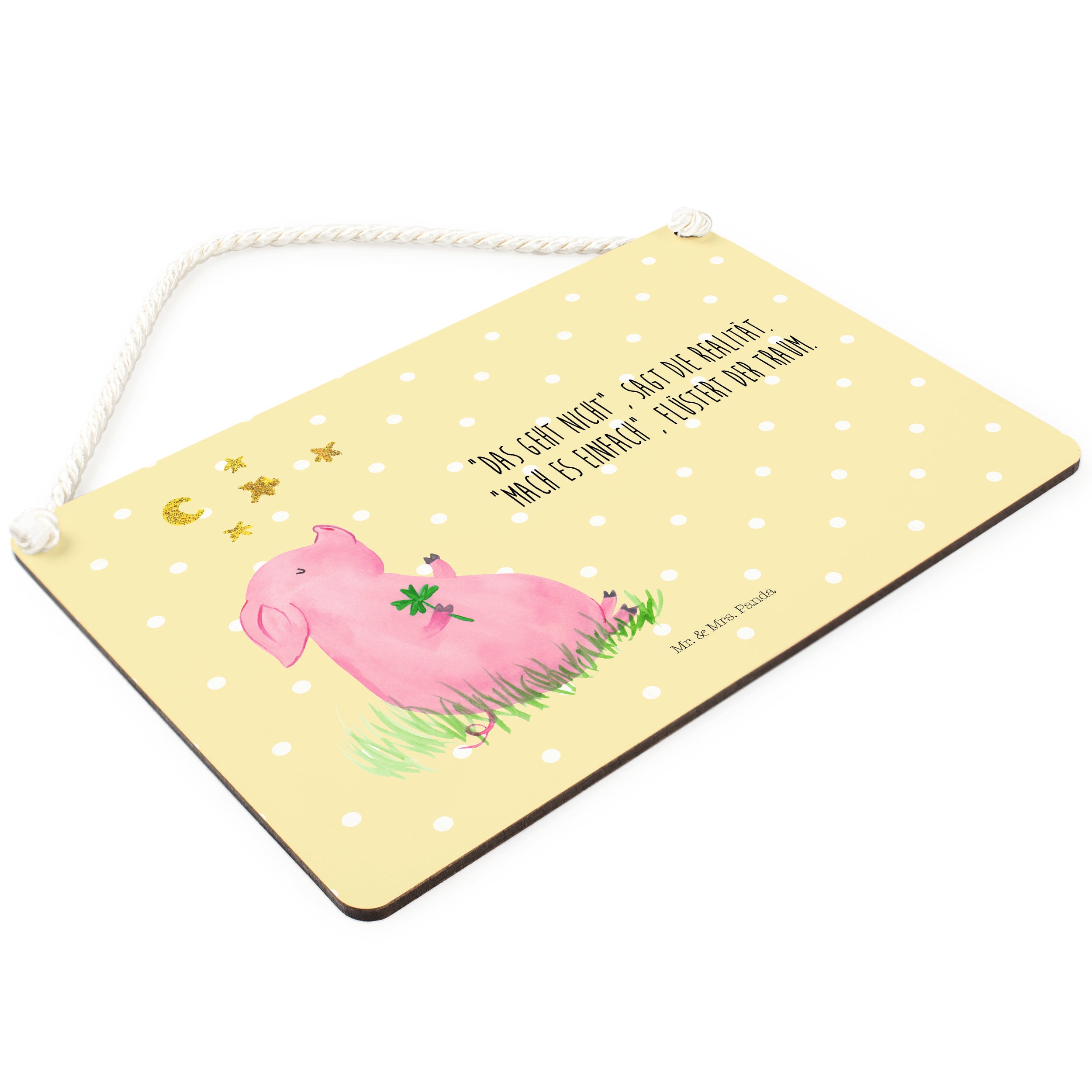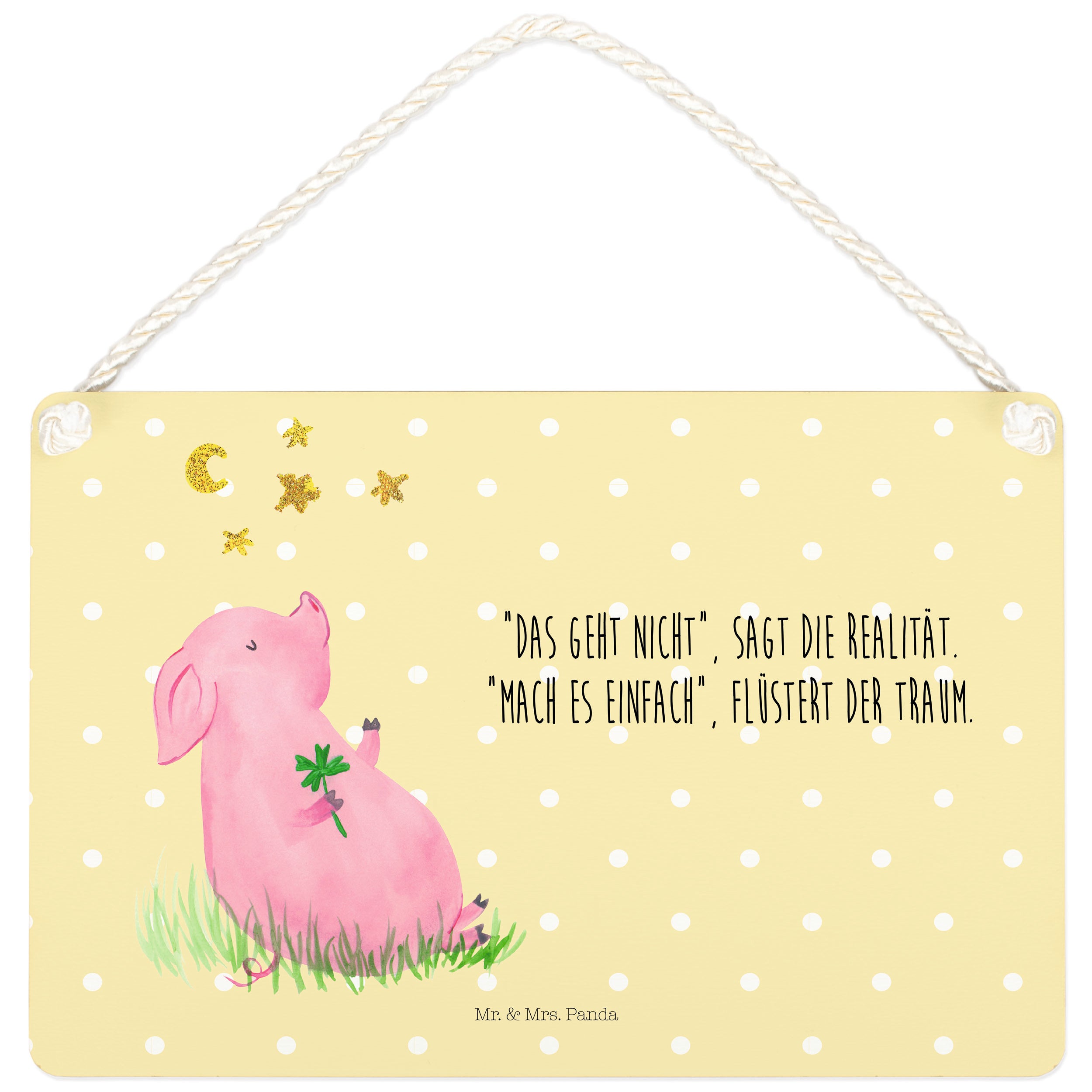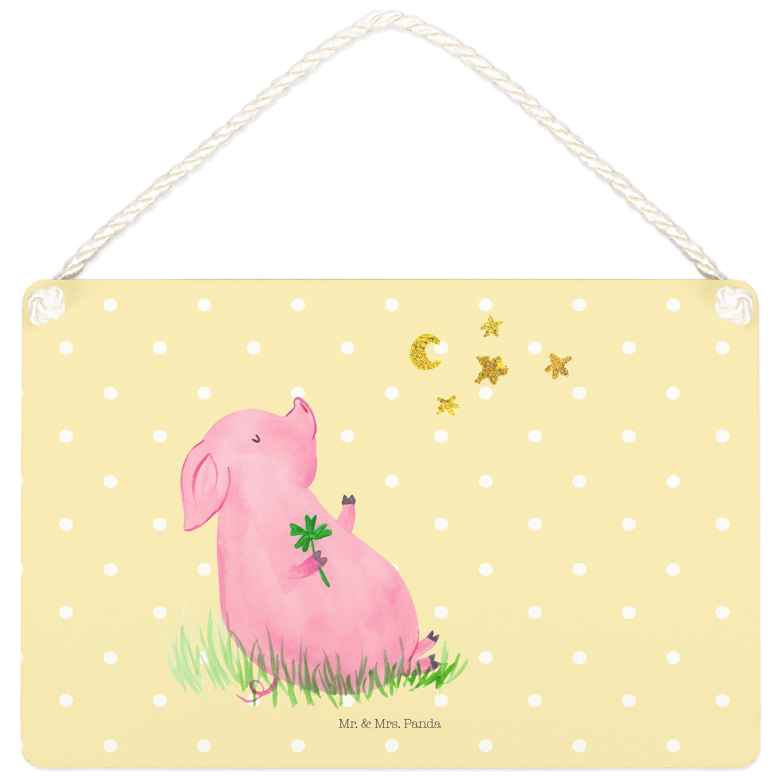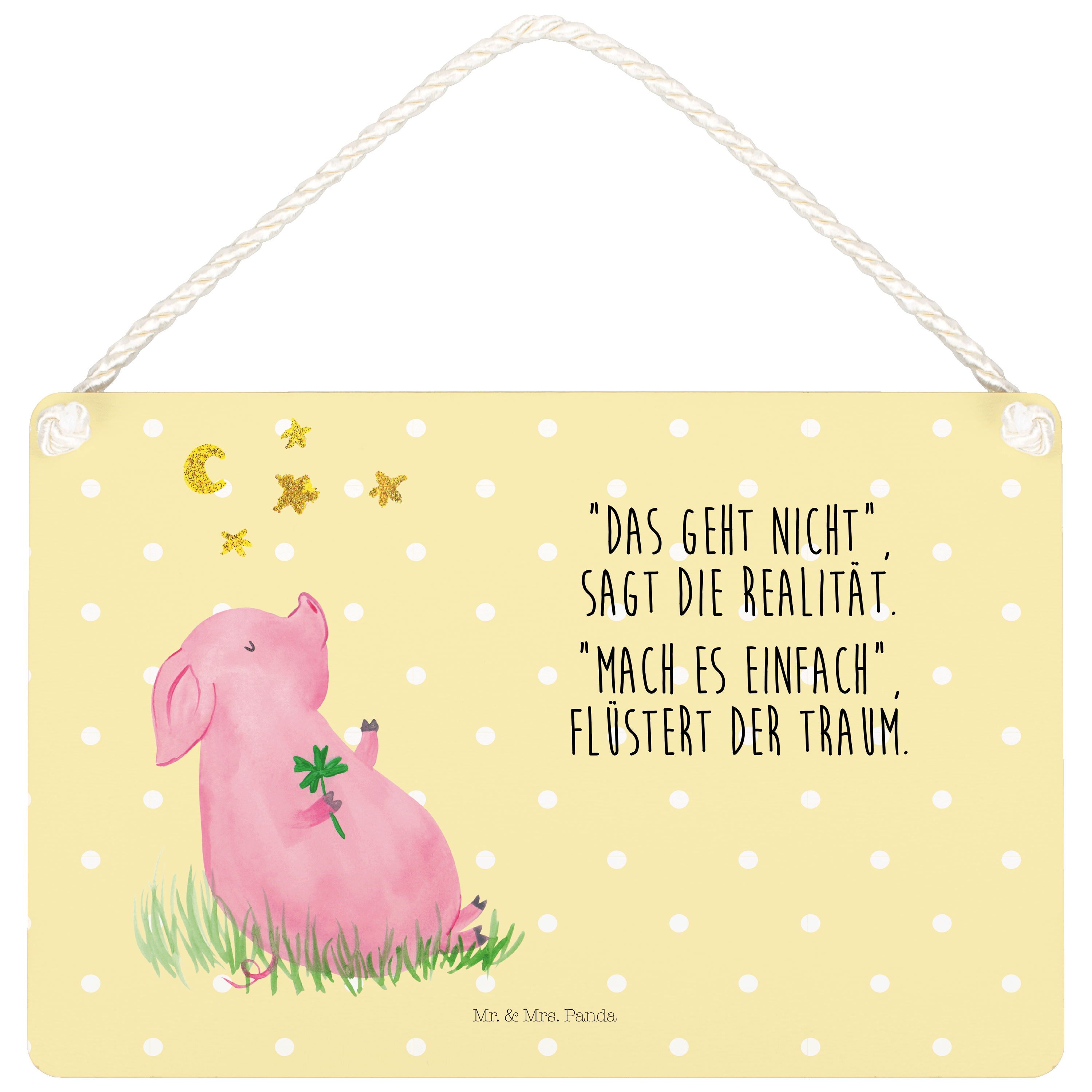Deko Schild Glücksschwein - DIN A4 - mit Spruch - Gelb Pastell