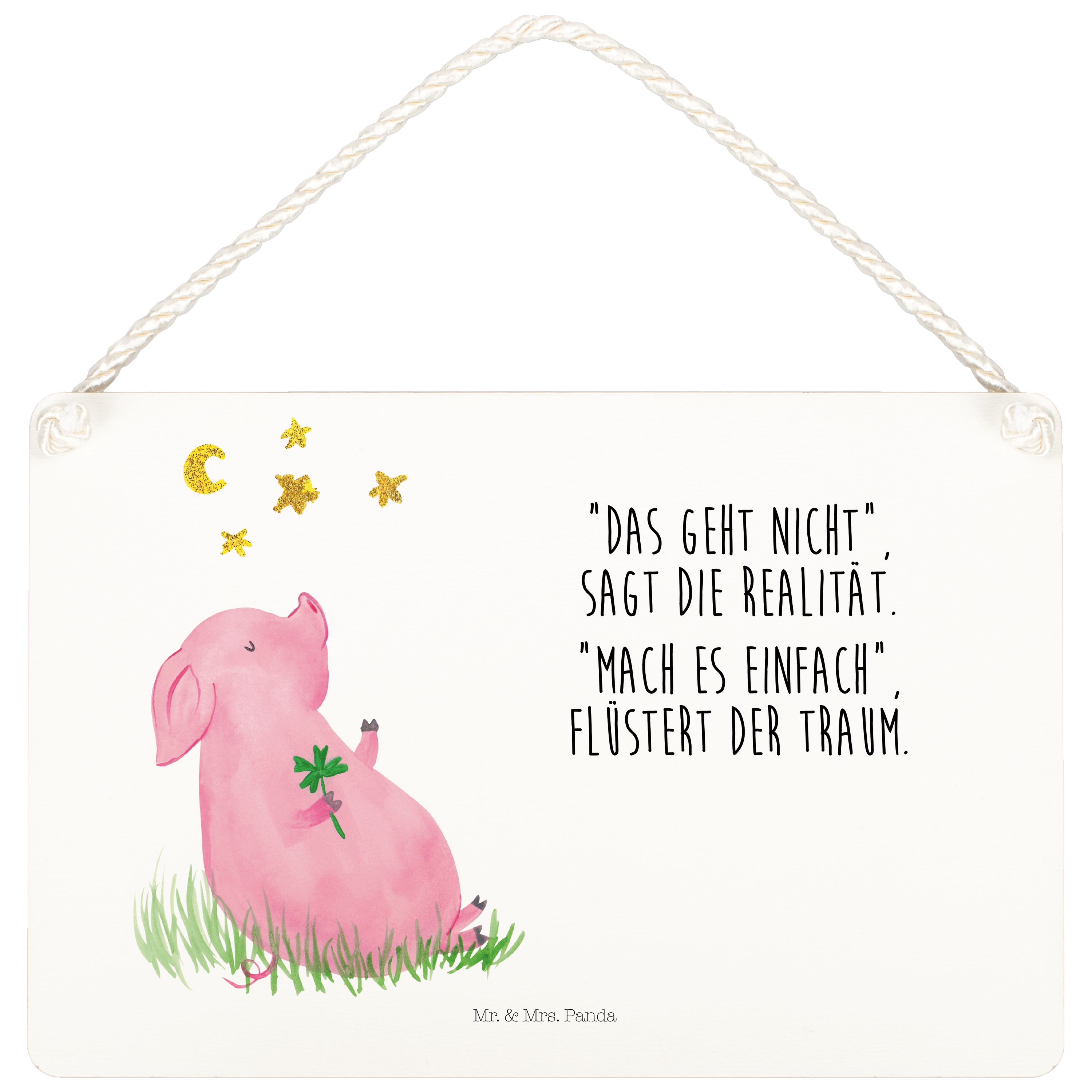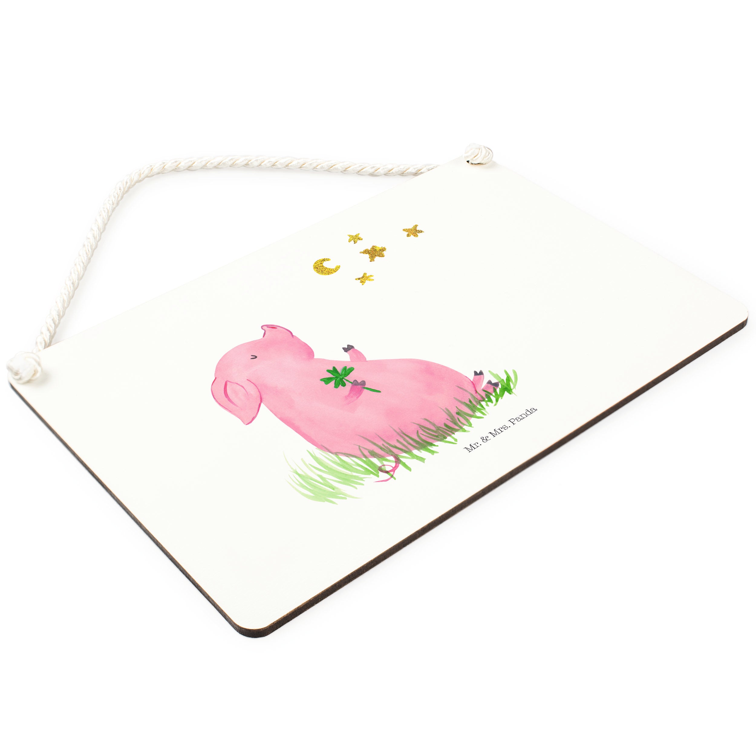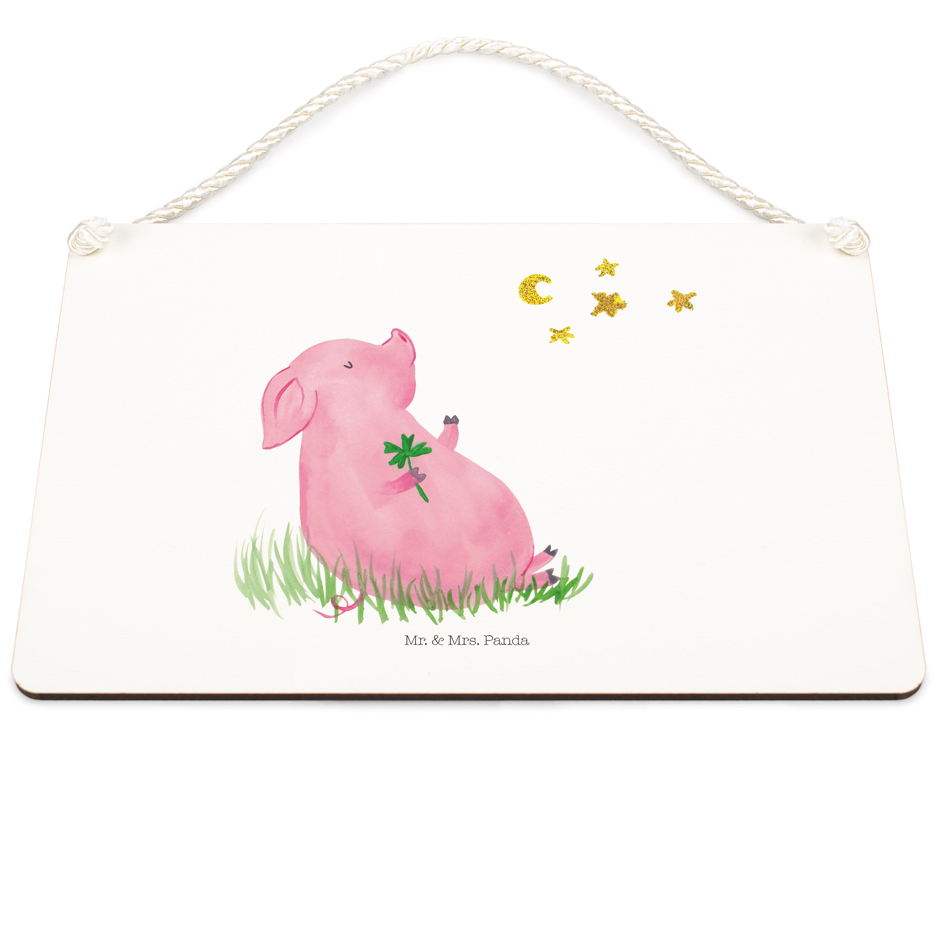 Du bist auf der Suche nach einem Weg, um das Glück in dein Leben zu lassen? Dann haben Mr. & Mrs. Panda genau das Richtige für dich - das Glücksschwein. Auf dem süßen Motiv hält ein kleines Schwein ein Kleeblatt in der Hand – das Symbol für Glück und Zufriedenheit. Das Glücksschwein ist der perfekte Begleiter für alle, die ihrem Leben eine Extraportion Glück verleihen wollen.