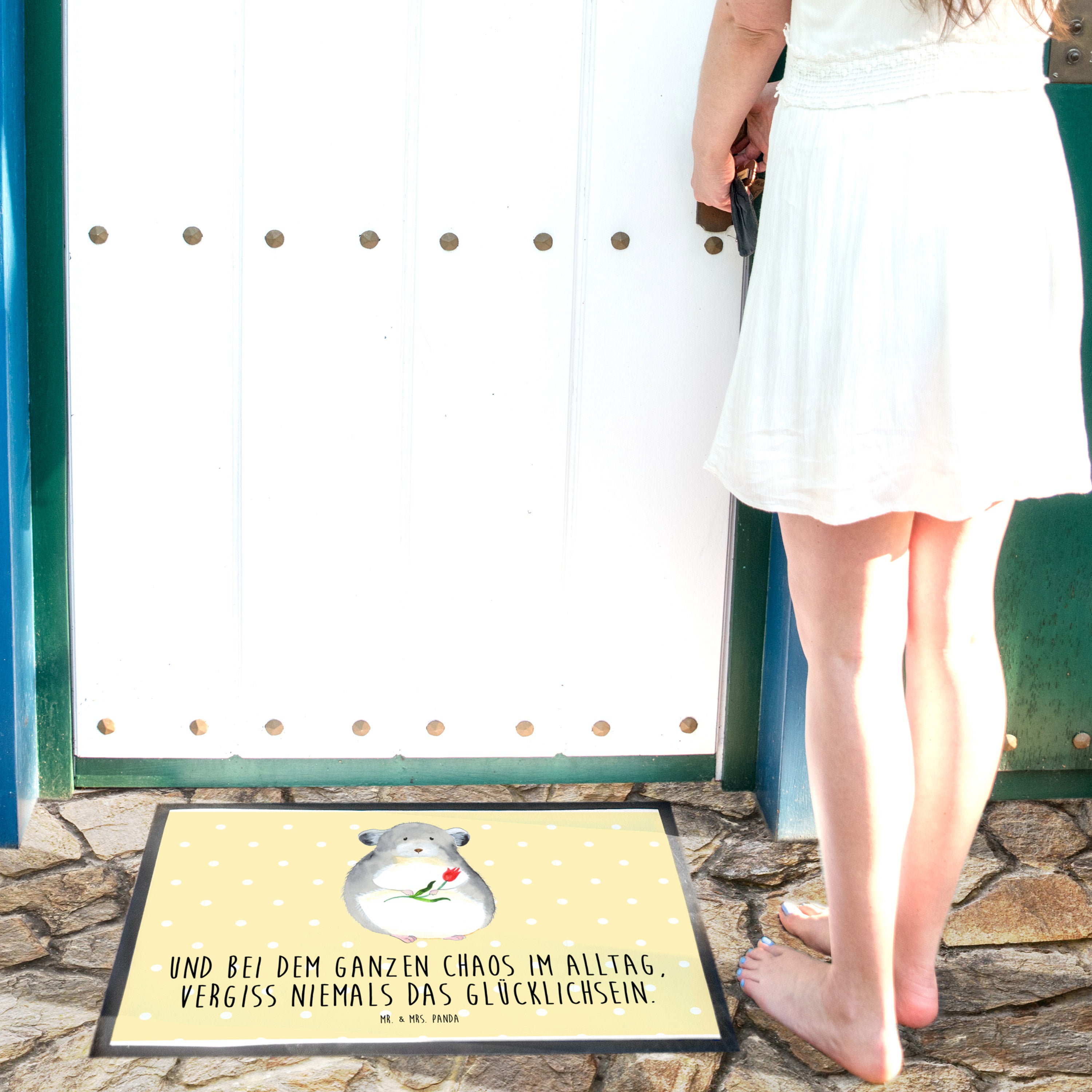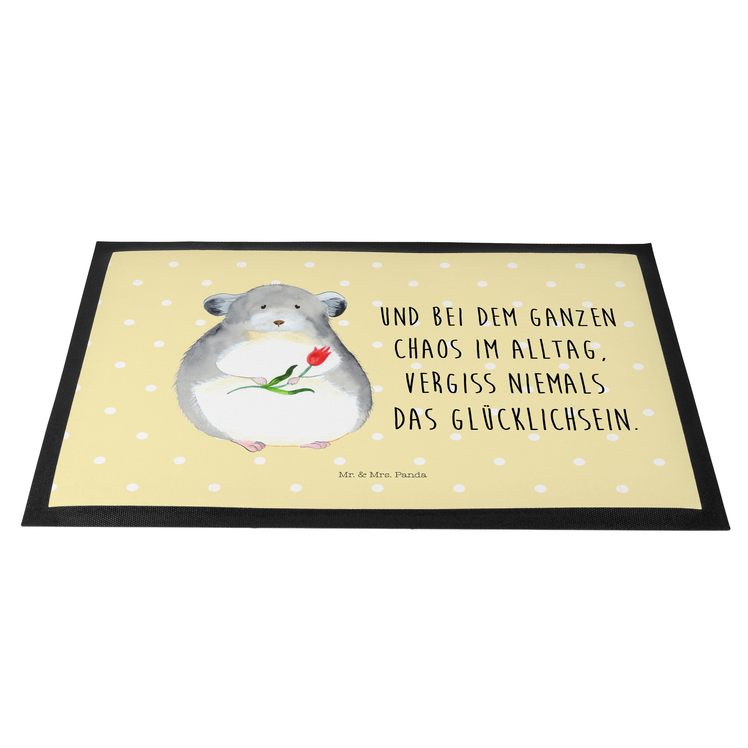Fußmatte Chinchilla mit Blume - 60 x 90 cm - mit Spruch - Gelb Pastell
