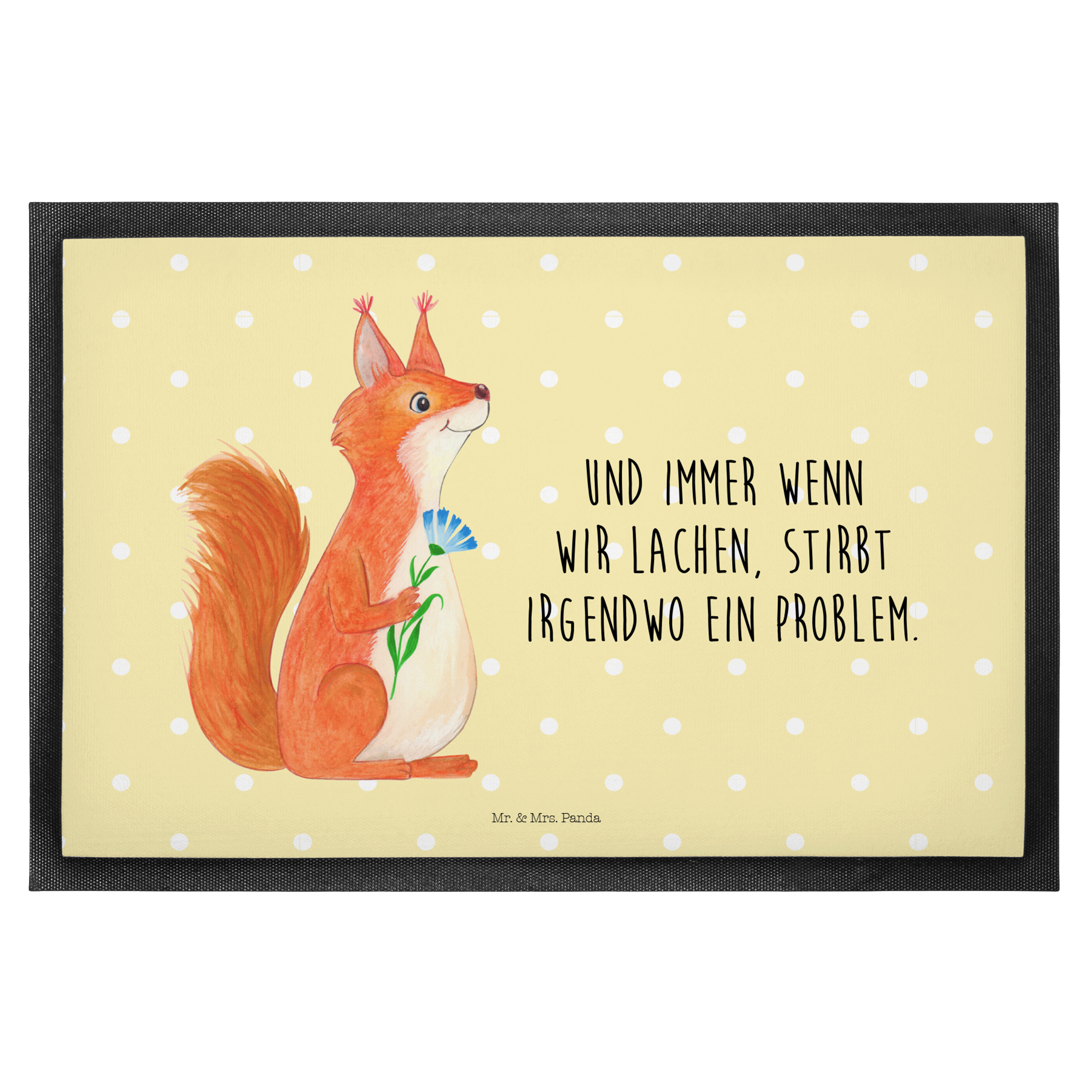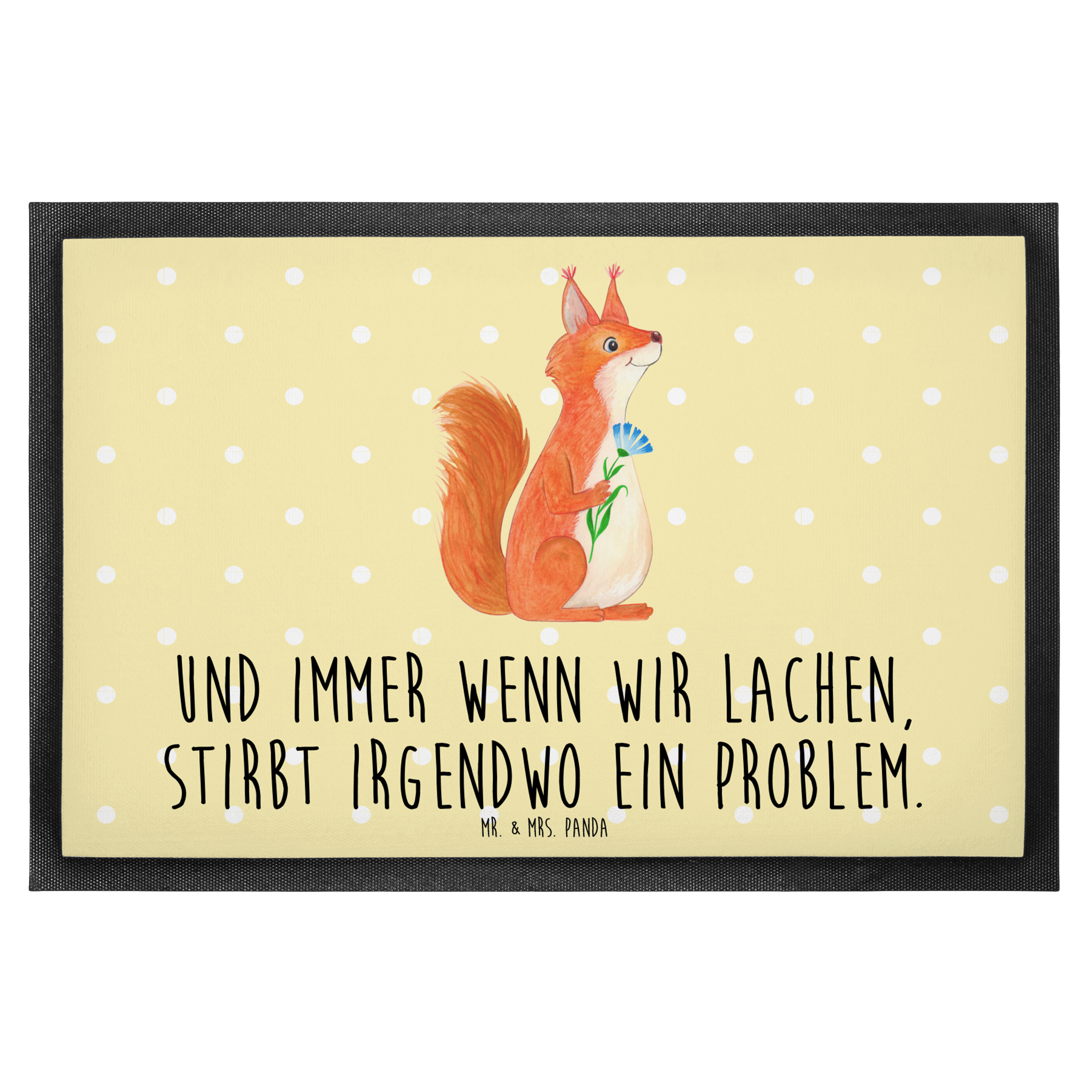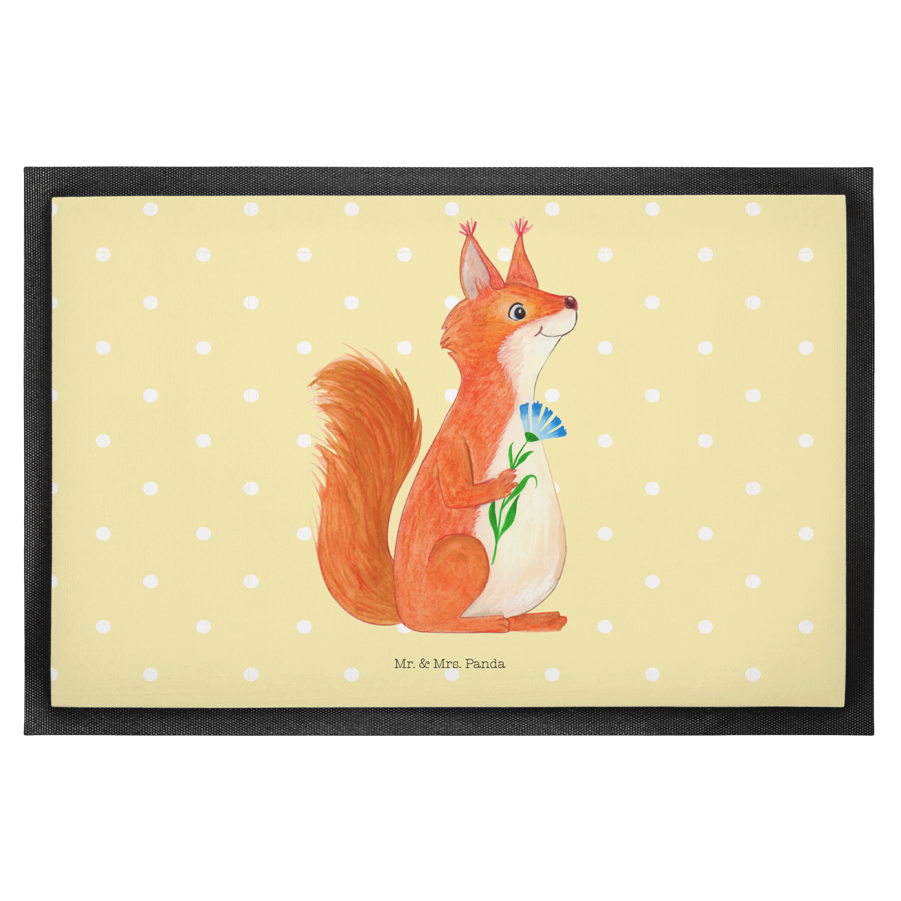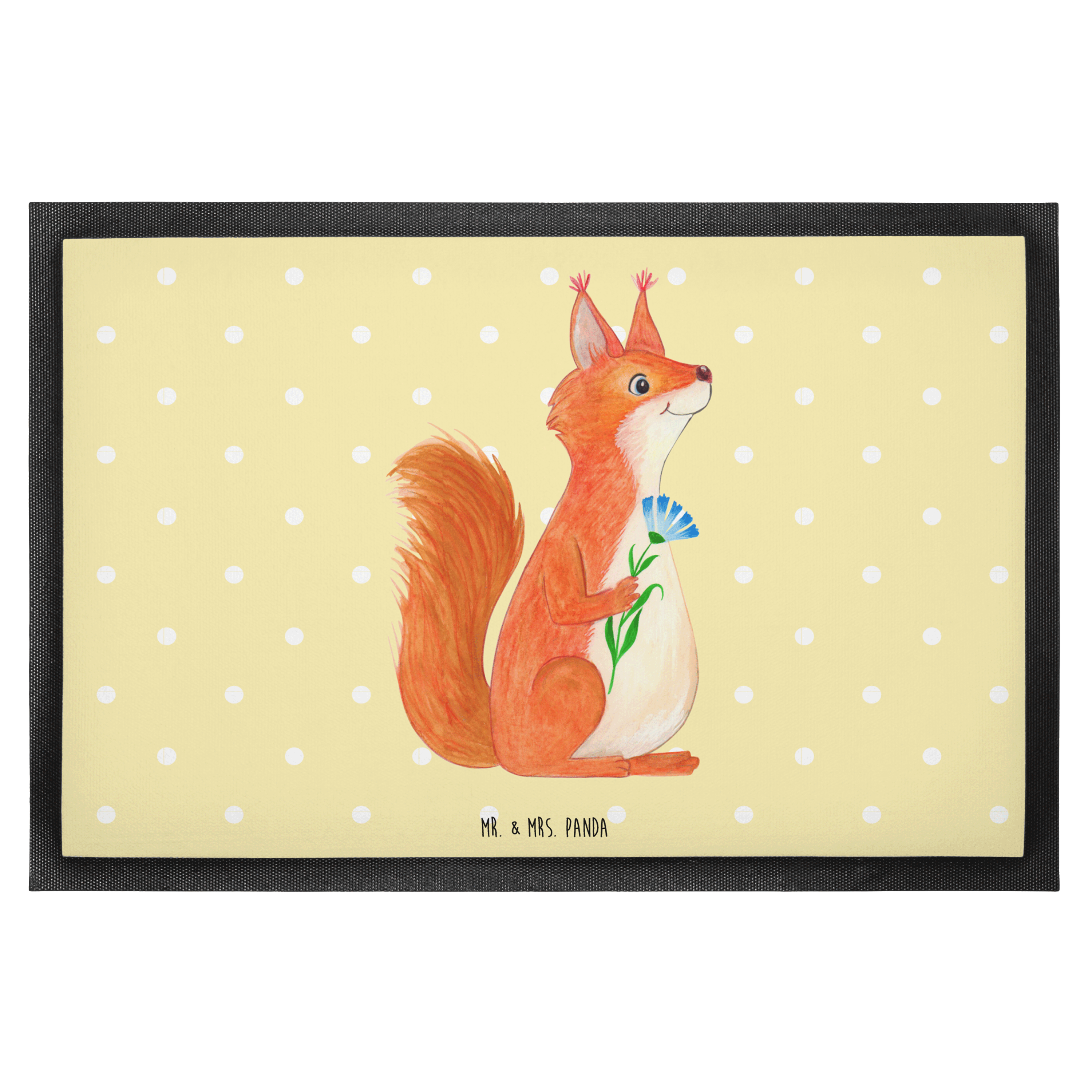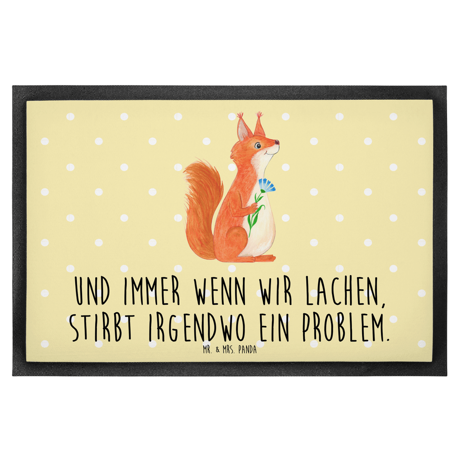 Fußmatte Eichhörnchen Blume - 60 x 90 cm - mit Spruch - Gelb Pastell