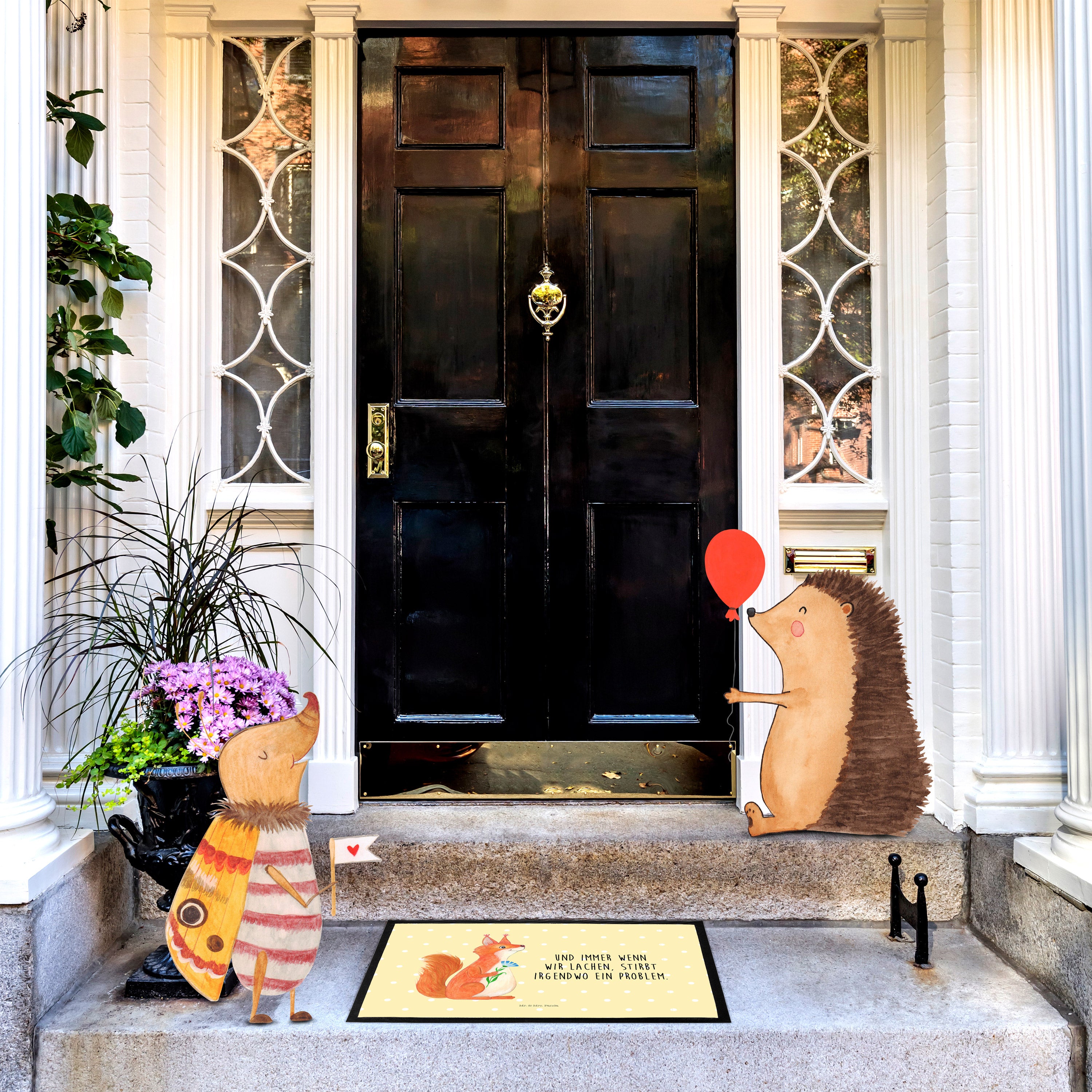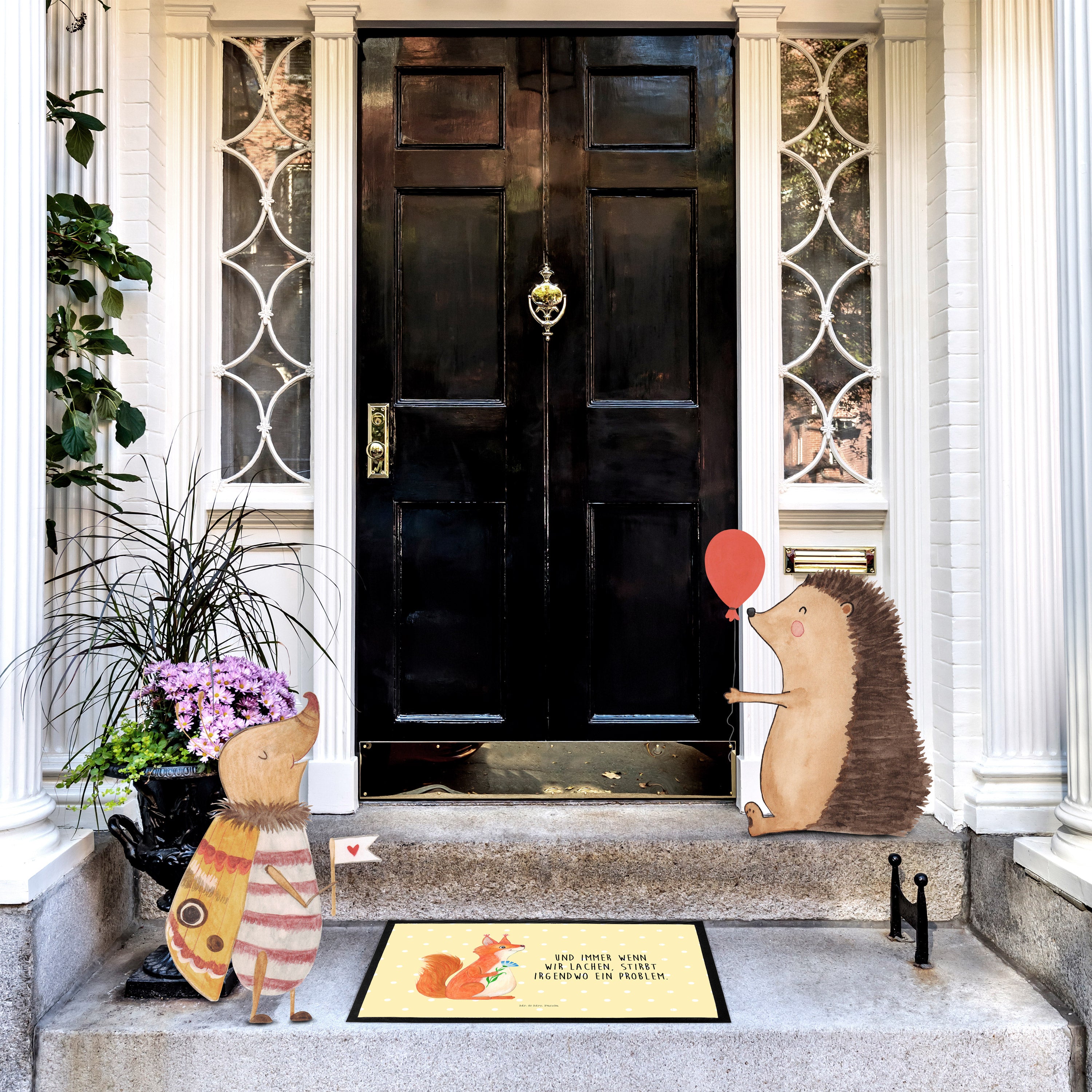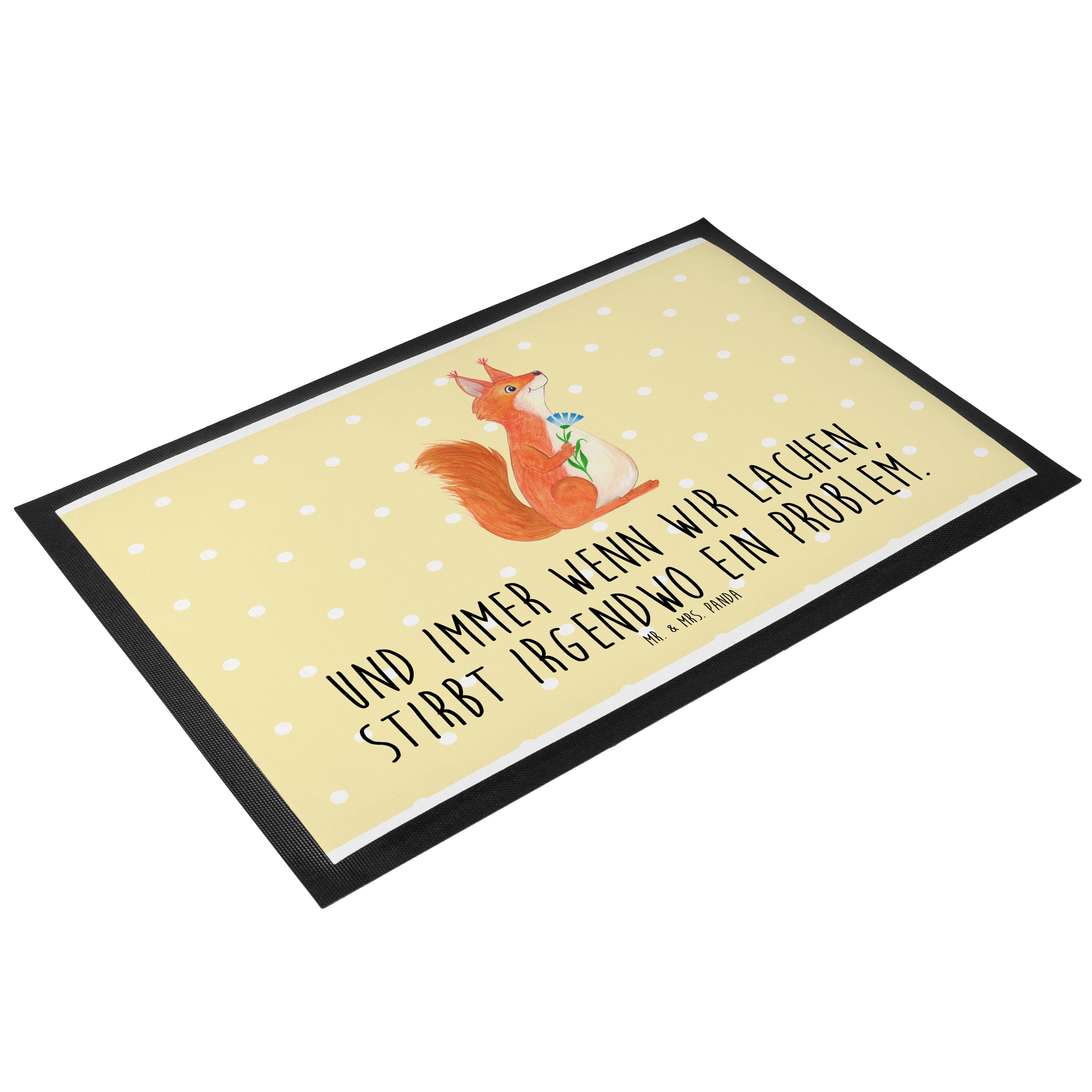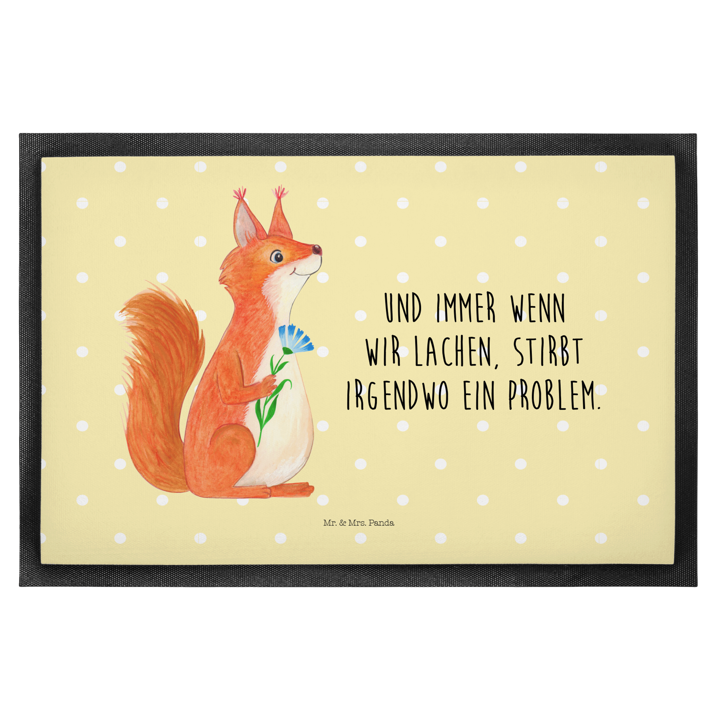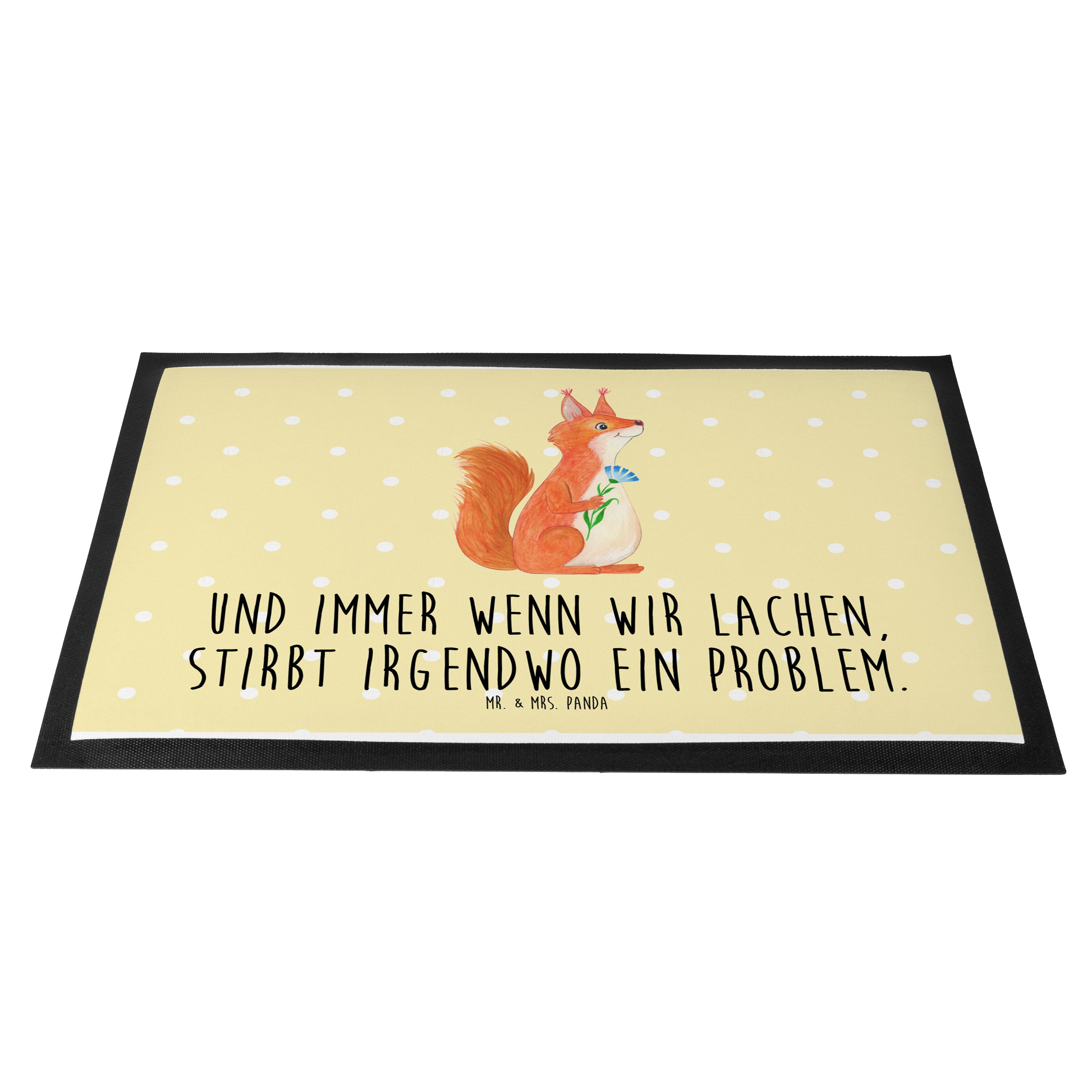 Fußmatte Eichhörnchen Blume - 60 x 90 cm - mit Spruch - Gelb Pastell