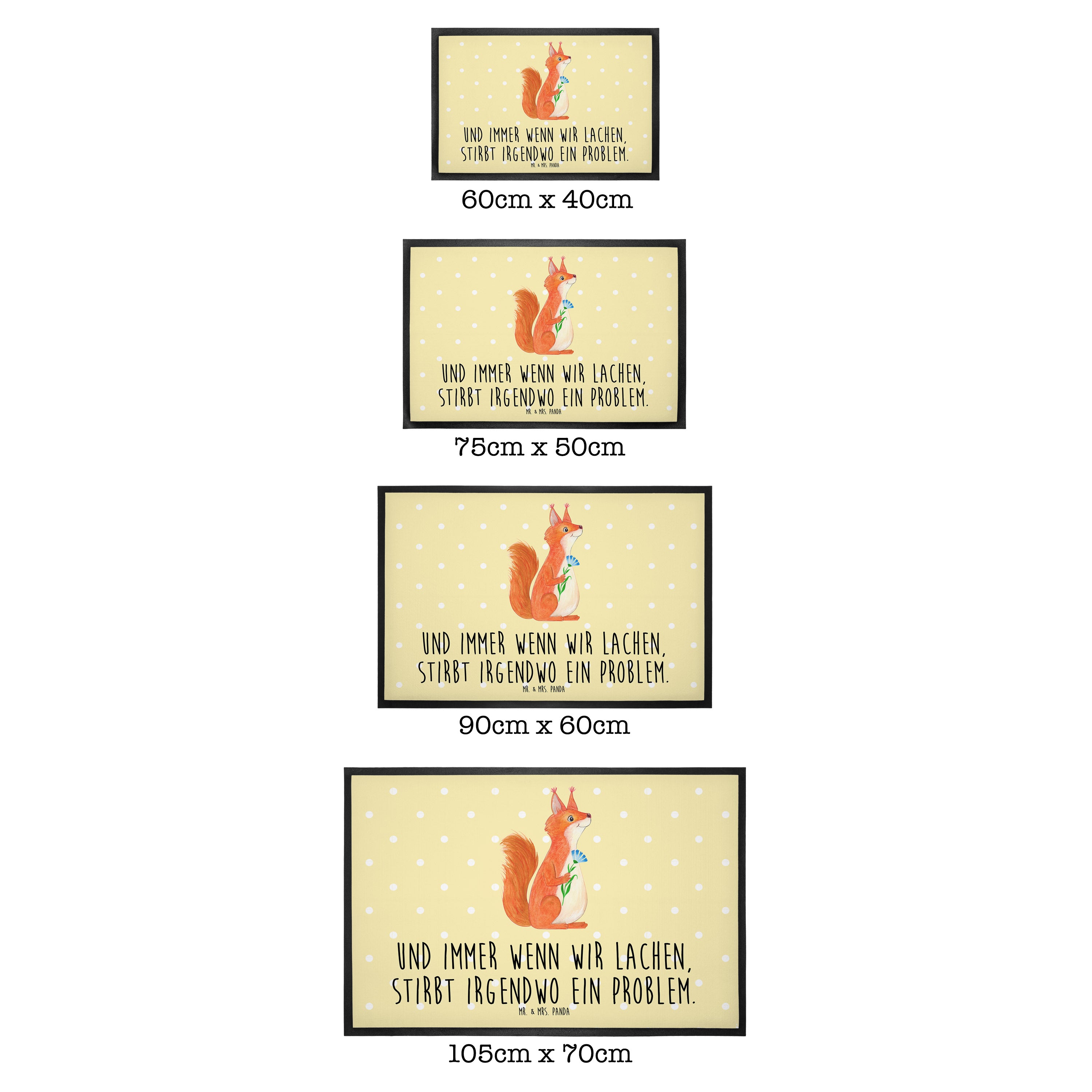 Die wunderschönen Fussmatten von Mr. & Mrs. Panda sind etwas ganz Besonderes. Sie sind als Türvorleger draußen und drinnen benutzbar. Du kannst zwischen drei verschiedenen Größen wählen. Alle Motive der Vorleger werden von uns entworfen und jede Fußmatte wird von uns in unserer Manufaktur selbst bedruckt und liebevoll an euch verschickt.