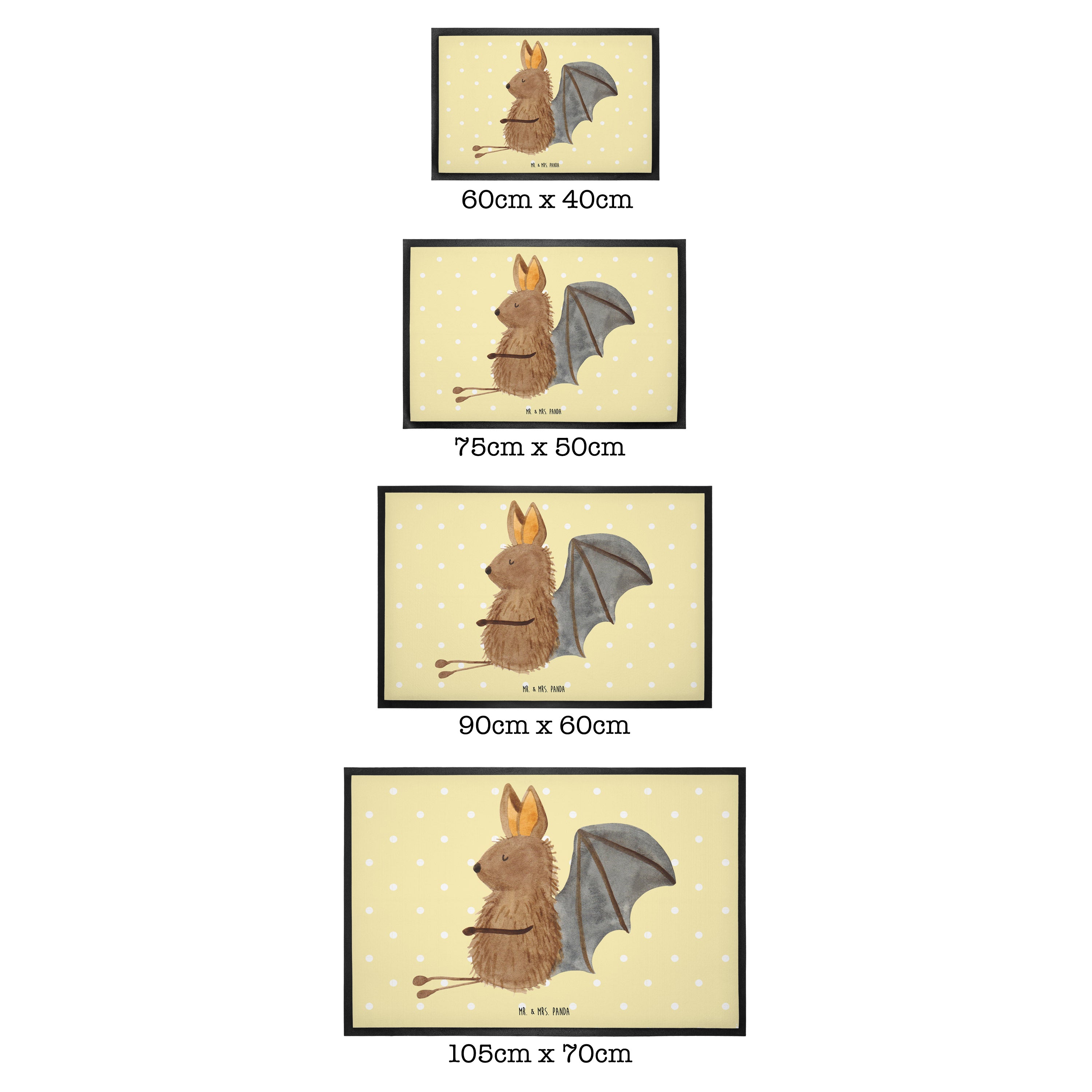 Fußmatte Fledermaus sitzend - 60 x 90 cm - mit Spruch - Gelb Pastell