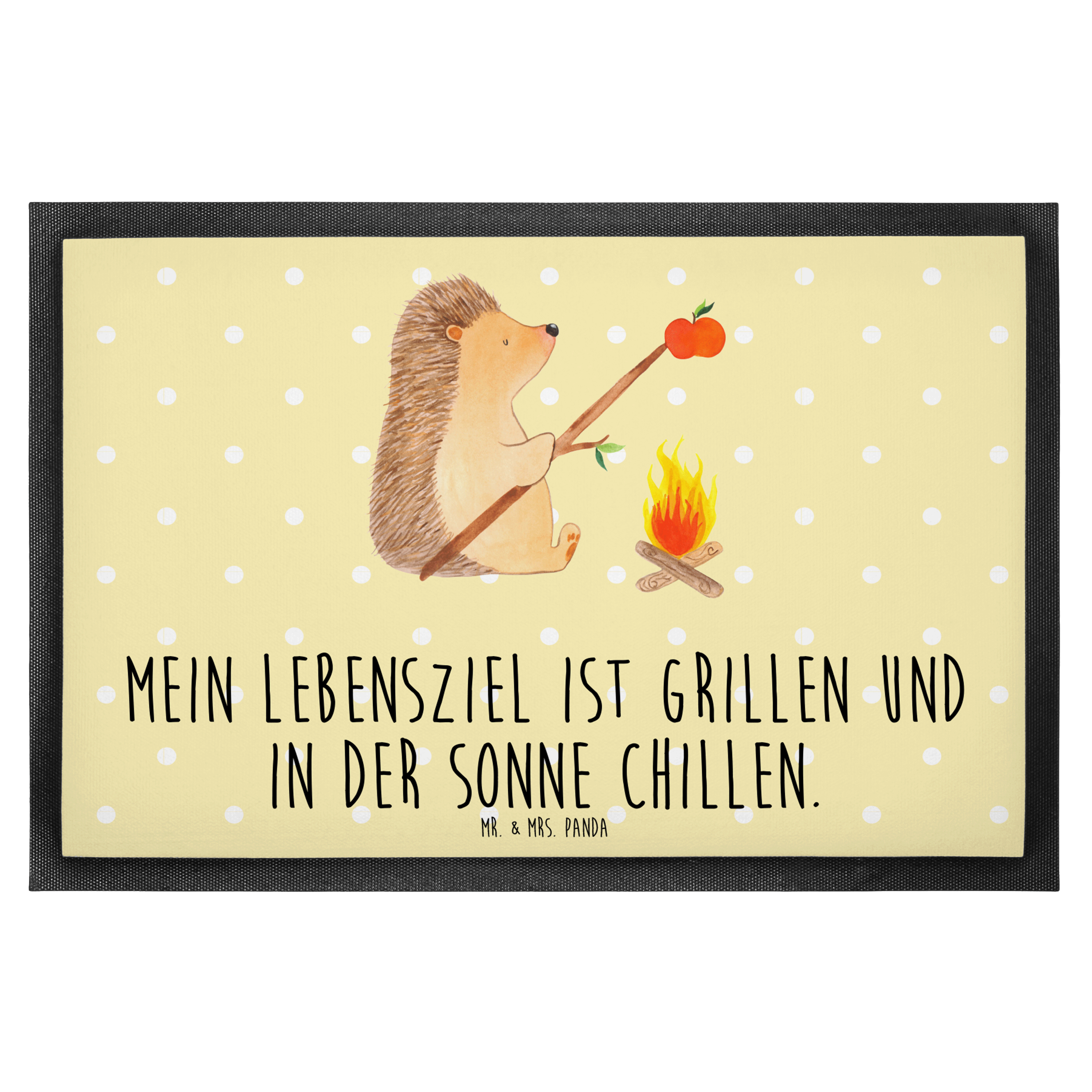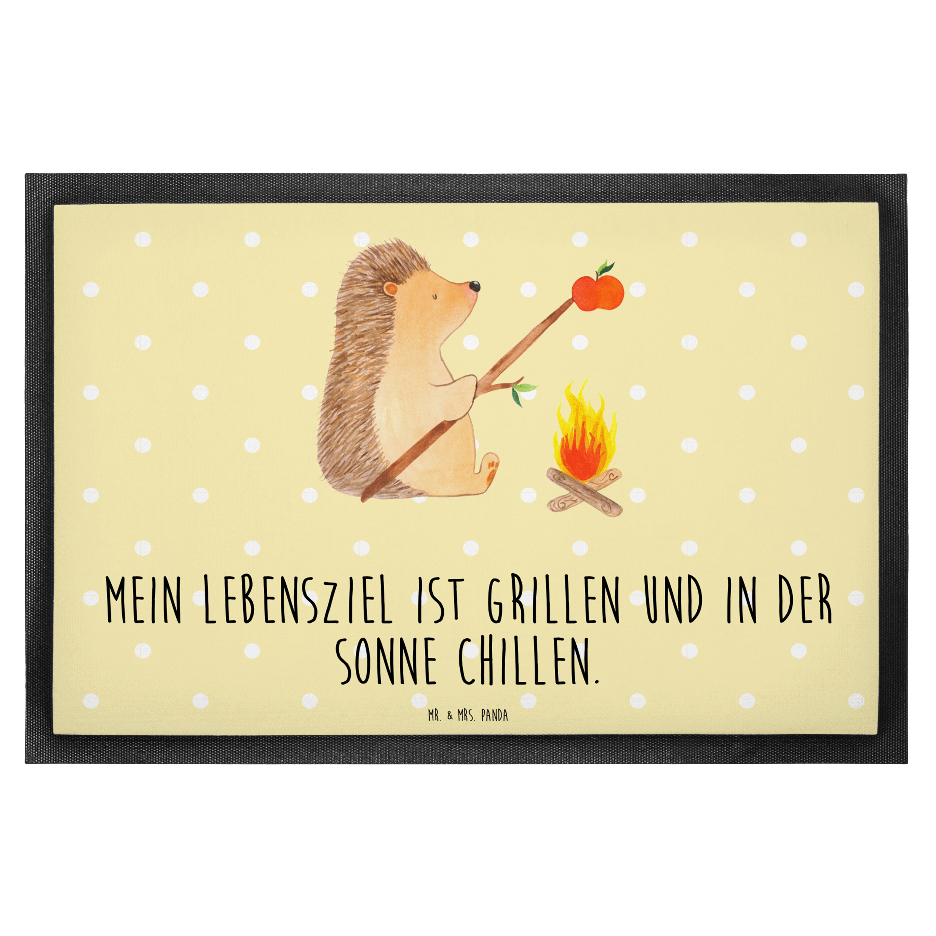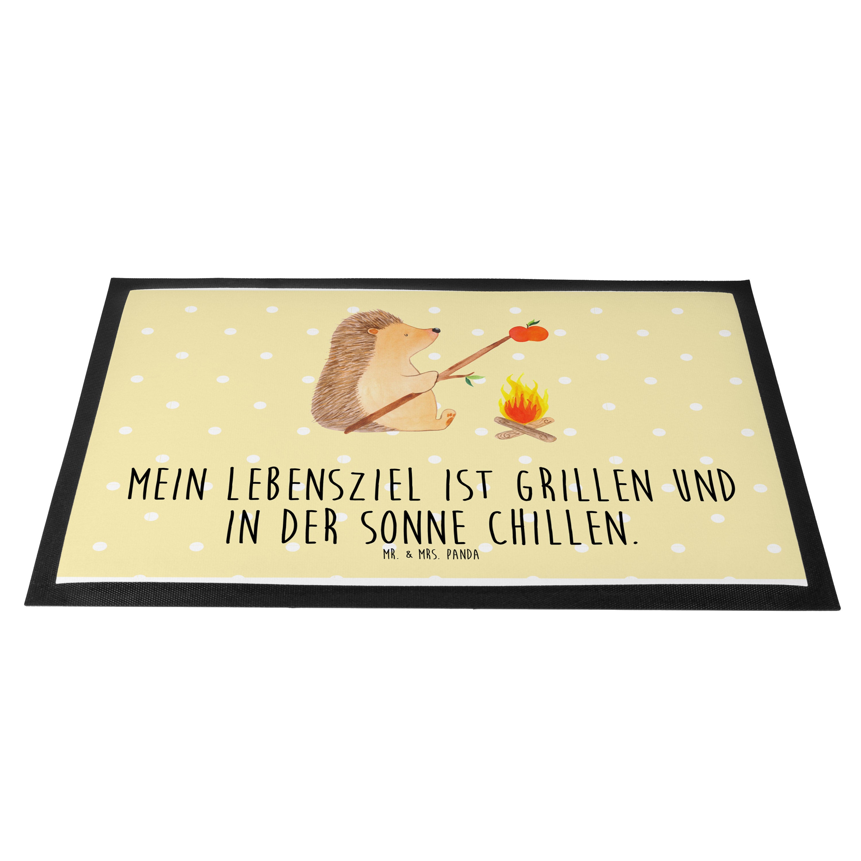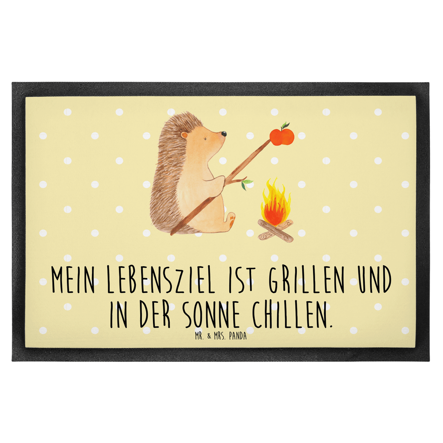 Fußmatte Igel grillt - 60 x 90 cm - mit Spruch - Gelb Pastell