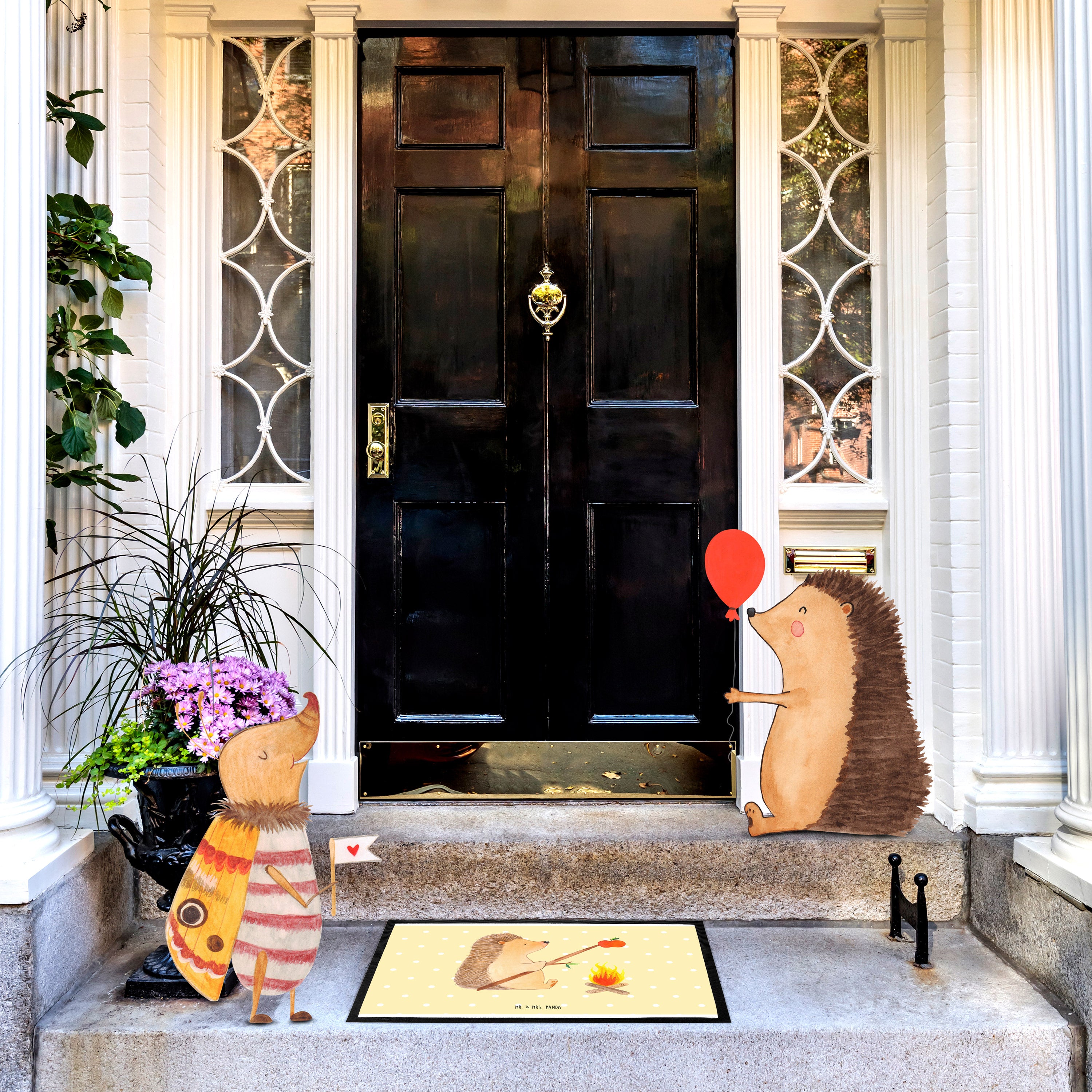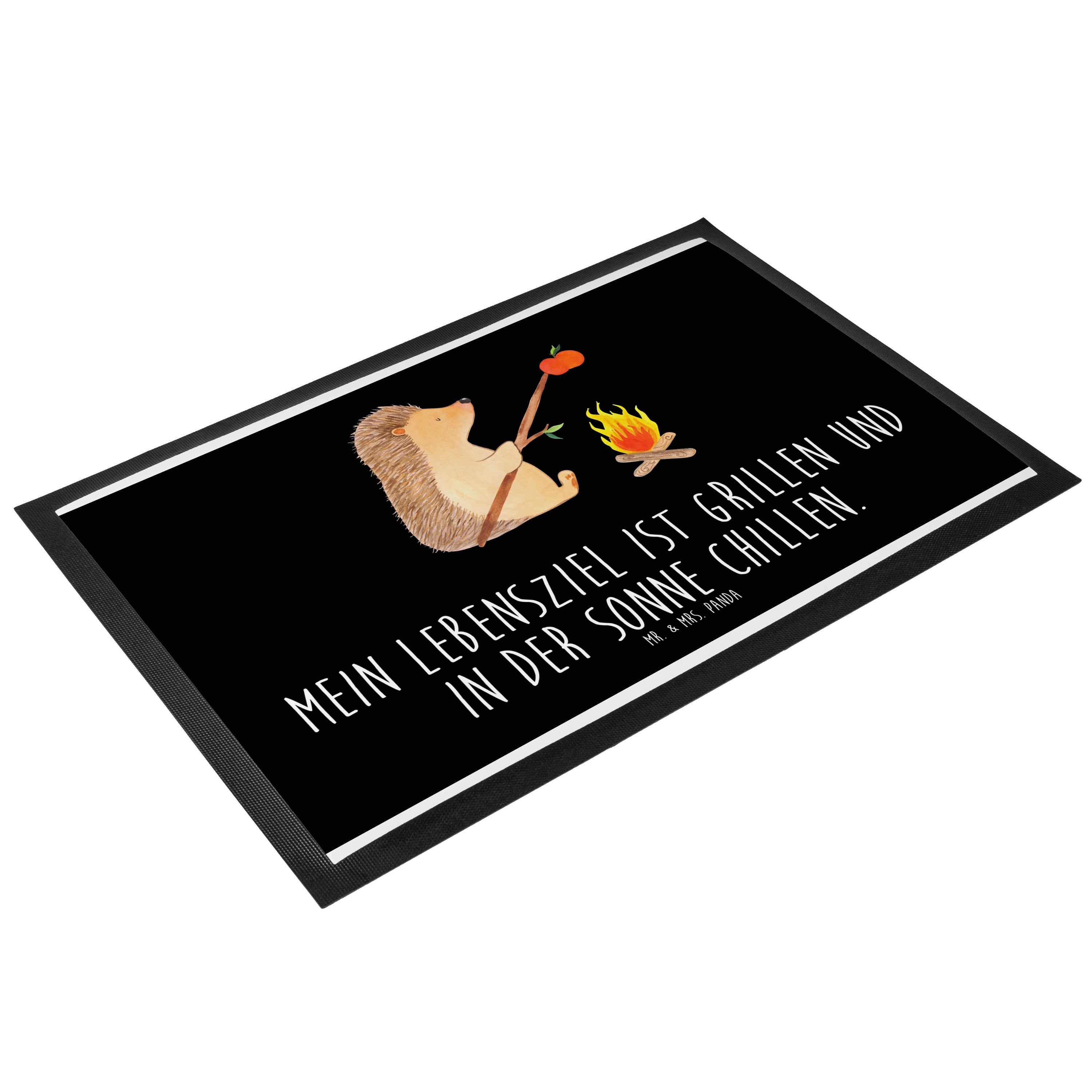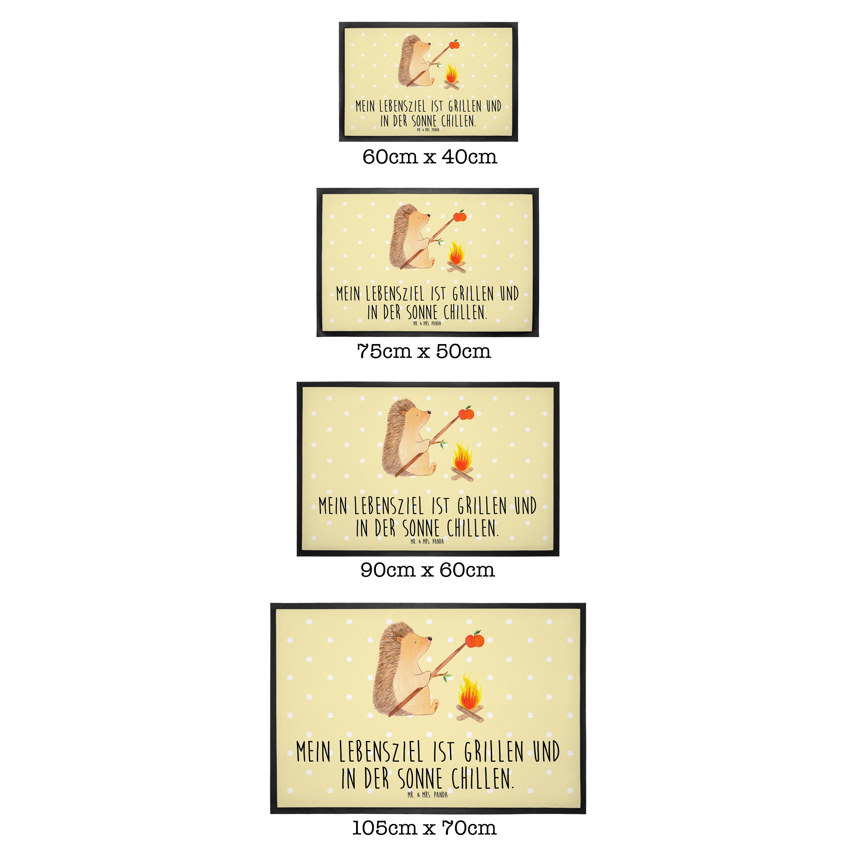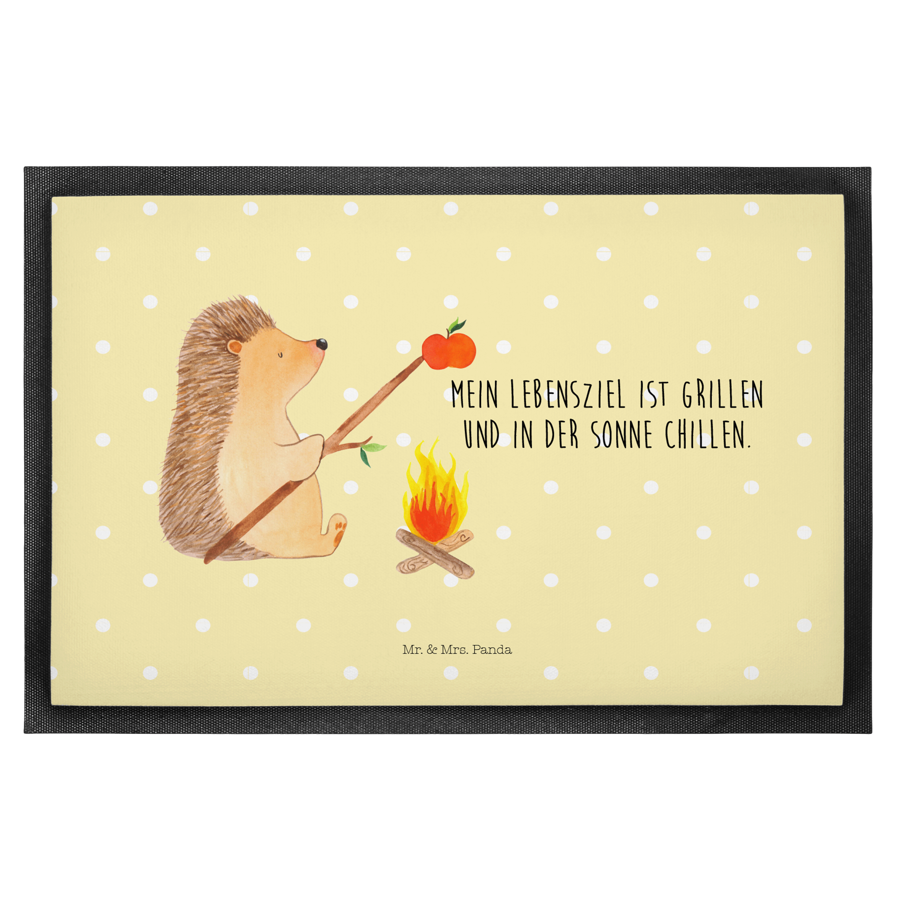 Fußmatte Igel grillt - 60 x 90 cm - mit Spruch - Gelb Pastell