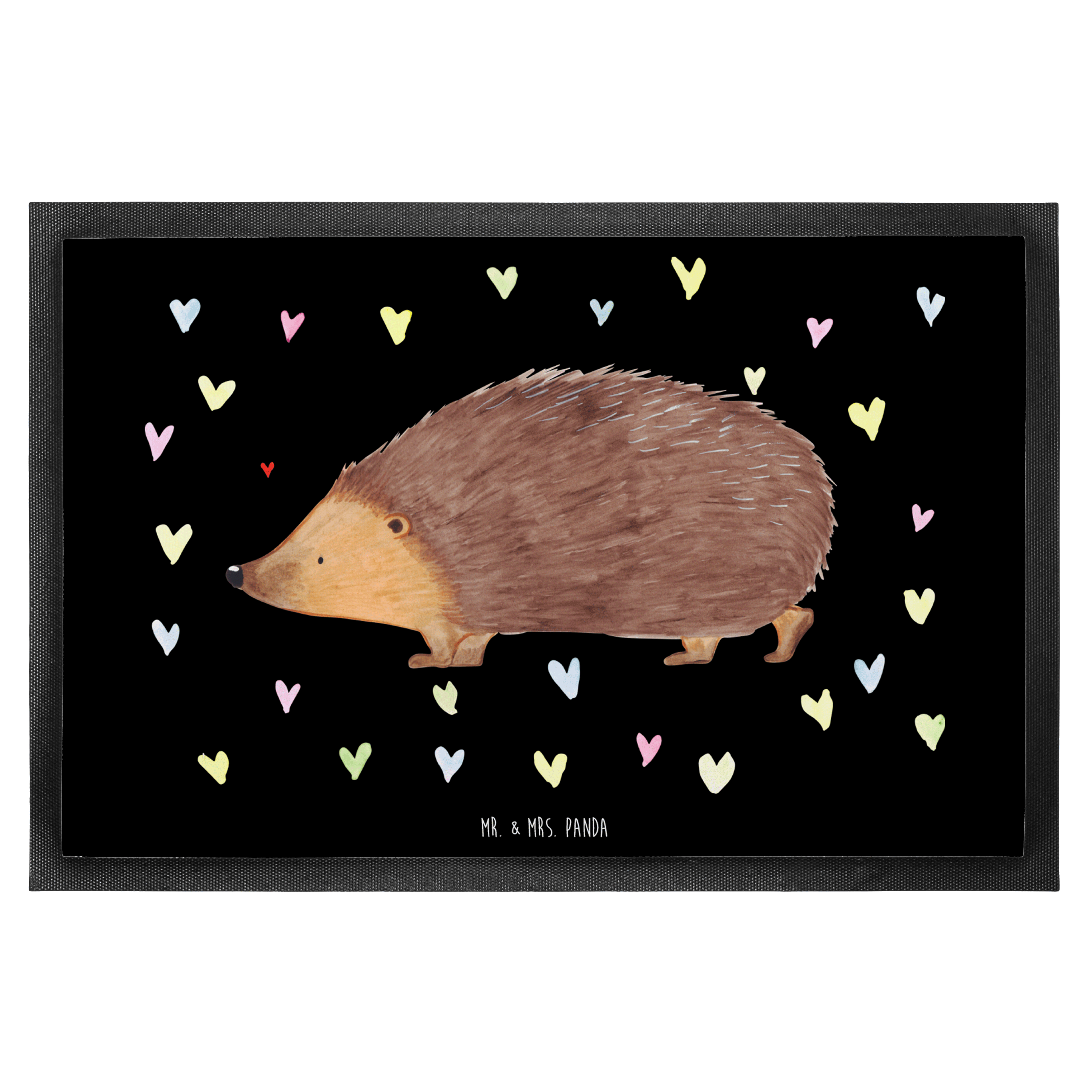 Fußmatte Igel Herzen - 60 x 90 cm - mit Spruch - Schwarz