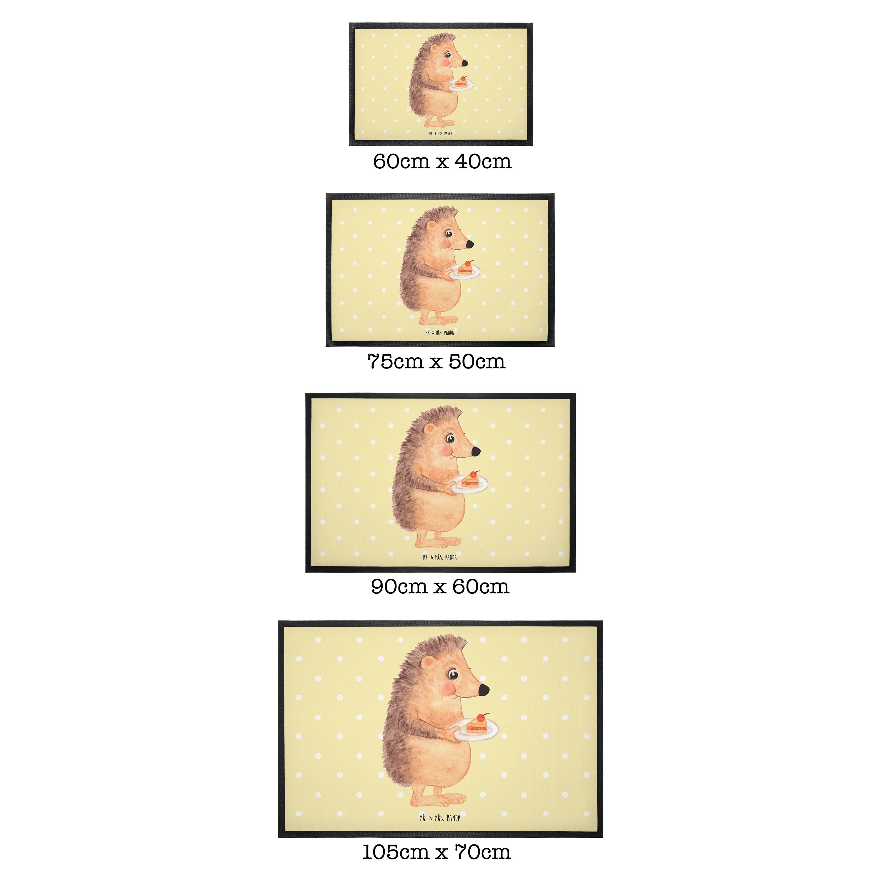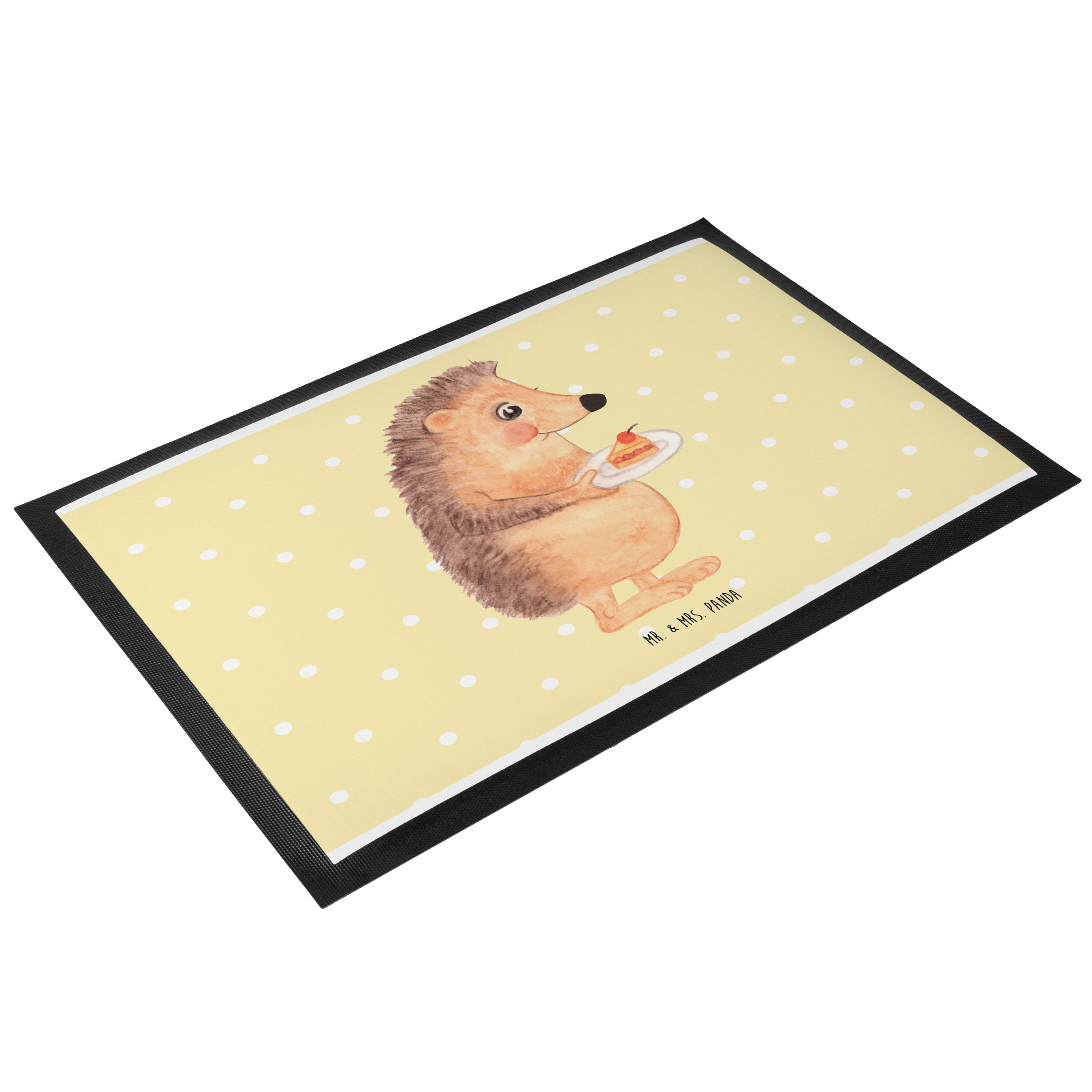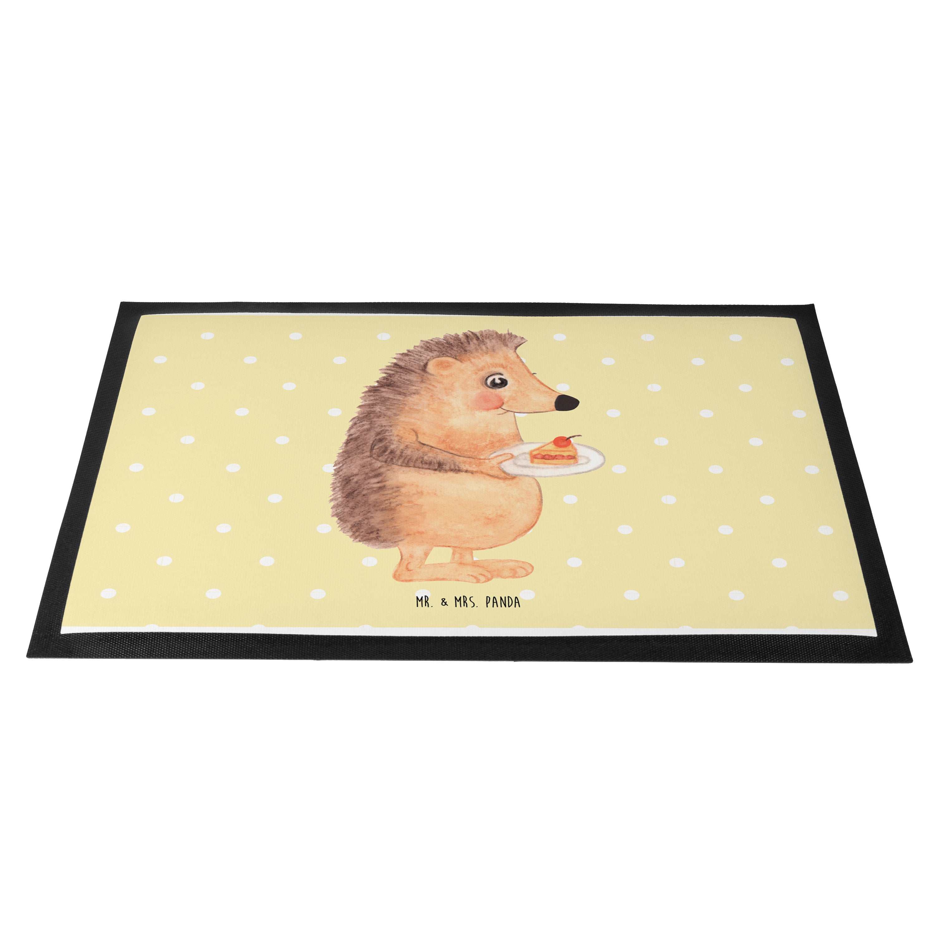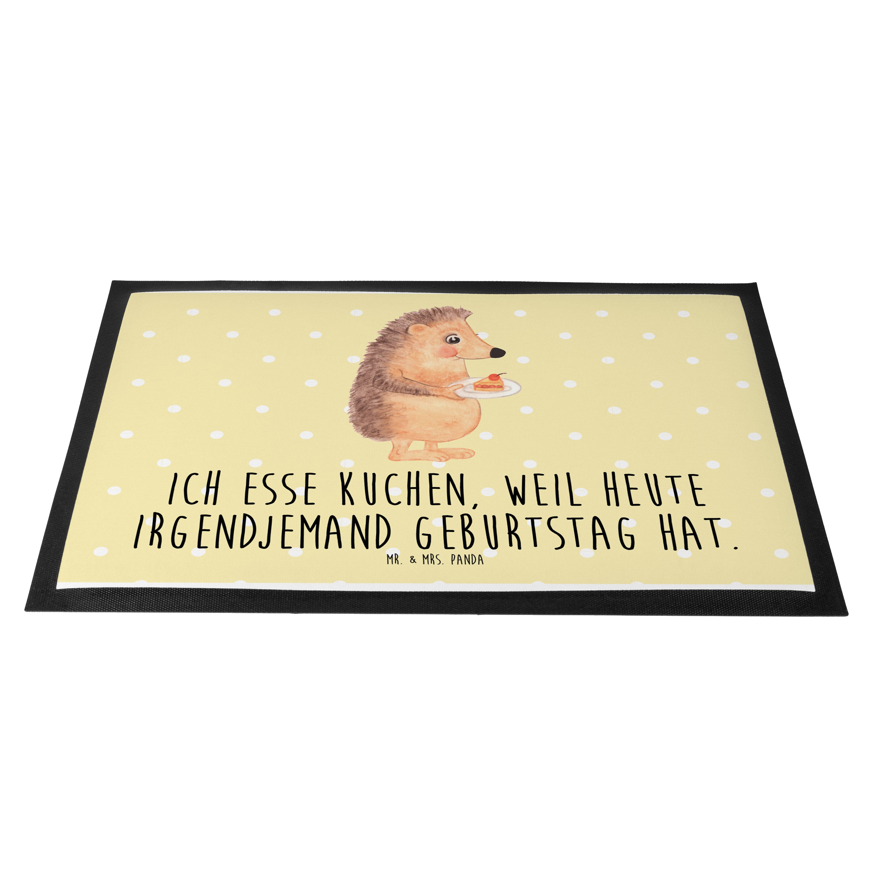 Fußmatte Igel mit Kuchenstück - 60 x 90 cm - mit Spruch - Gelb Pastell