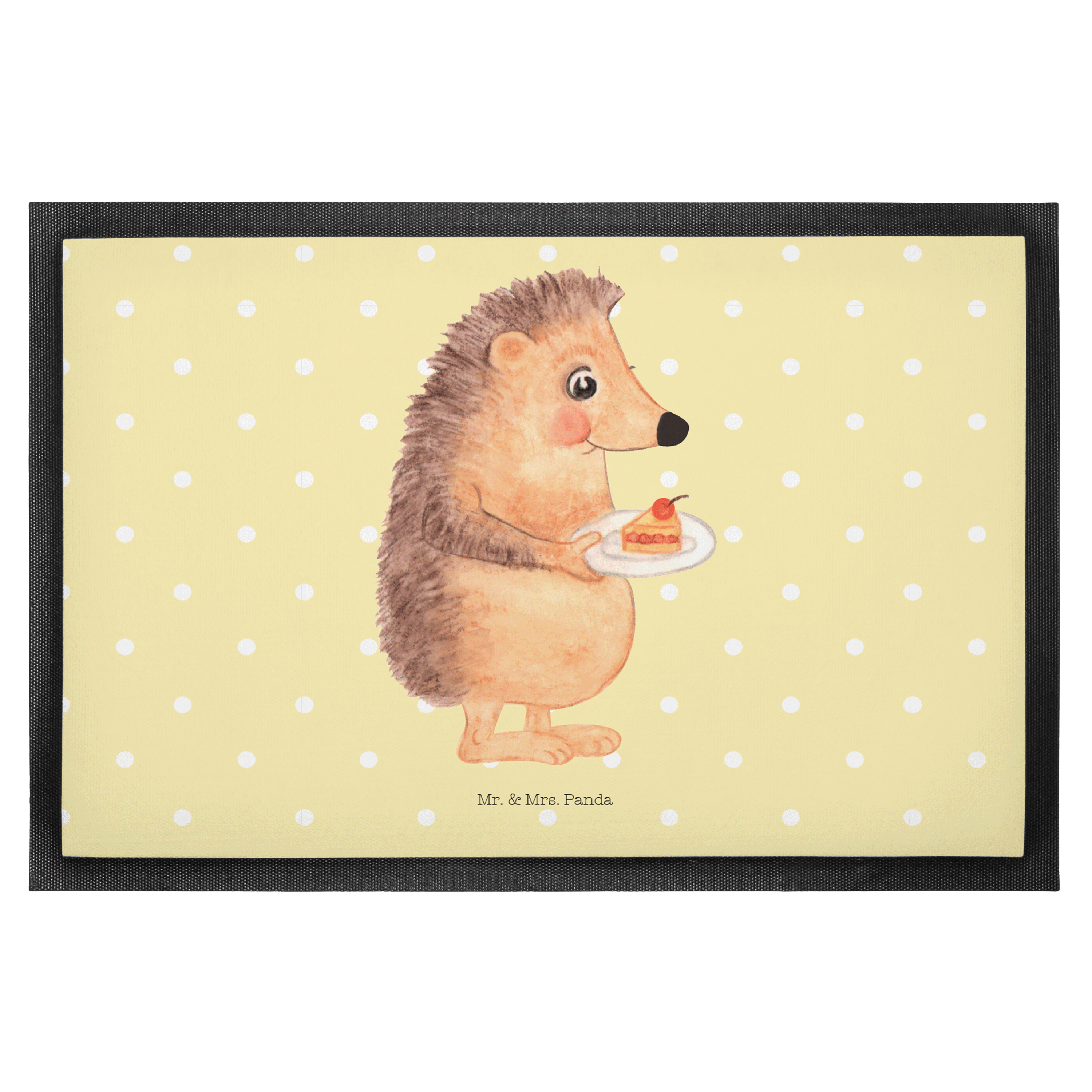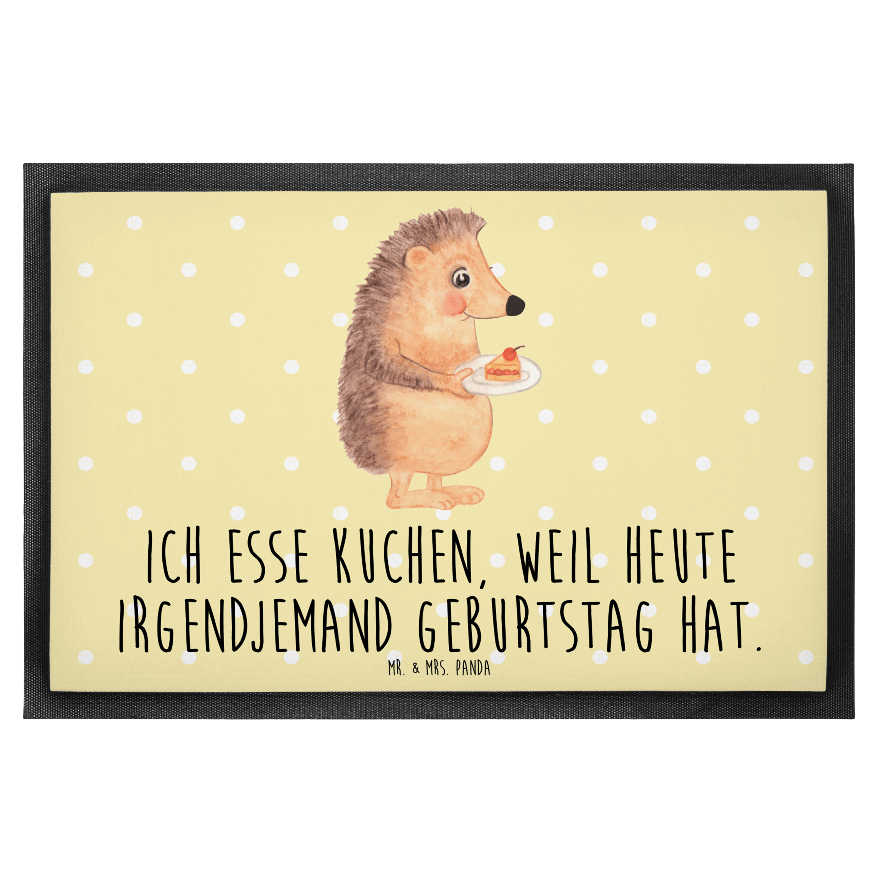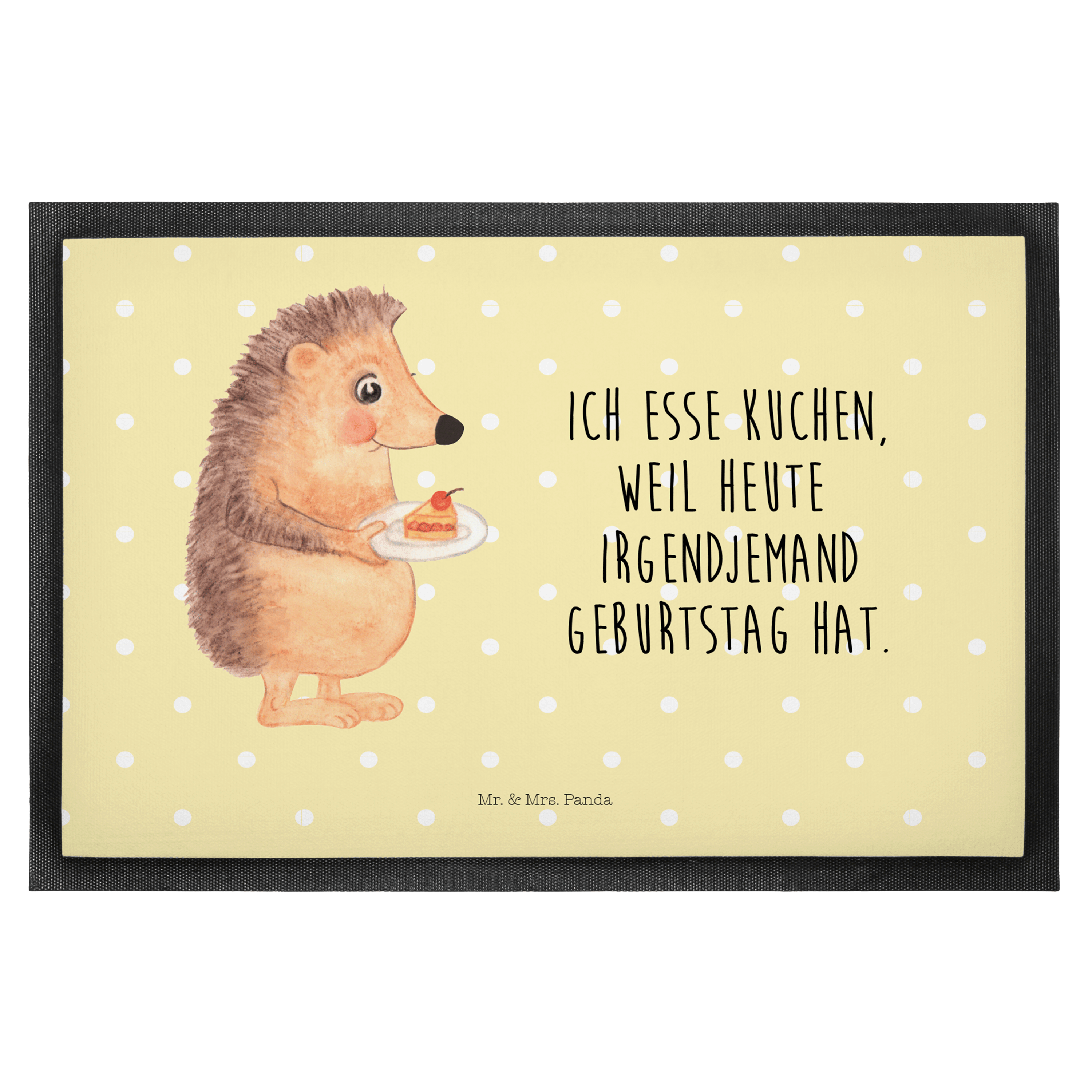Fußmatte Igel mit Kuchenstück - 60 x 90 cm - mit Spruch - Gelb Pastell