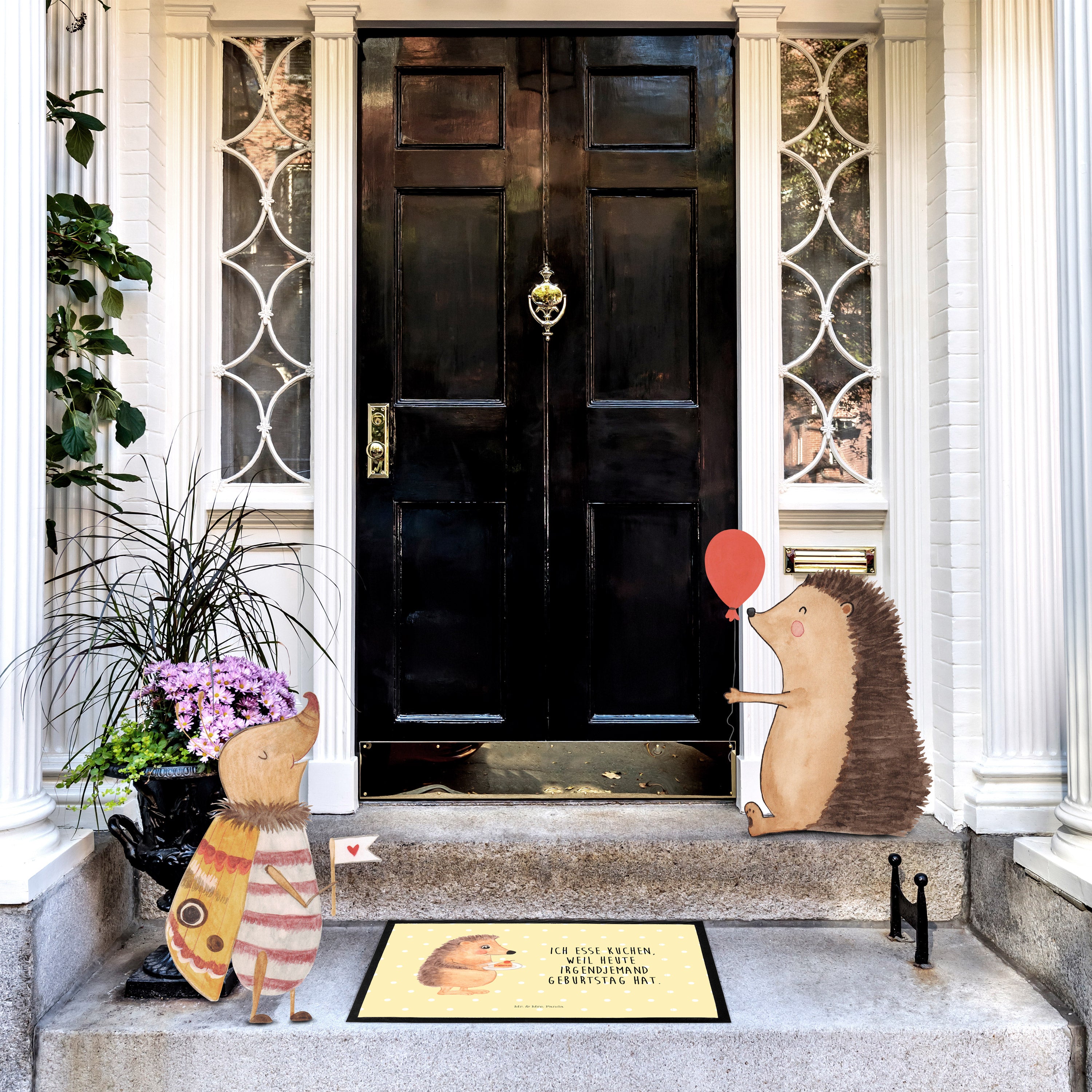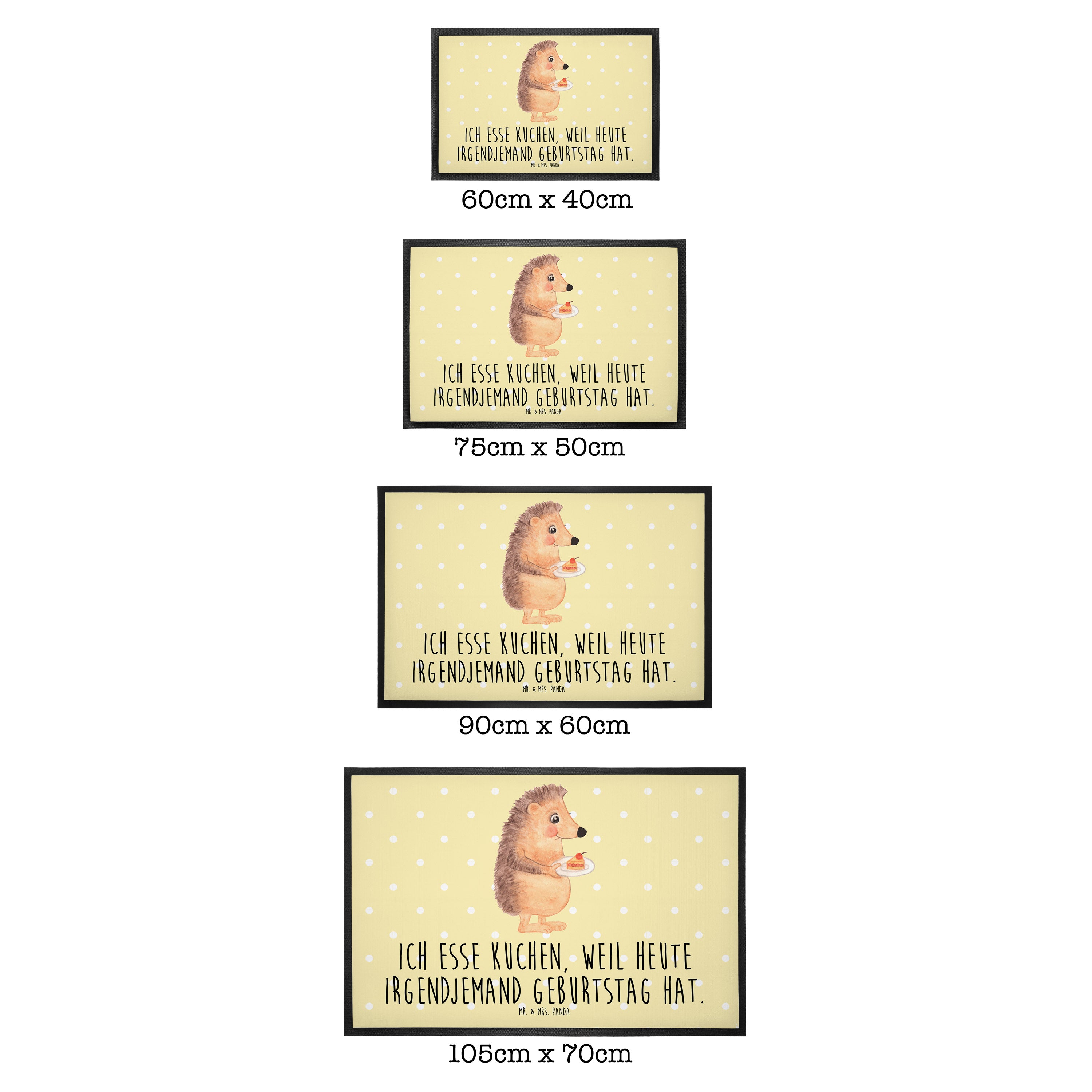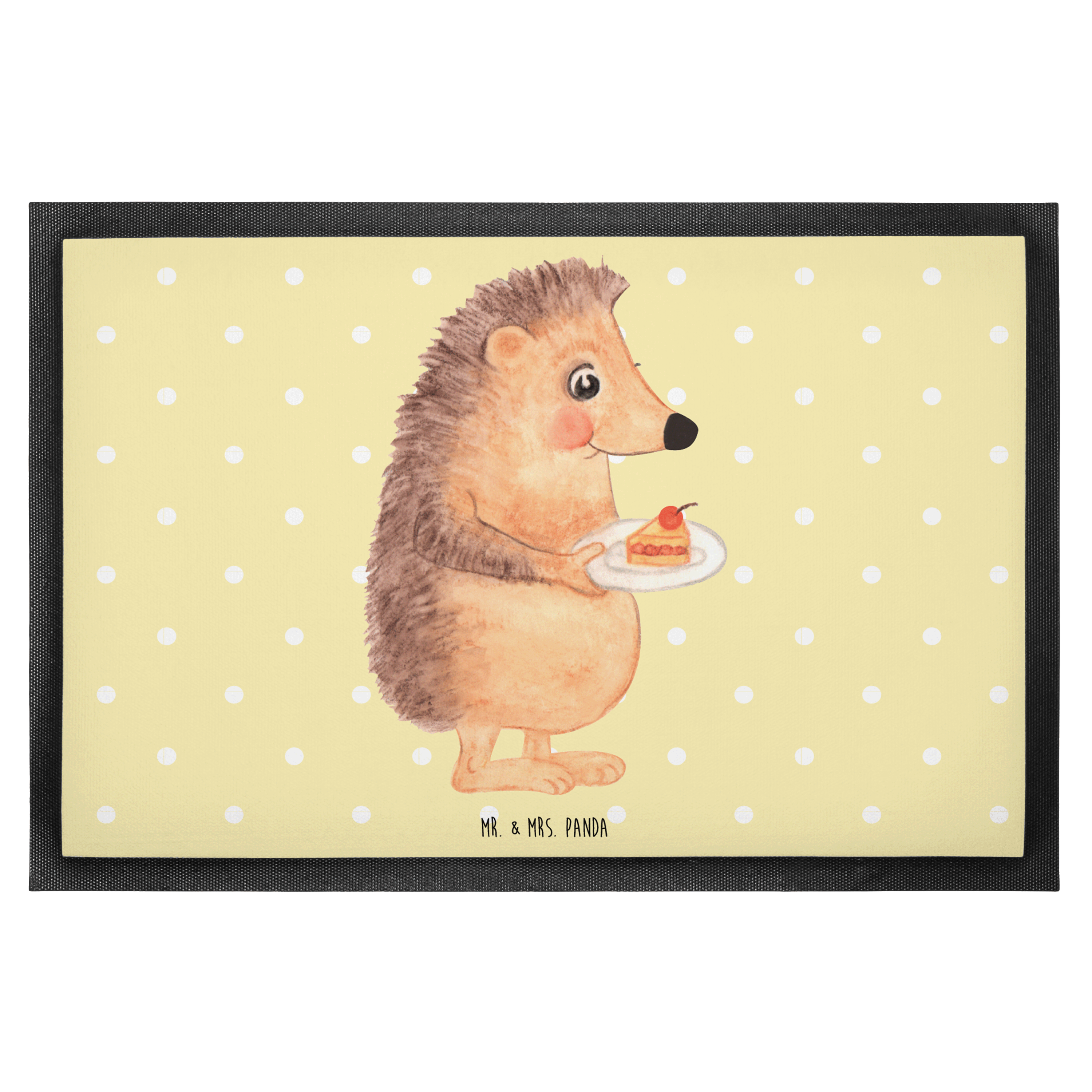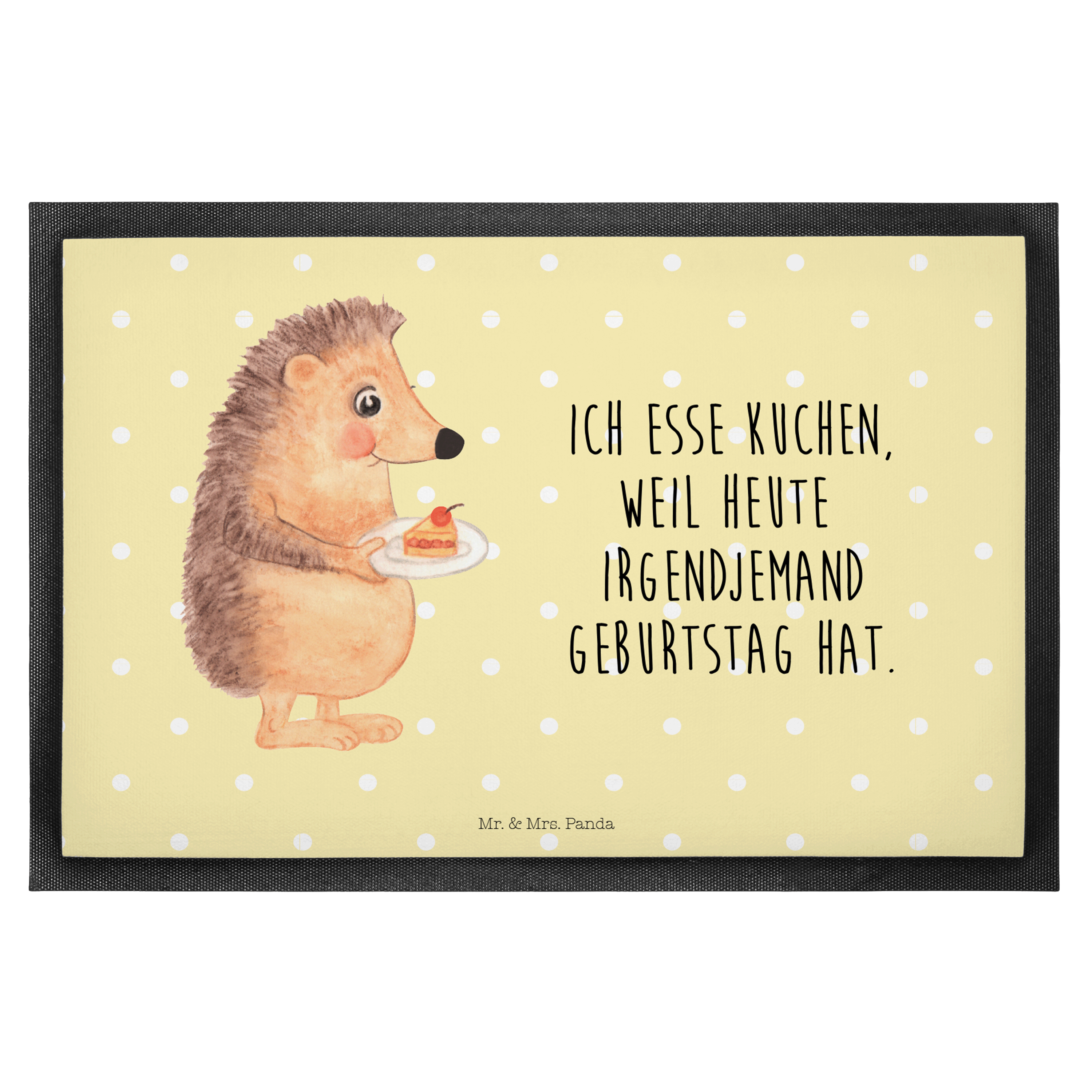Fußmatte Igel mit Kuchenstück - 60 x 90 cm - mit Spruch - Gelb Pastell