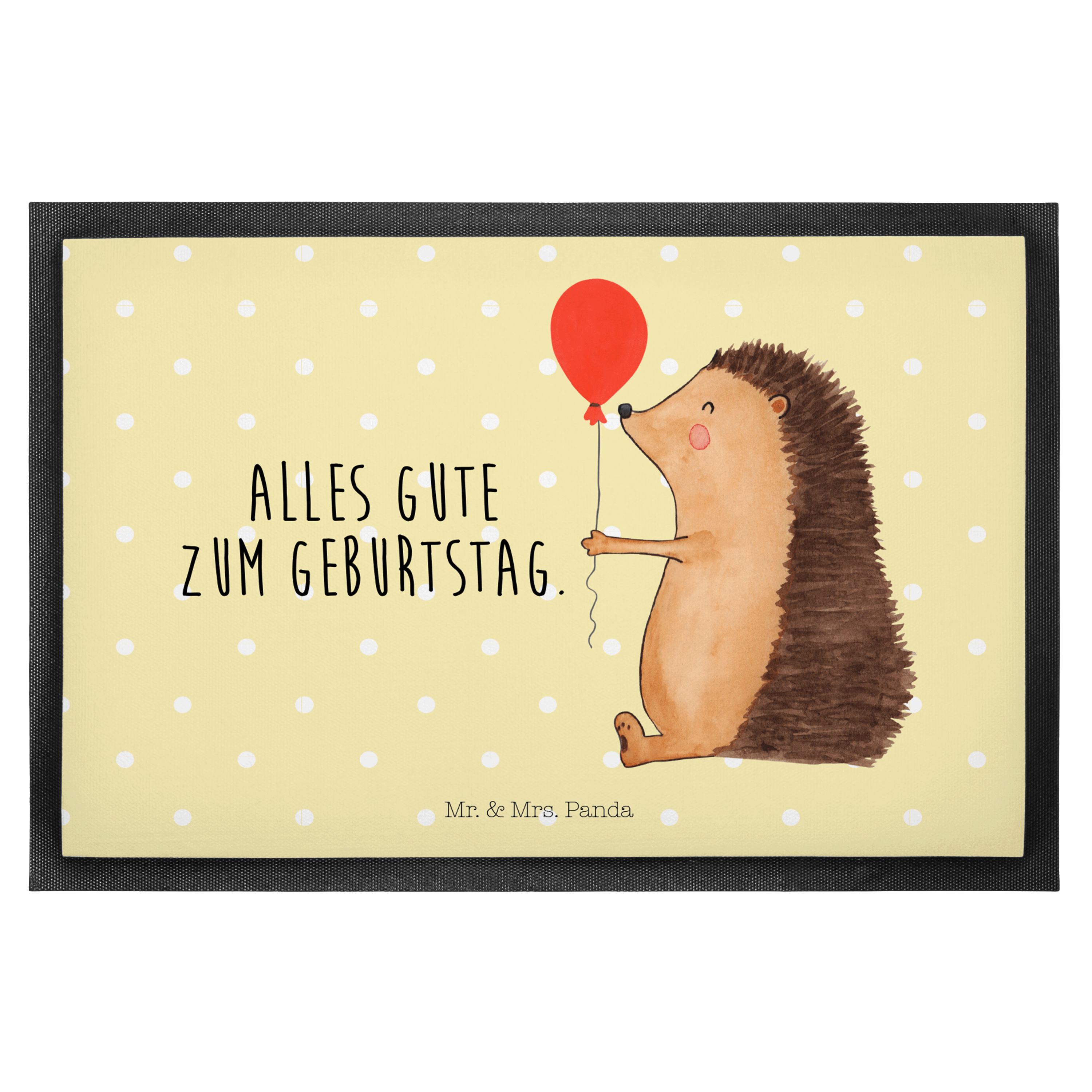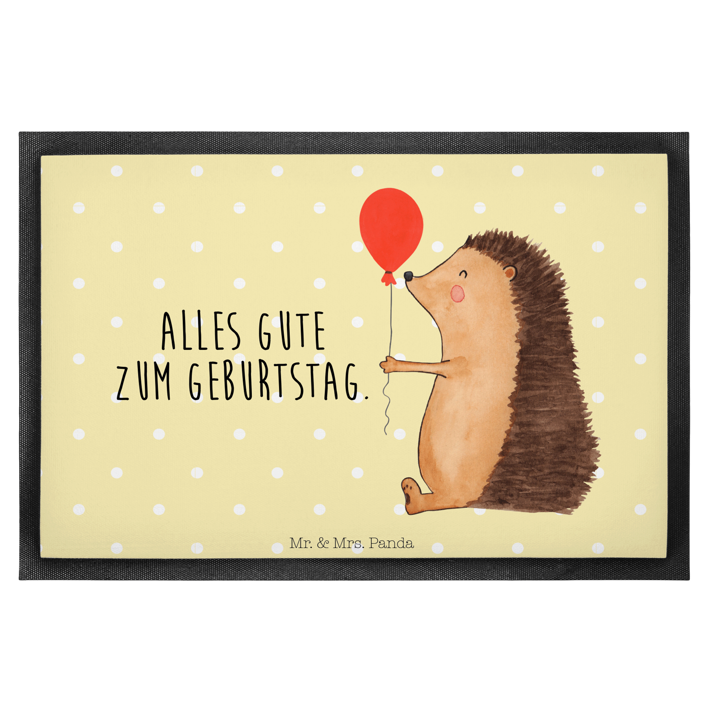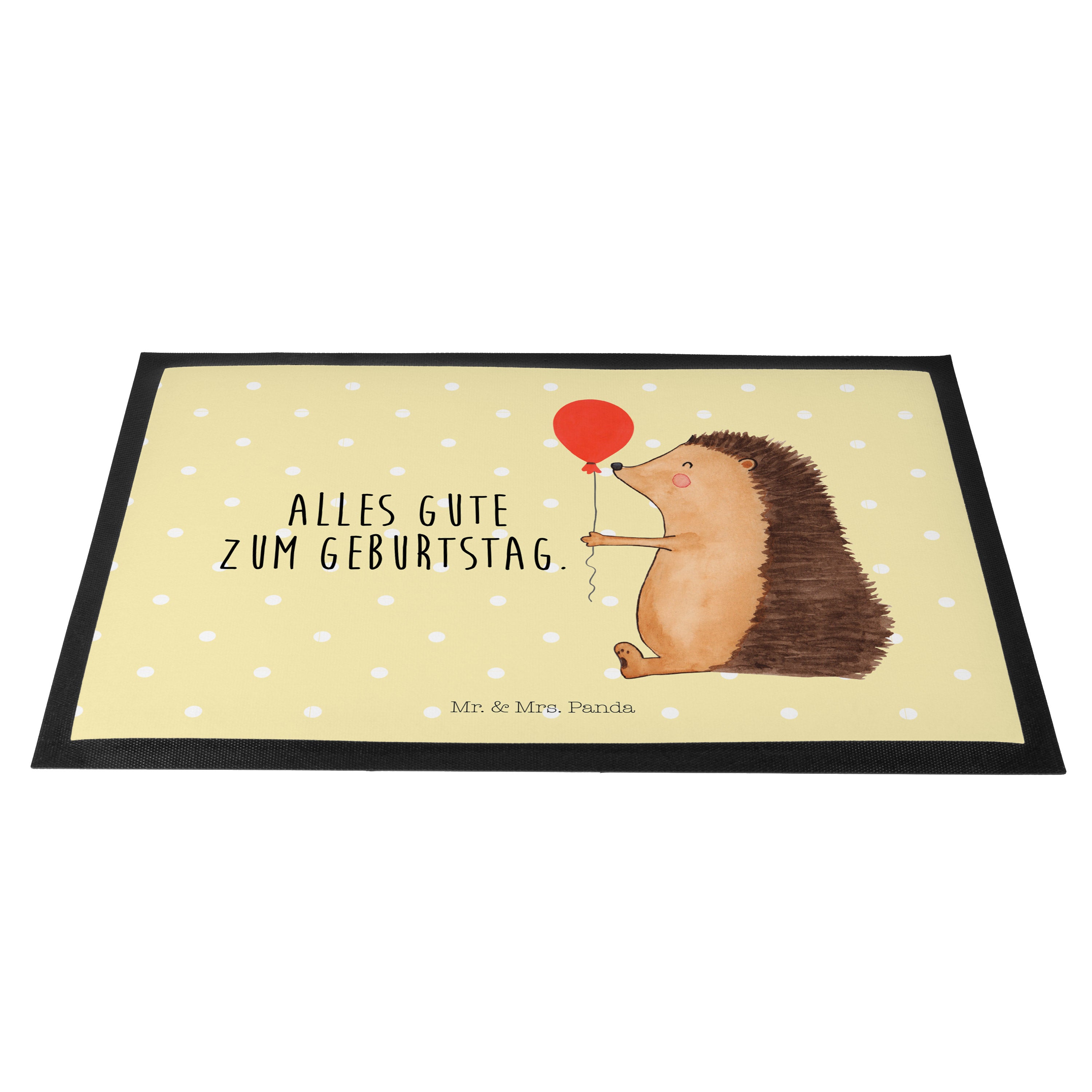 Fußmatte Igel mit Luftballon - 60 x 90 cm - mit Spruch - Gelb Pastell