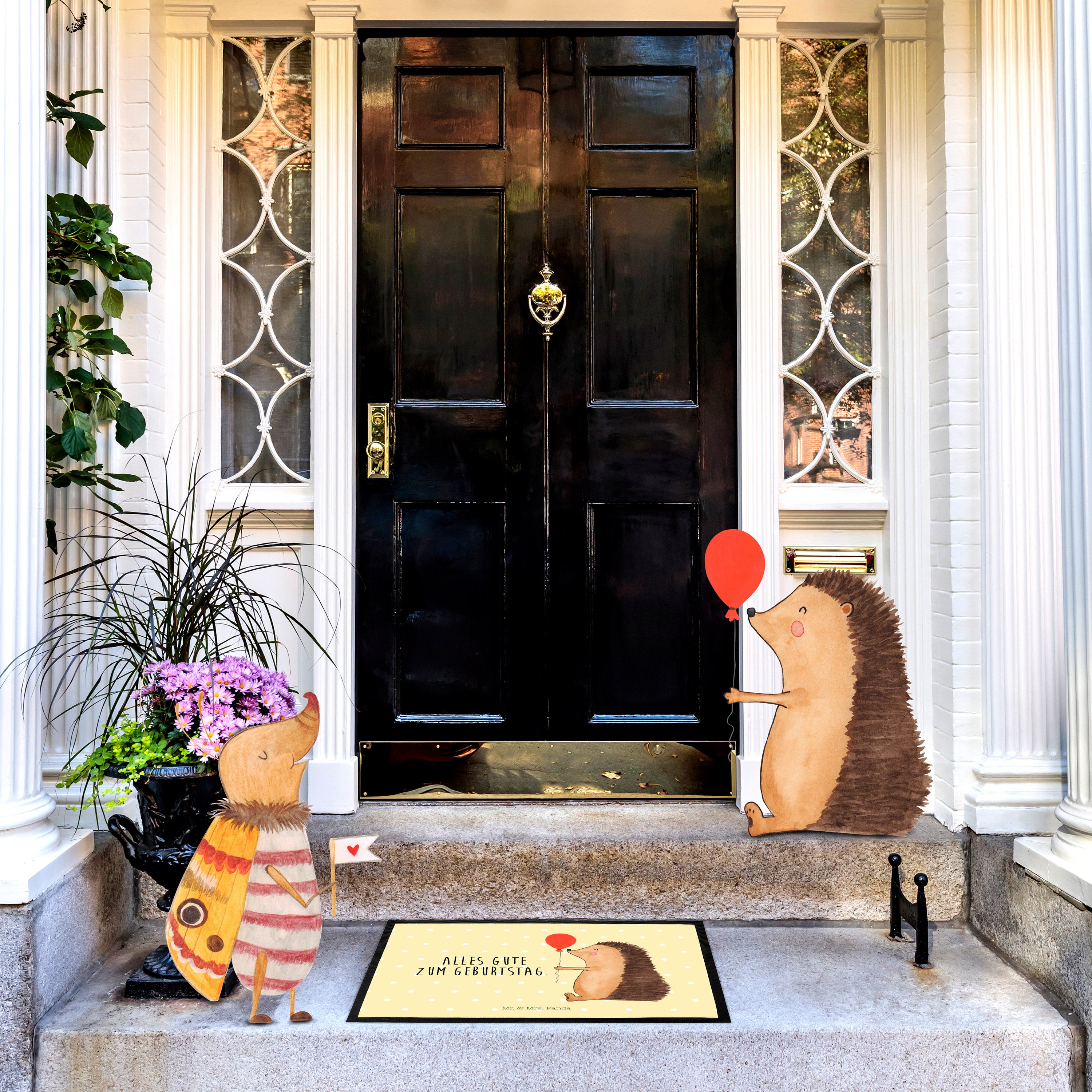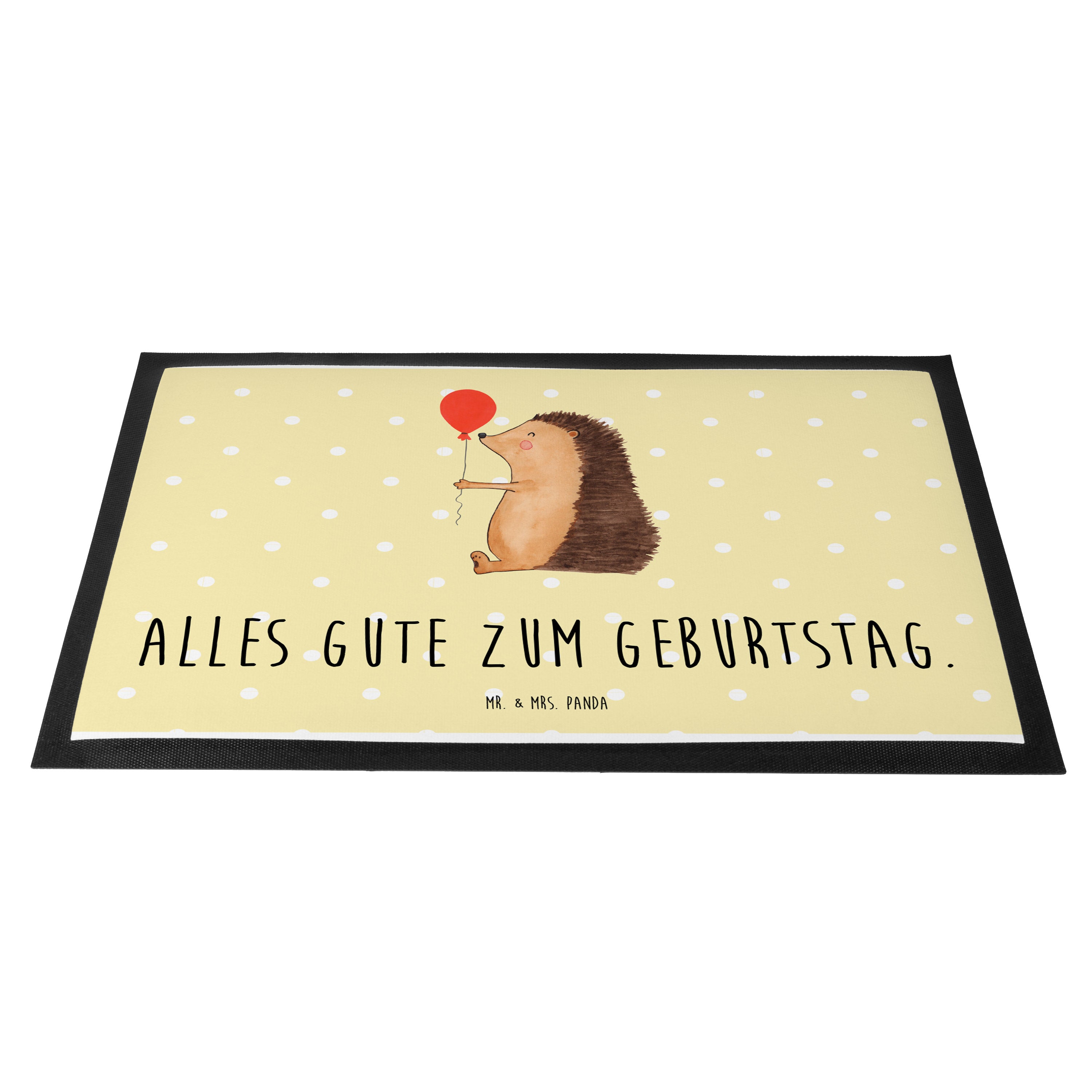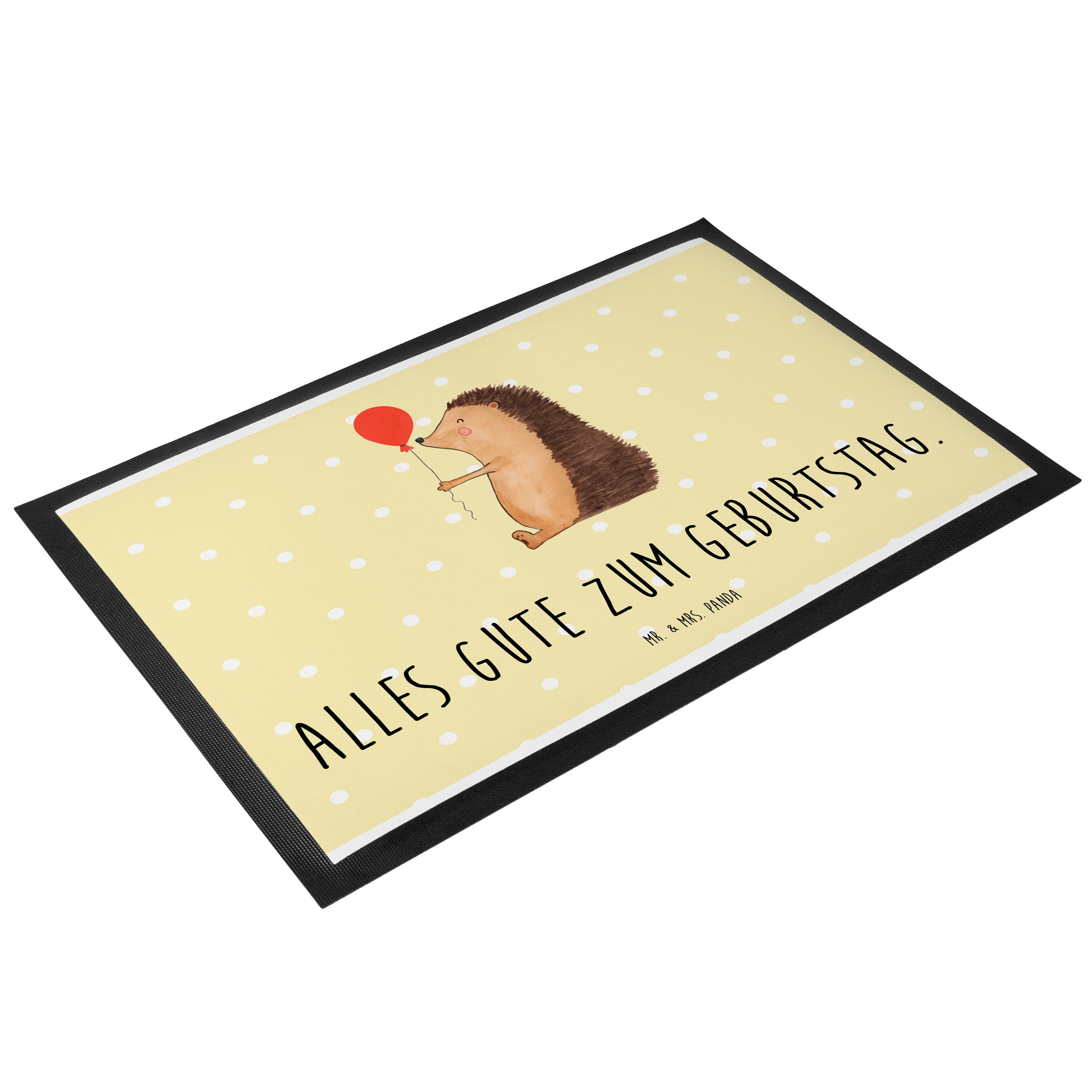 Fußmatte Igel mit Luftballon - 60 x 90 cm - mit Spruch - Gelb Pastell