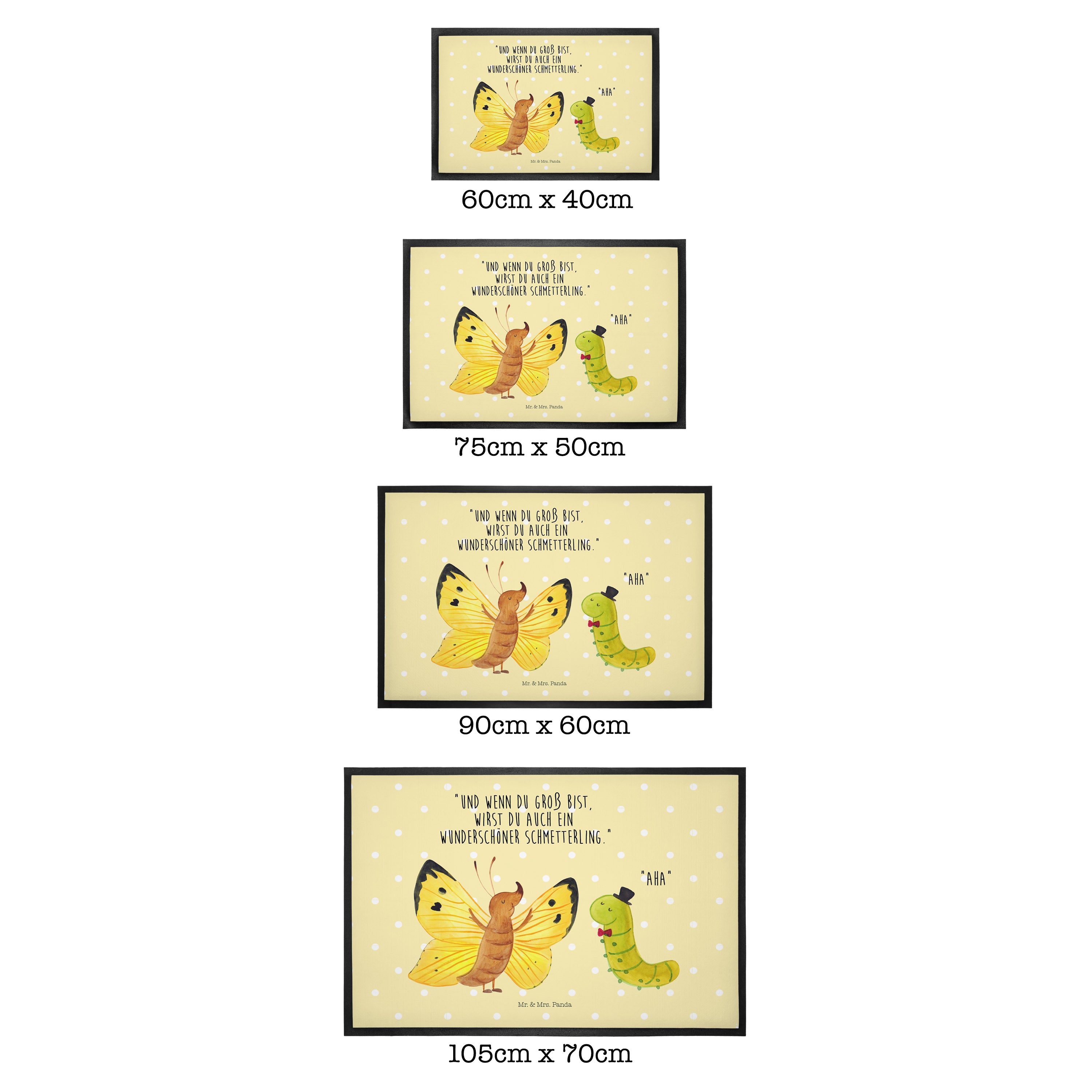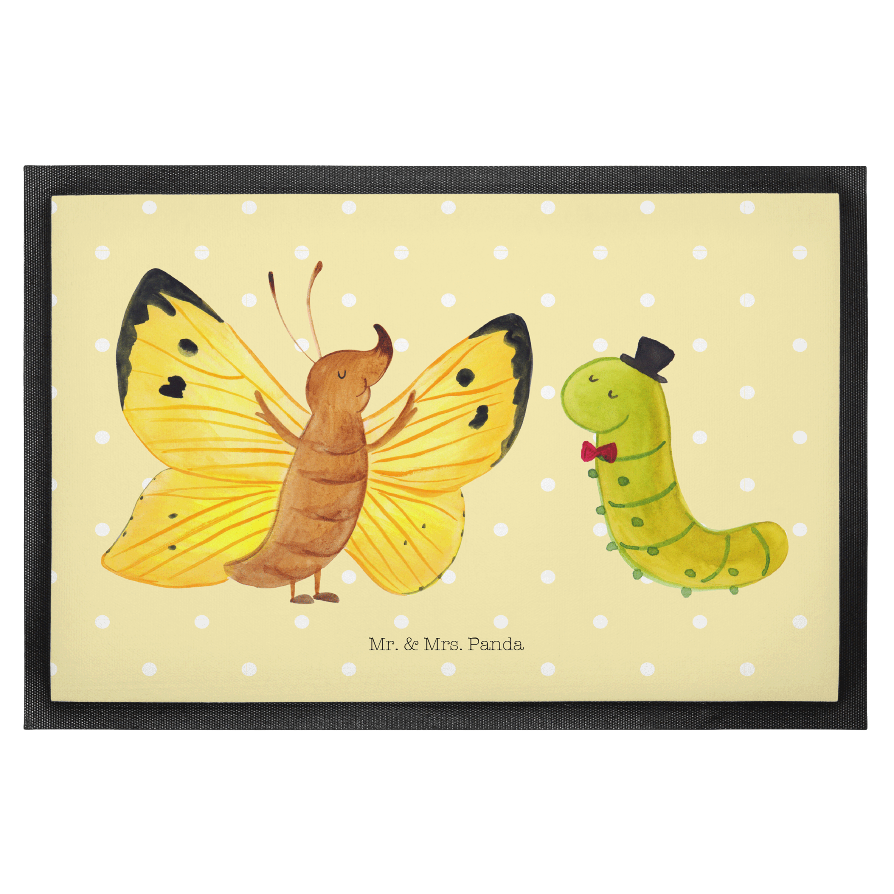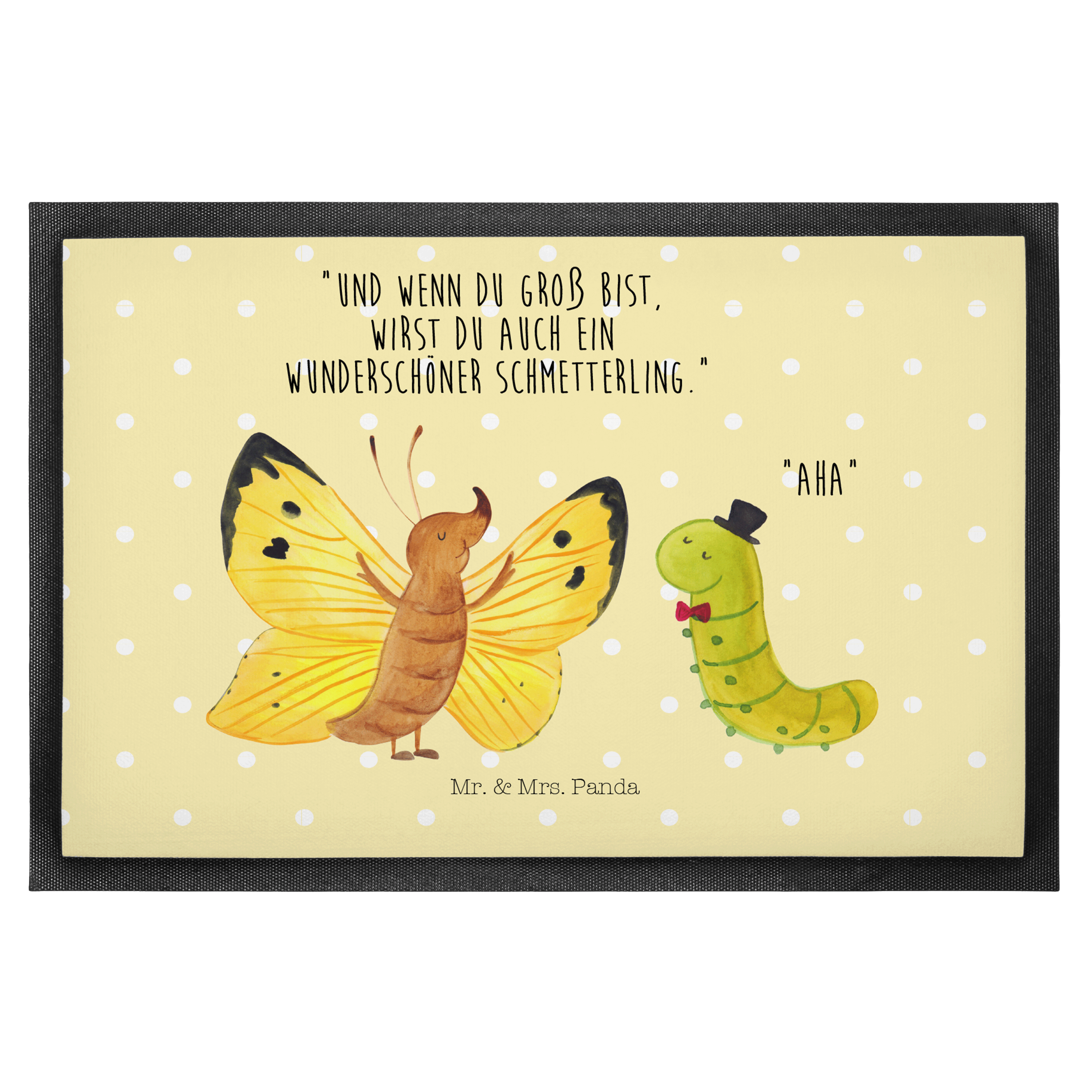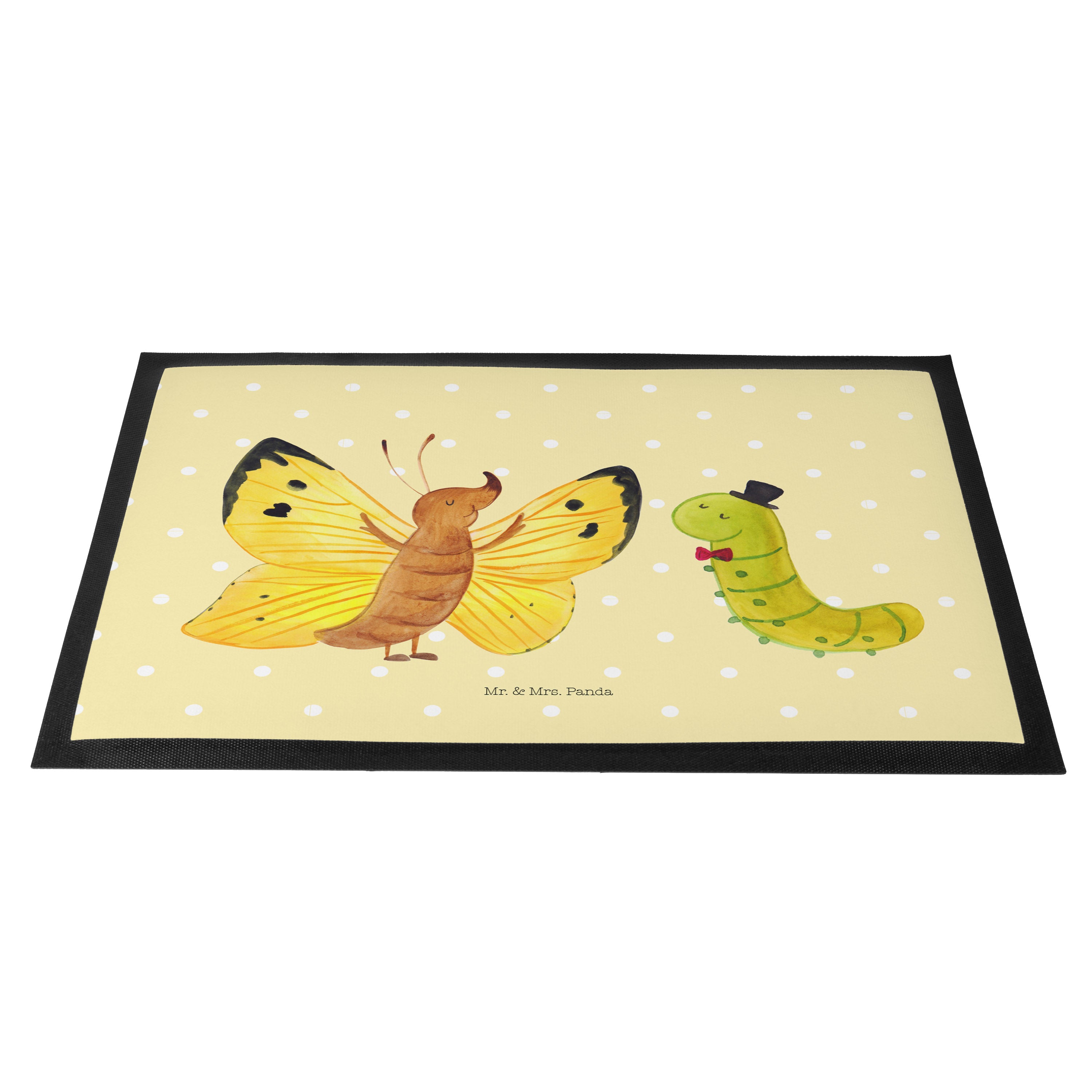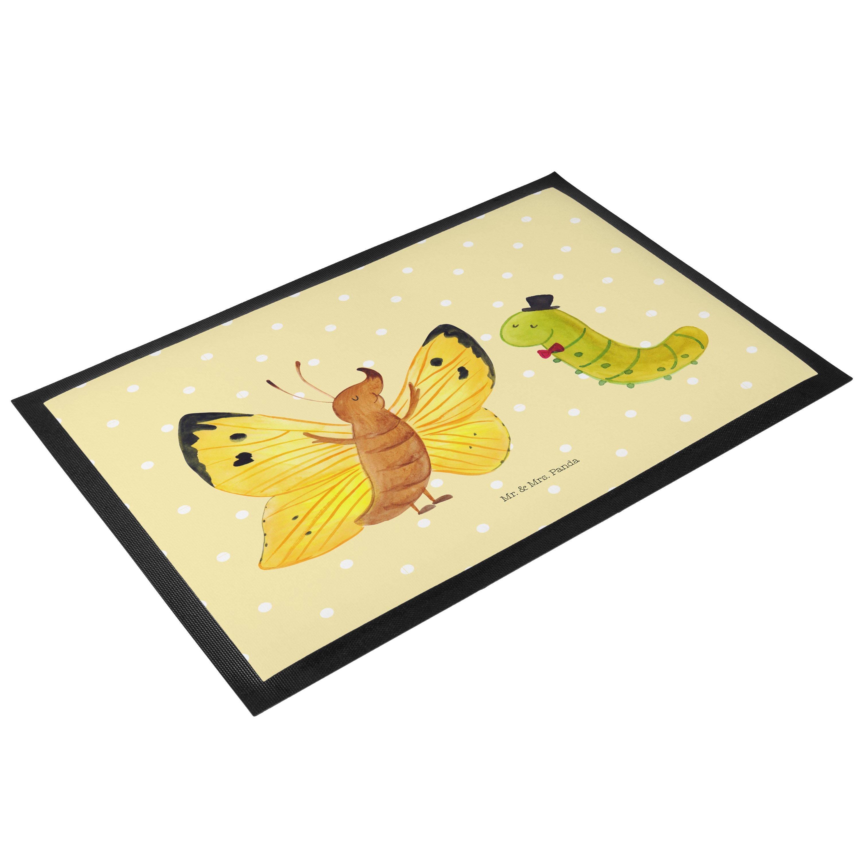 Fußmatte Raupe & Schmetterling - 60 x 90 cm - mit Spruch - Gelb Pastell