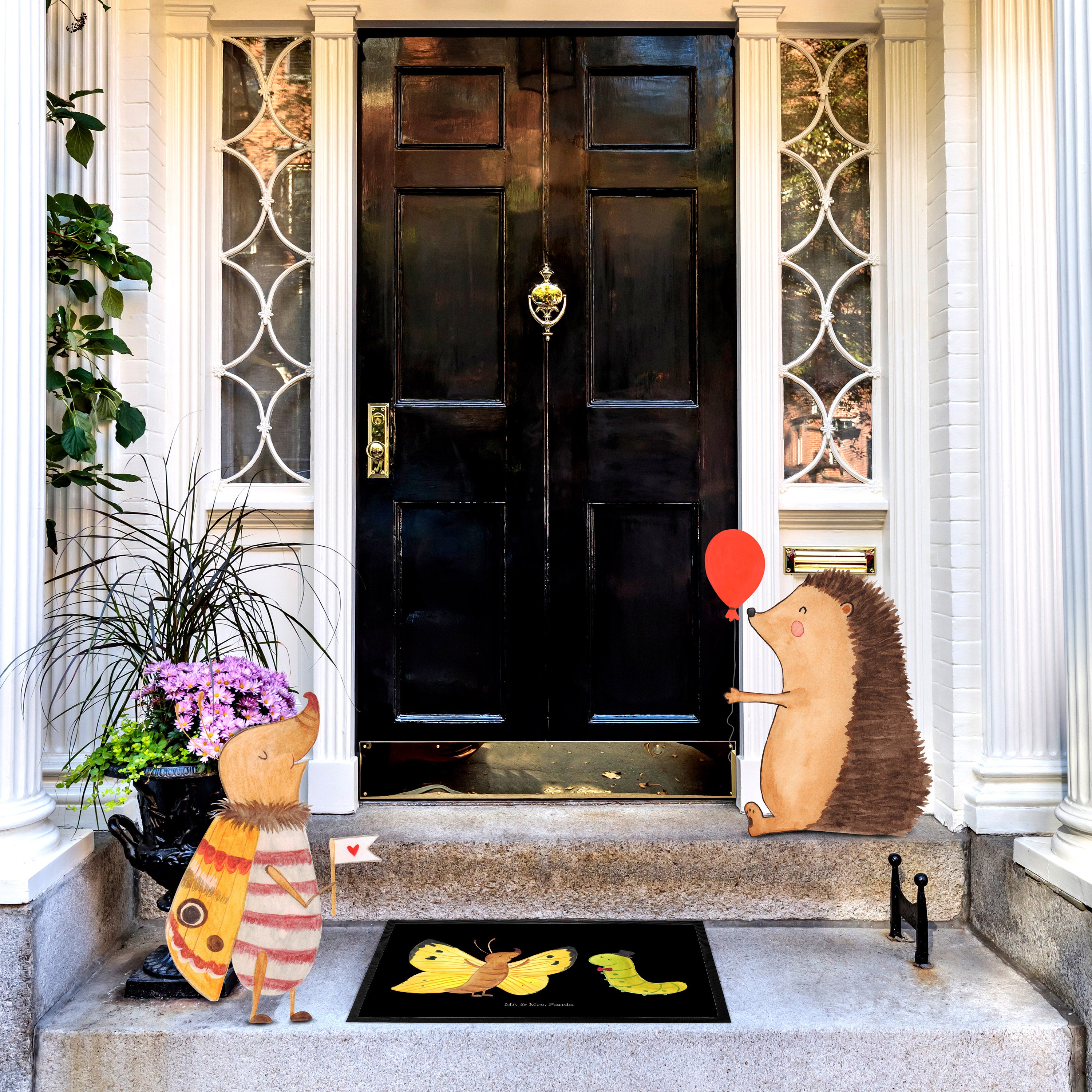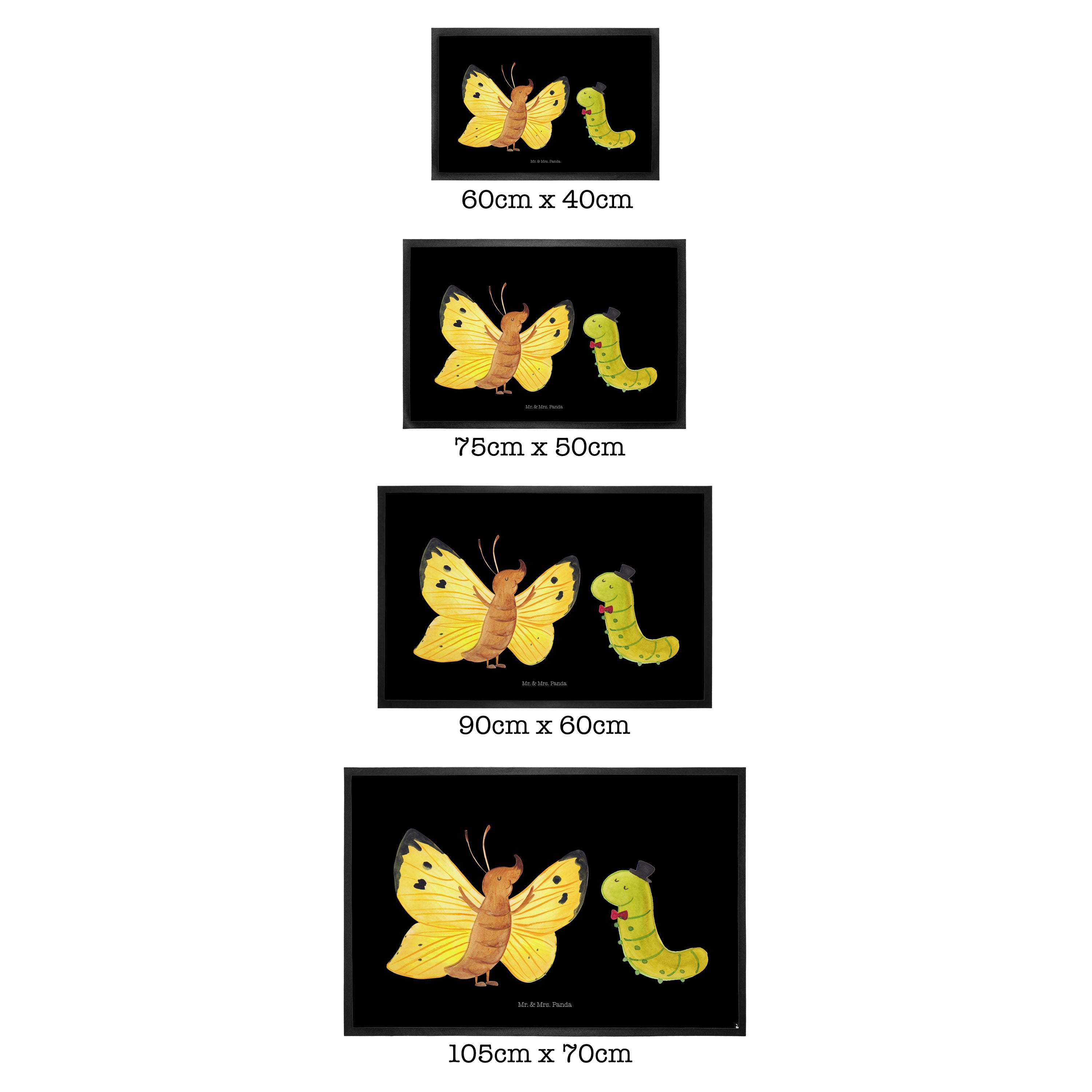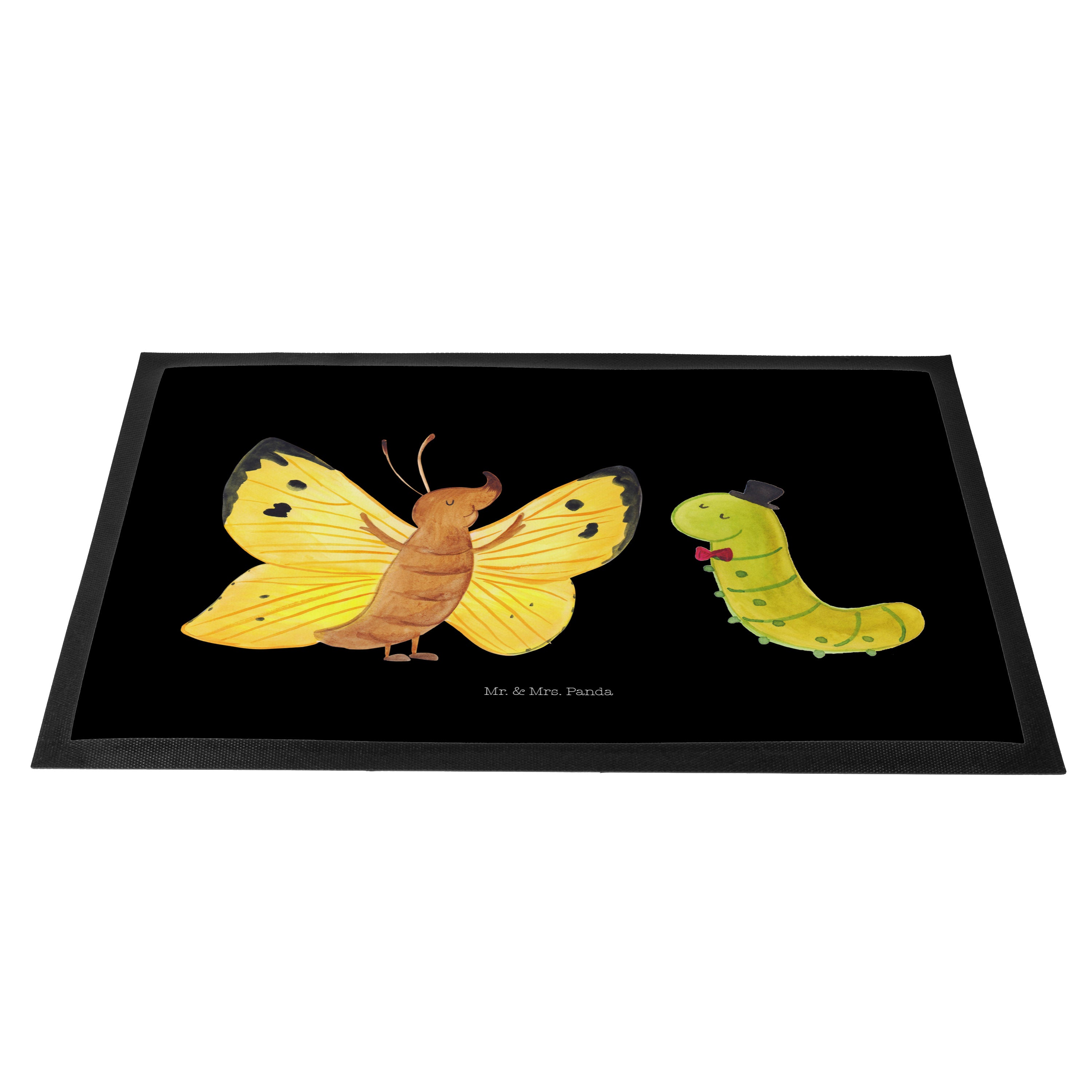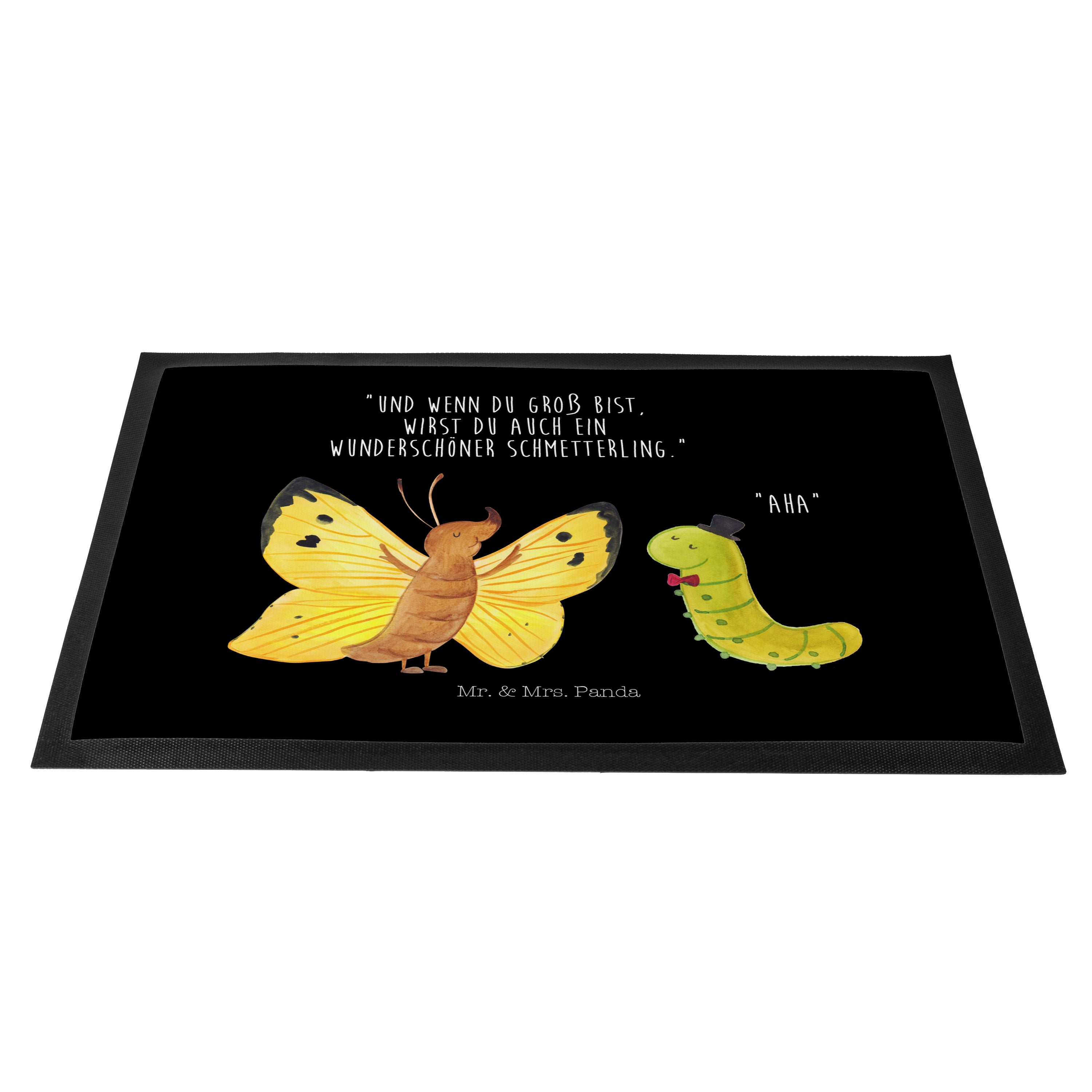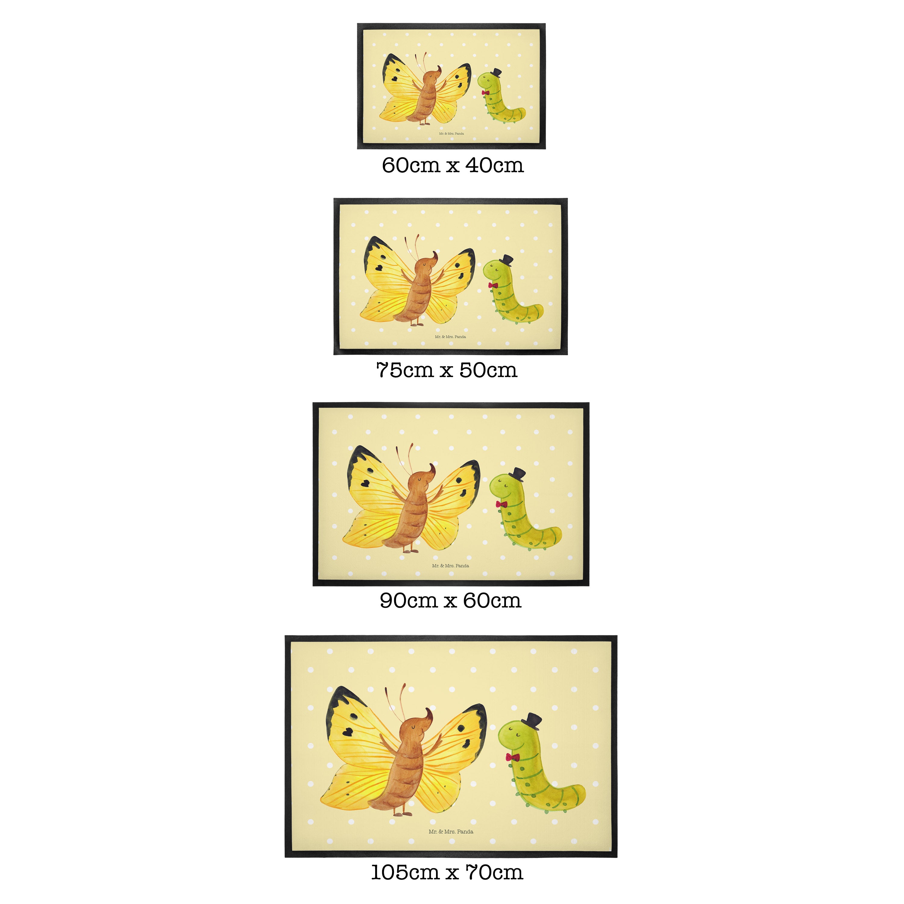 Fußmatte Raupe & Schmetterling - 60 x 90 cm - mit Spruch - Gelb Pastell