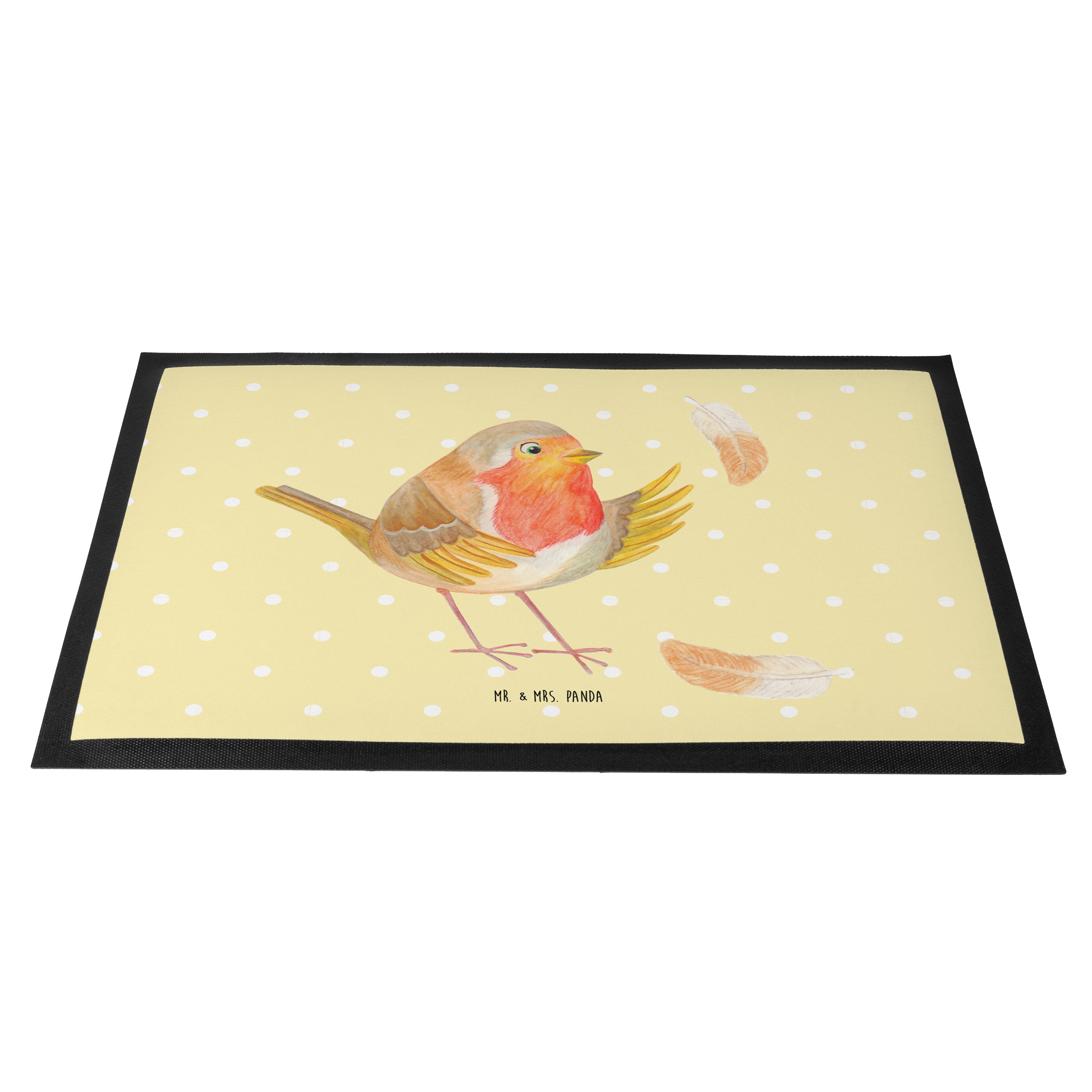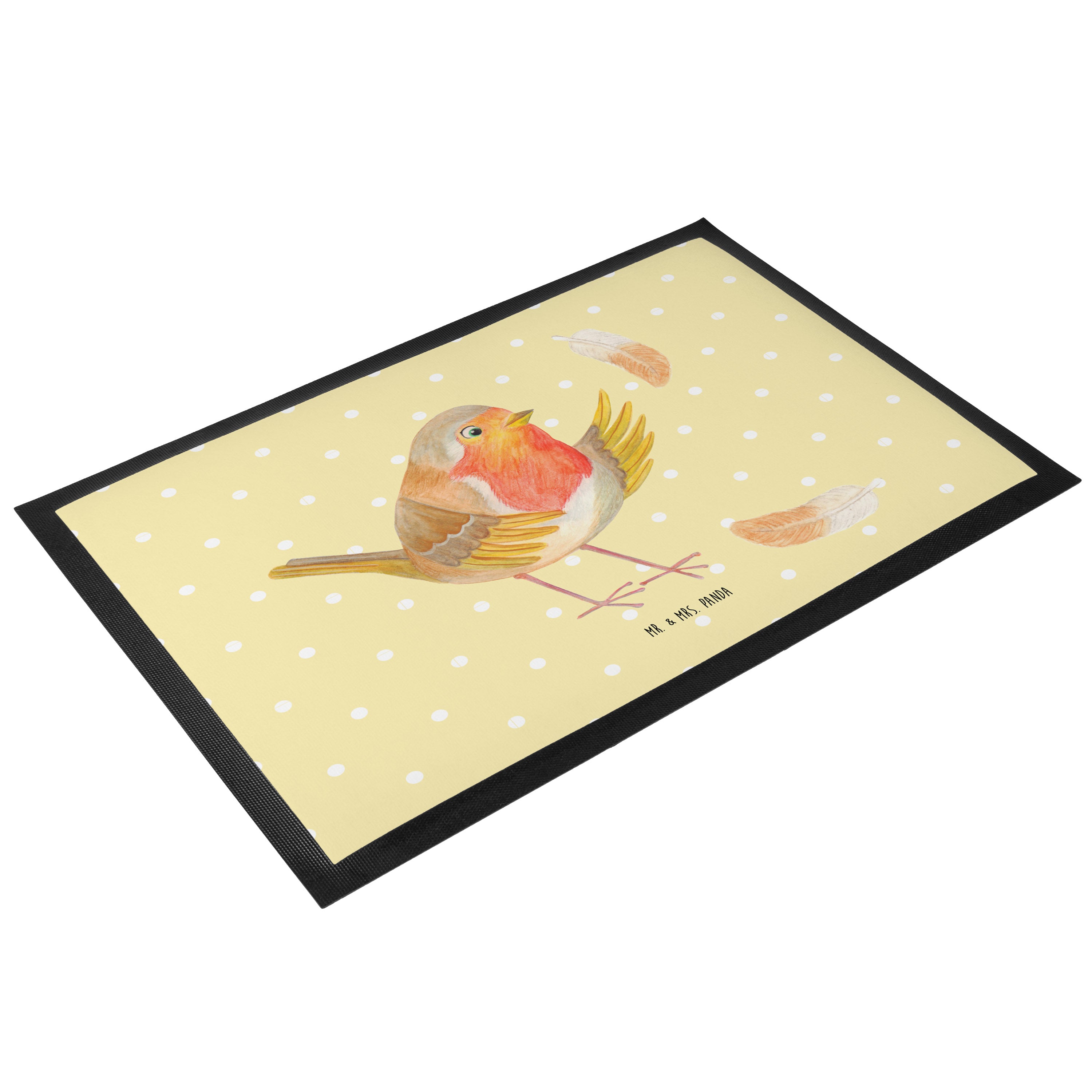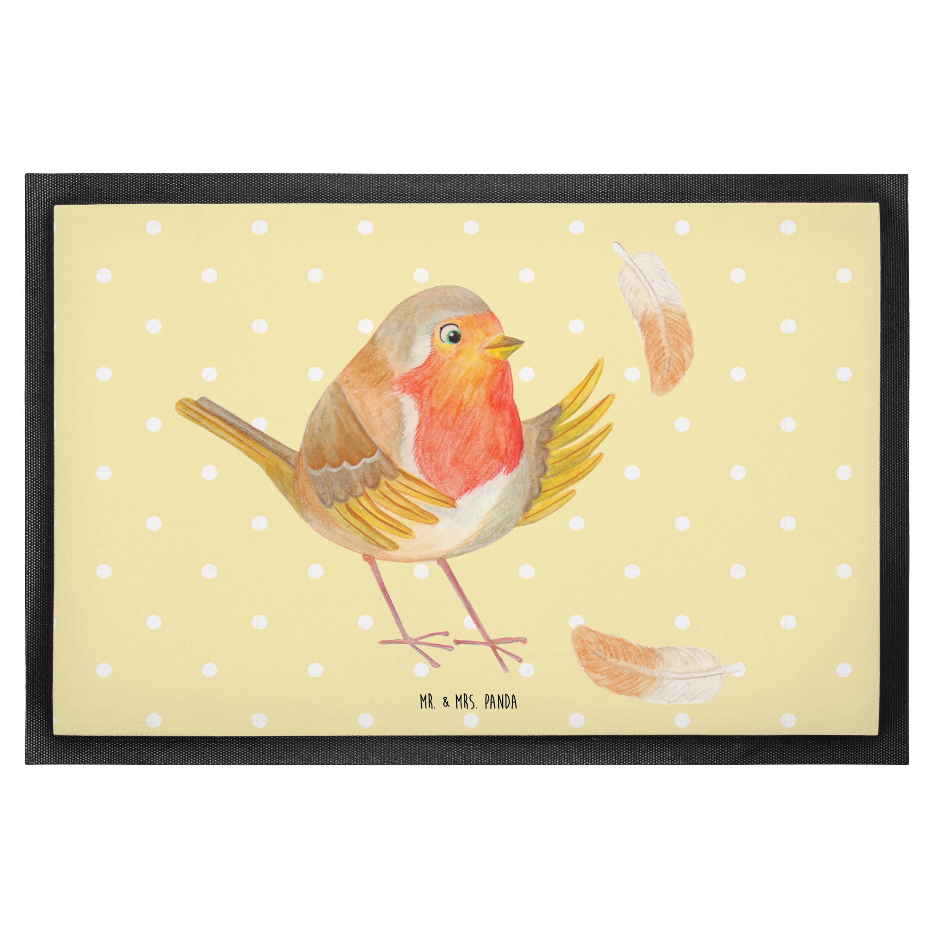 Fußmatte Rotkehlchen mit Federn - 60 x 90 cm - mit Spruch - Gelb Pastell