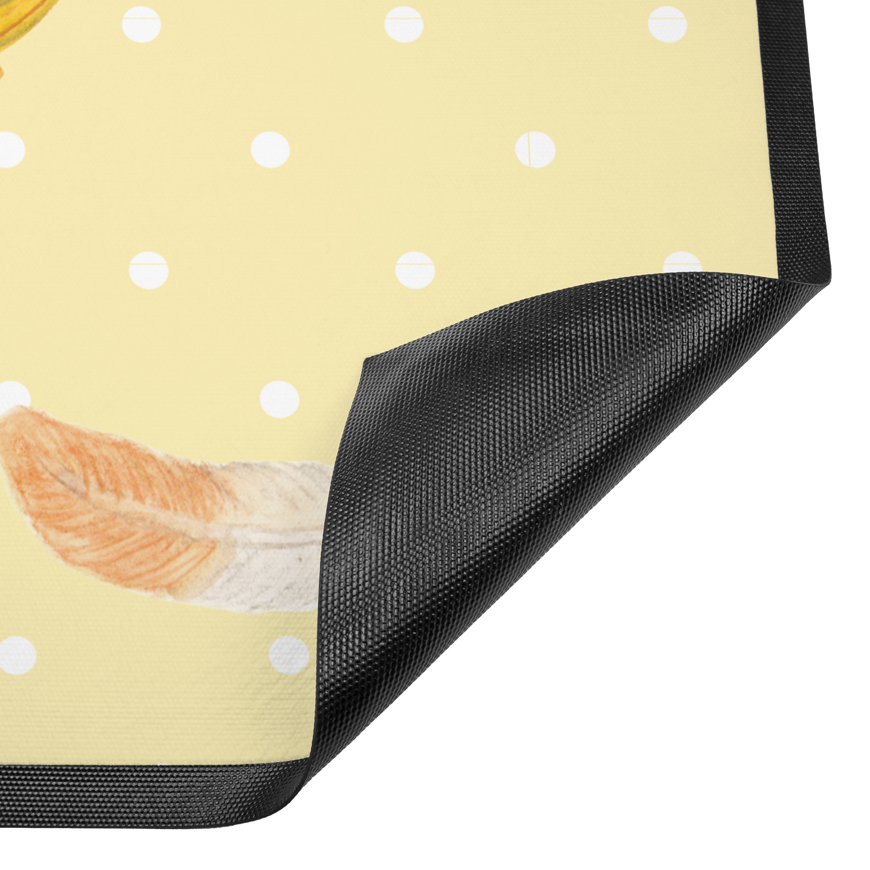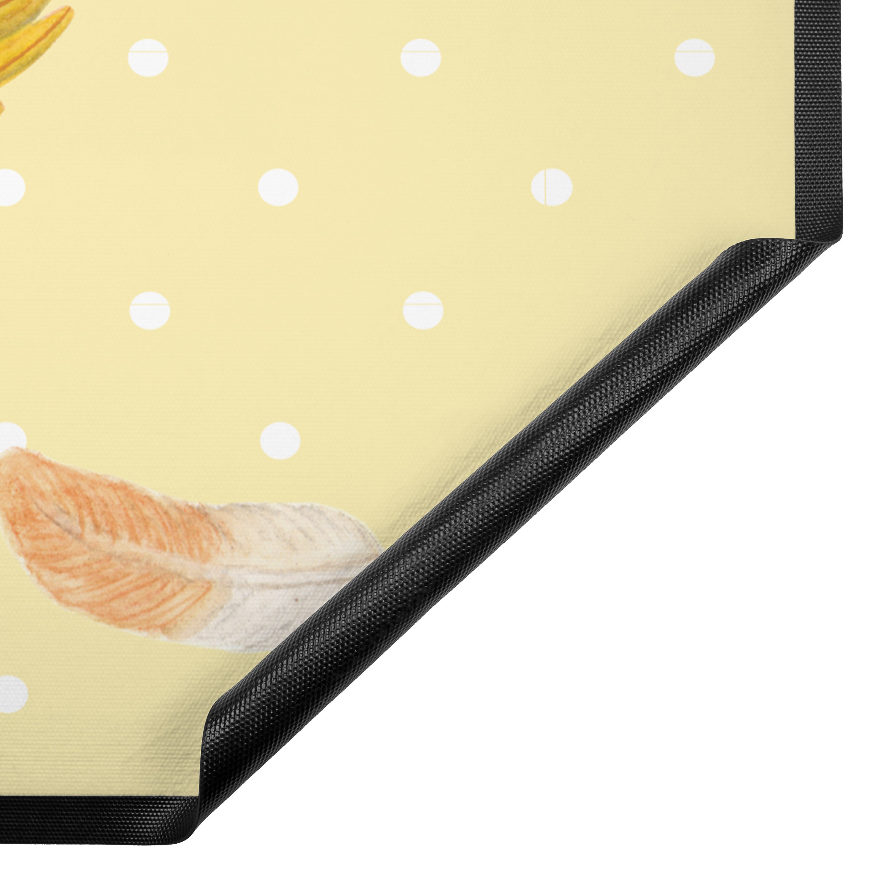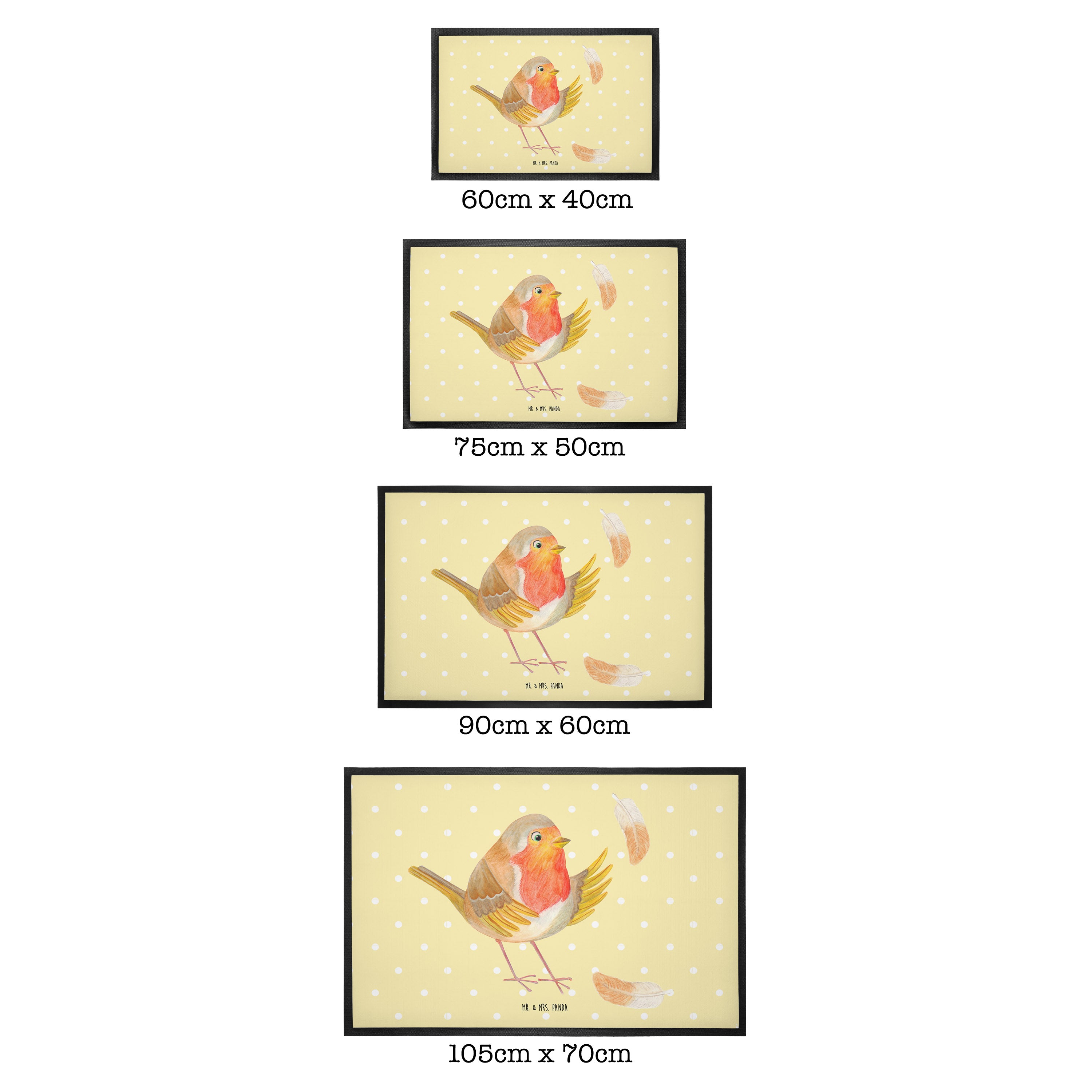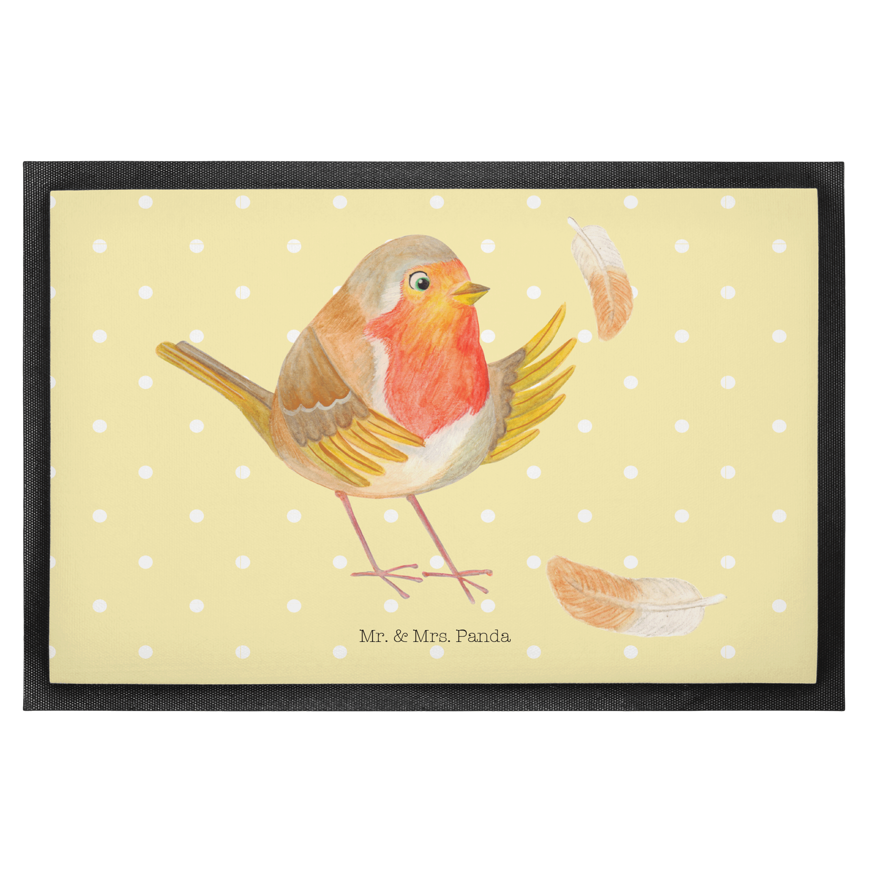 Fußmatte Rotkehlchen mit Federn - 60 x 90 cm - mit Spruch - Gelb Pastell