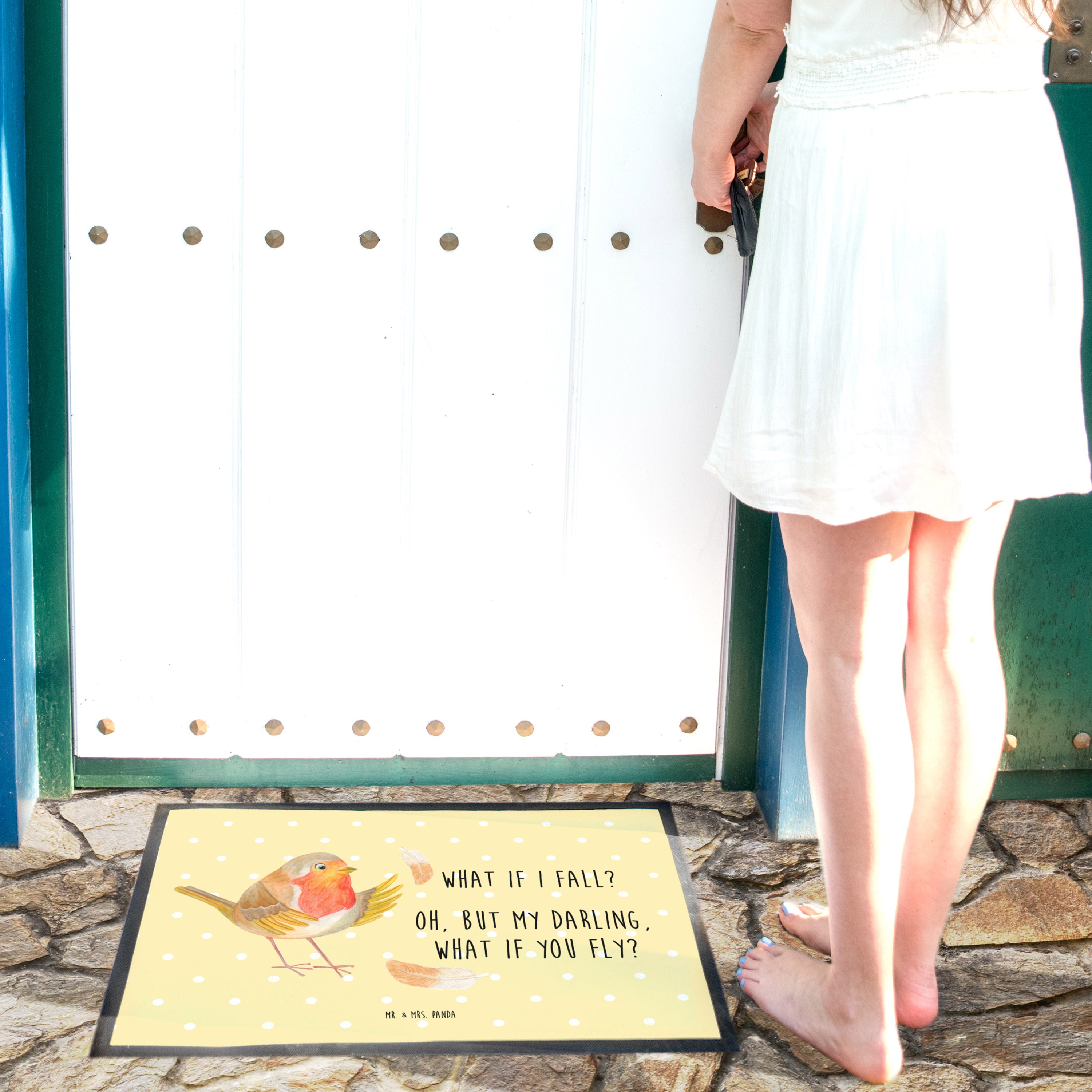 Fußmatte Rotkehlchen mit Federn What if i fall, Rotkehlchen, Spruch Motivation, Spruch Mut, Vogel, Motivation Sprüche, Motivationsbilder, fliegen  Türvorleger, Schmutzmatte, Fußabtreter, Matte, Schmutzfänger, Fußabstreifer, Schmutzfangmatte, Türmatte, Motivfußmatte,  Haustürmatte, Vorleger  süße Tiermotive, gute Laune, lustige Sprüche, Tiere