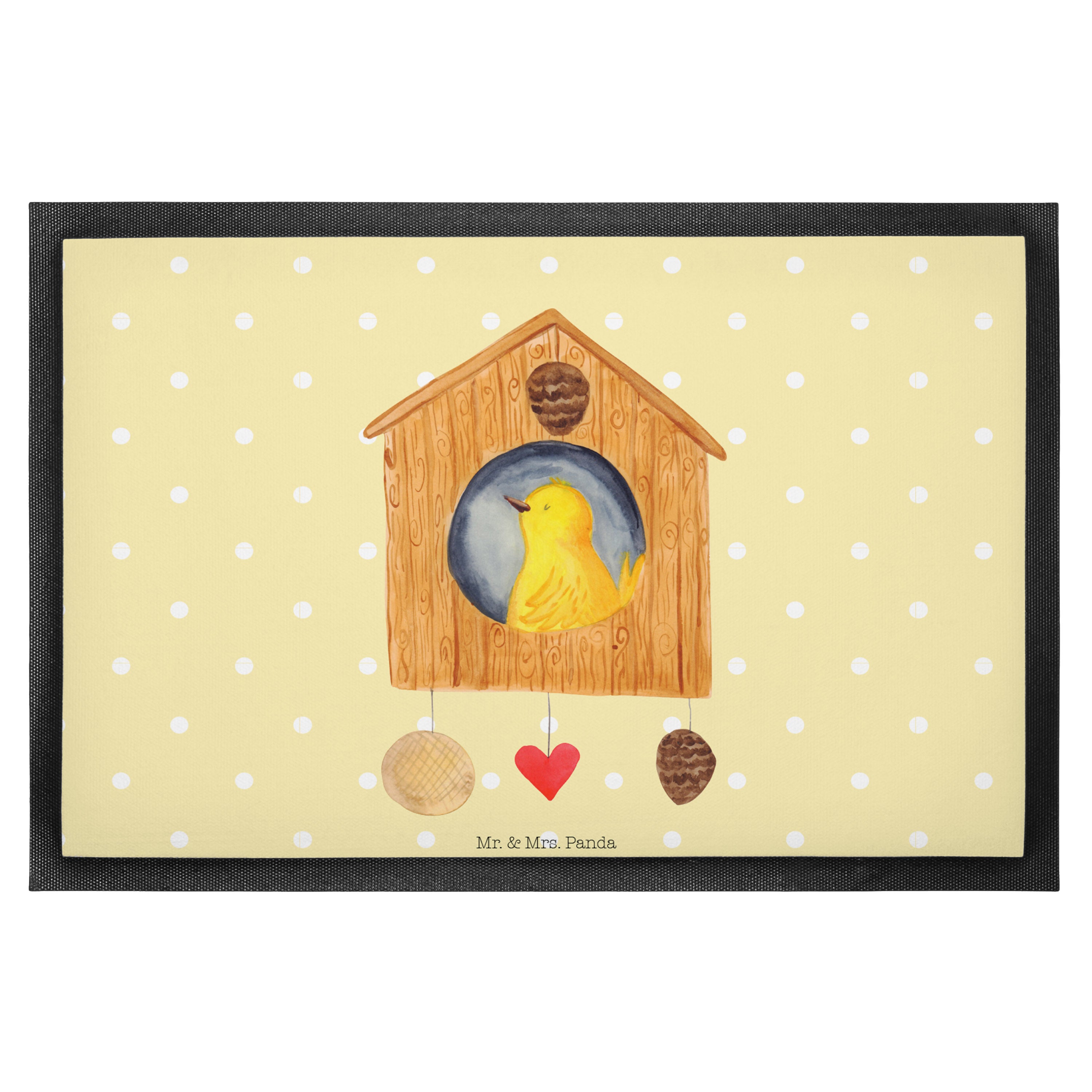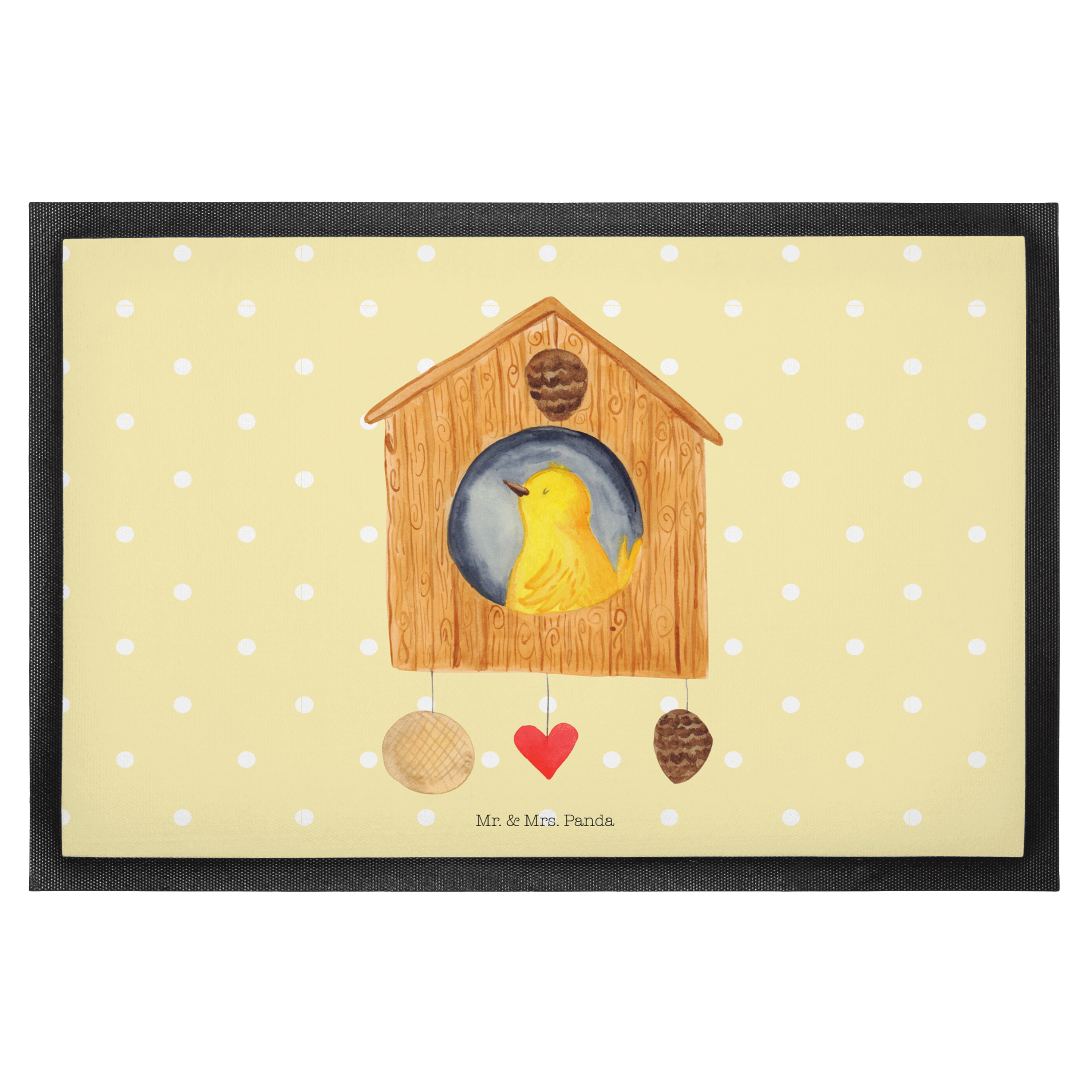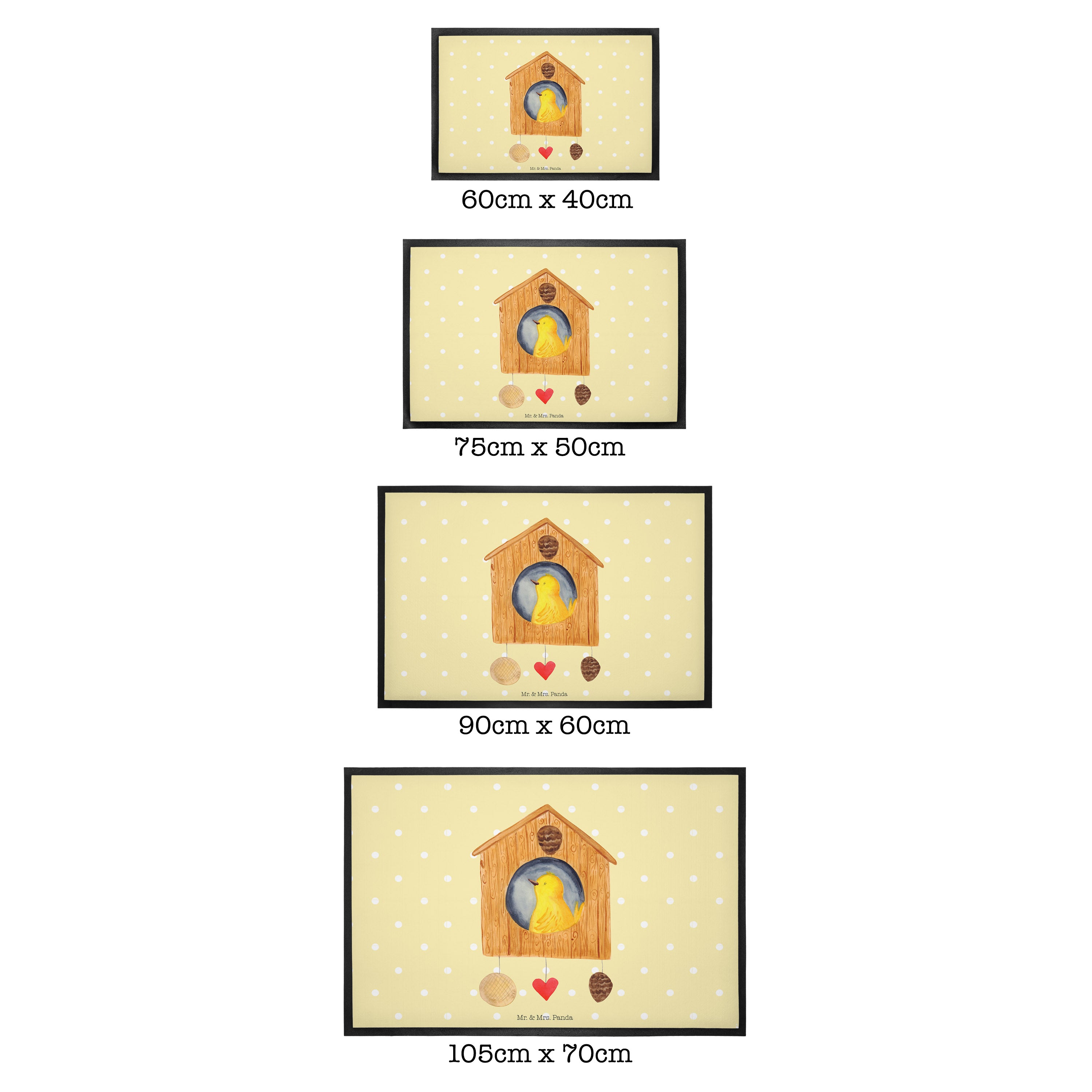 Fußmatte Vogelhaus - 60 x 90 cm - mit Spruch - Gelb Pastell