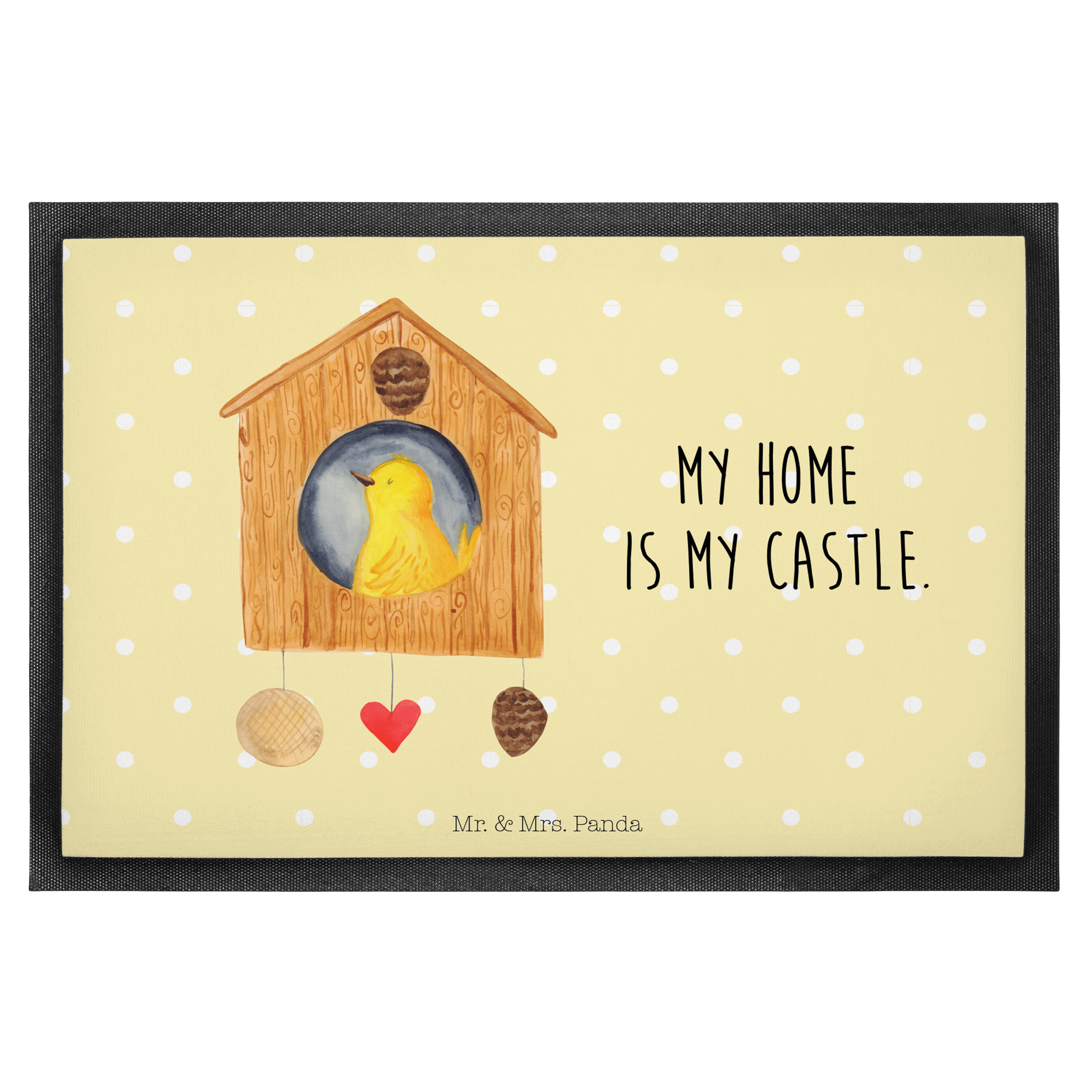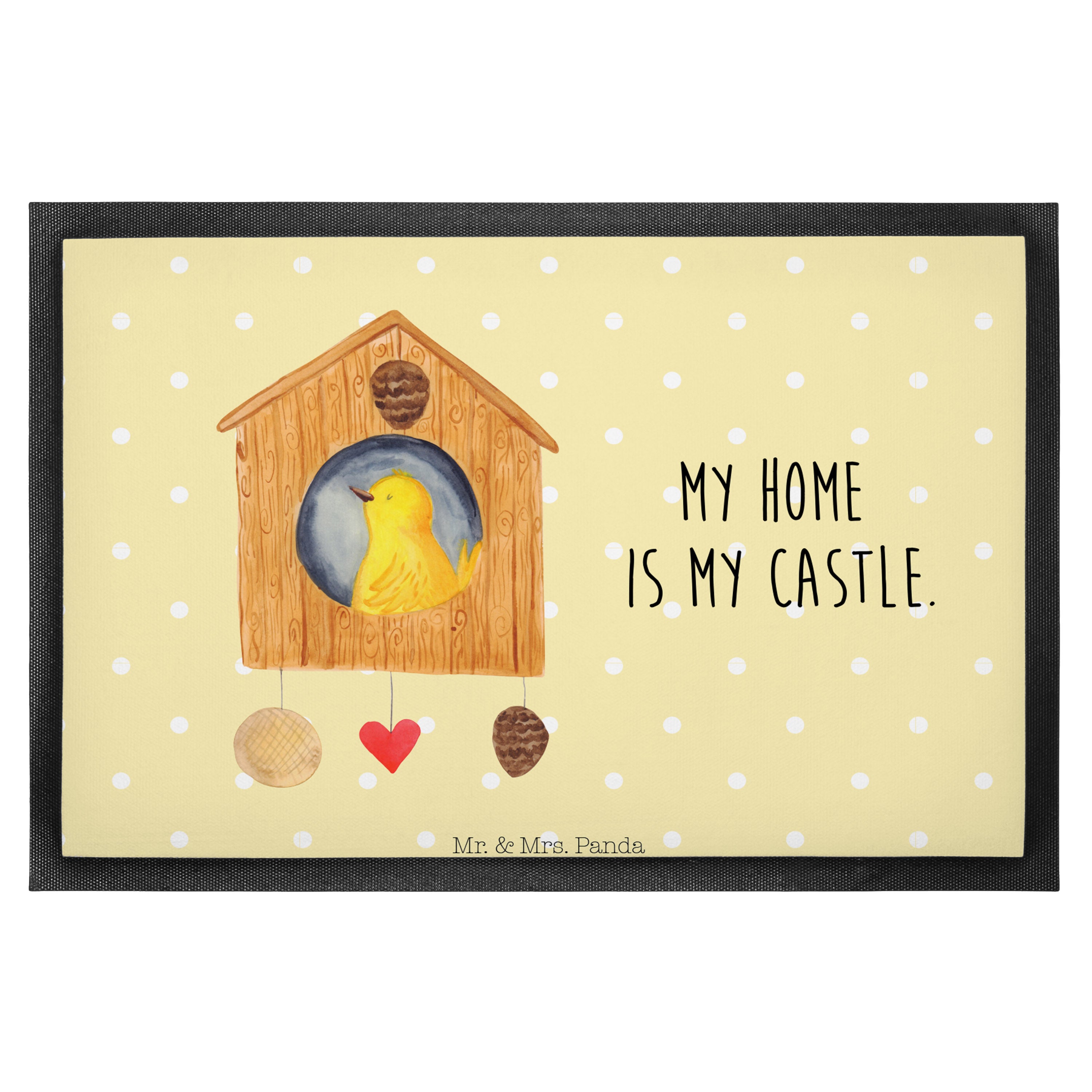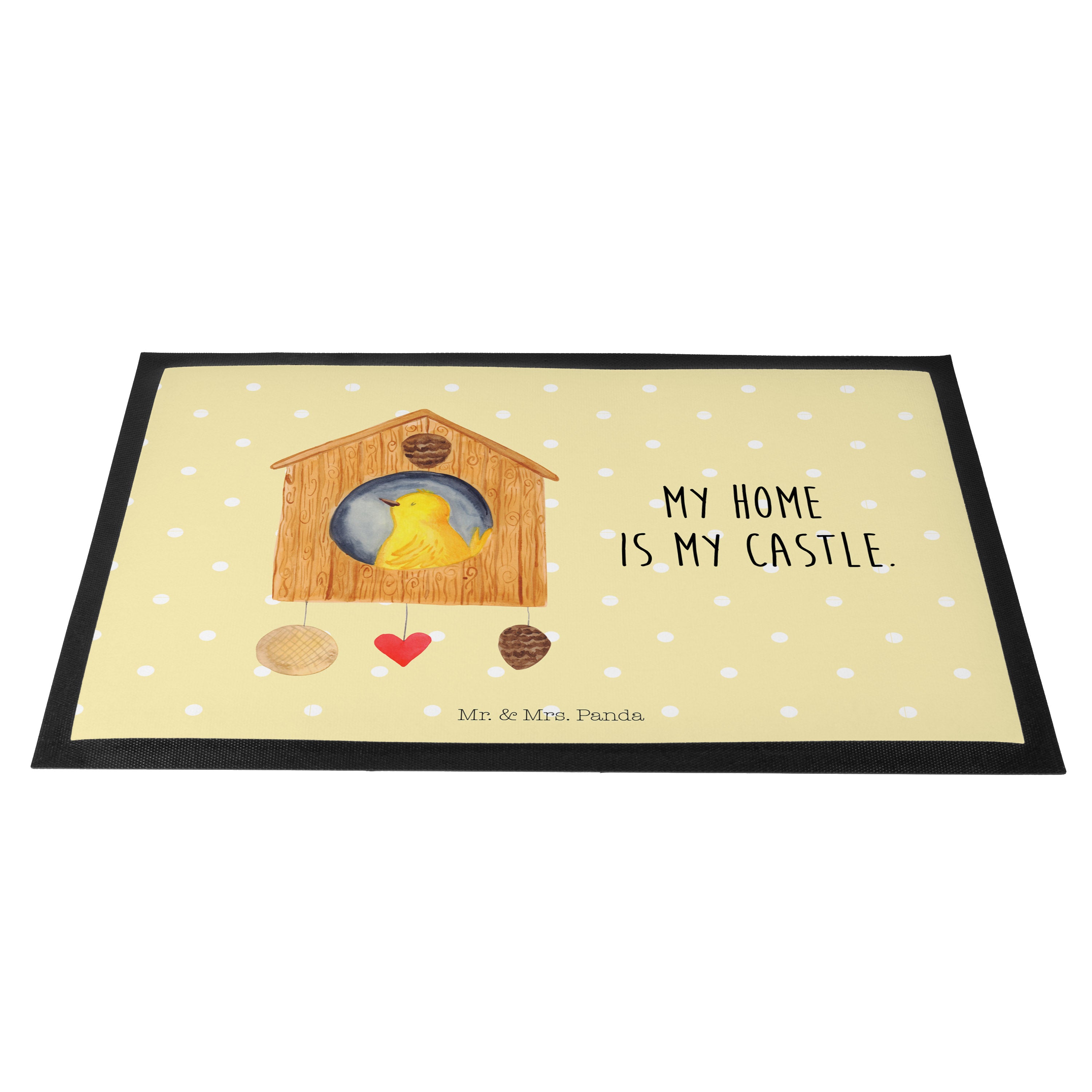 Fußmatte Vogelhaus - 60 x 90 cm - mit Spruch - Gelb Pastell