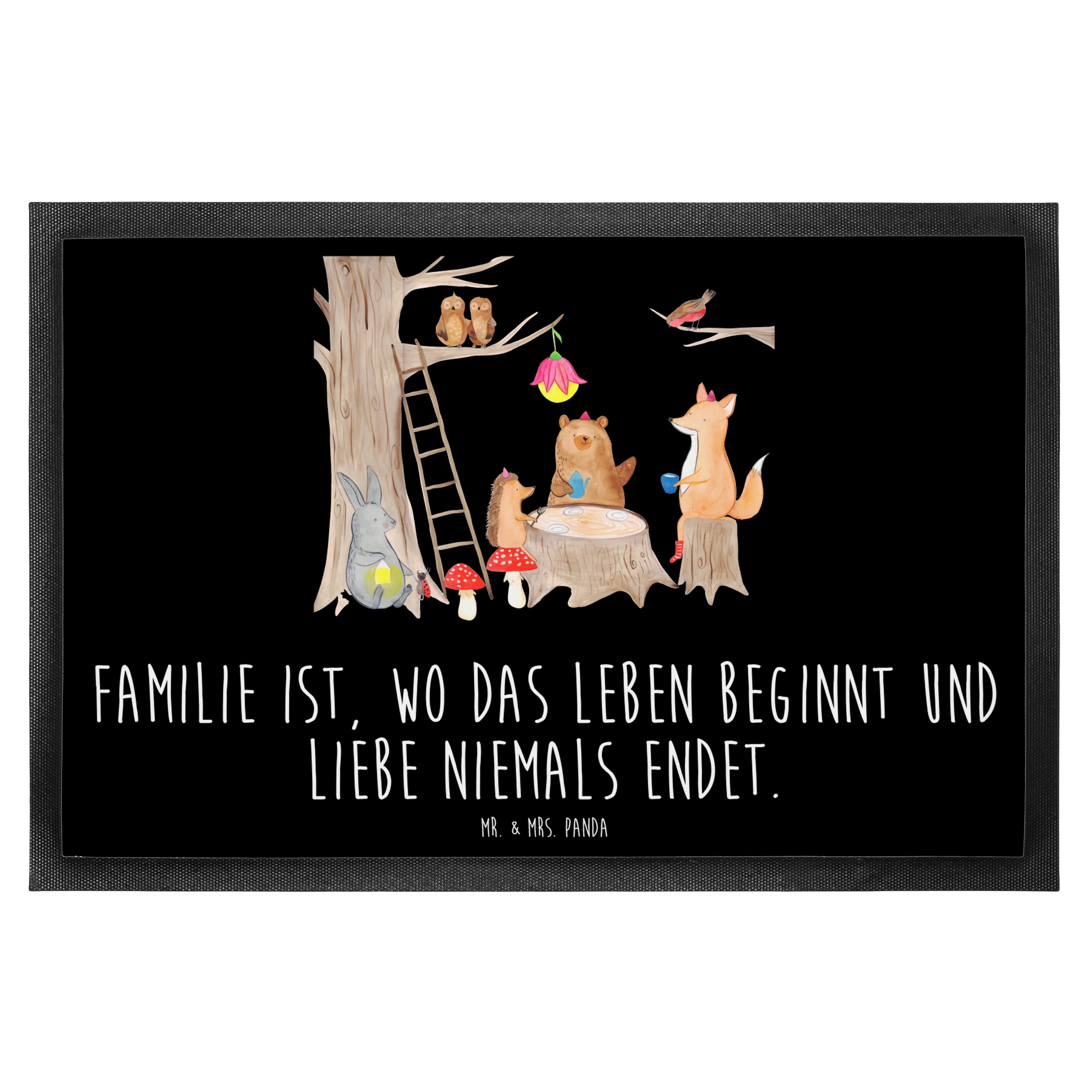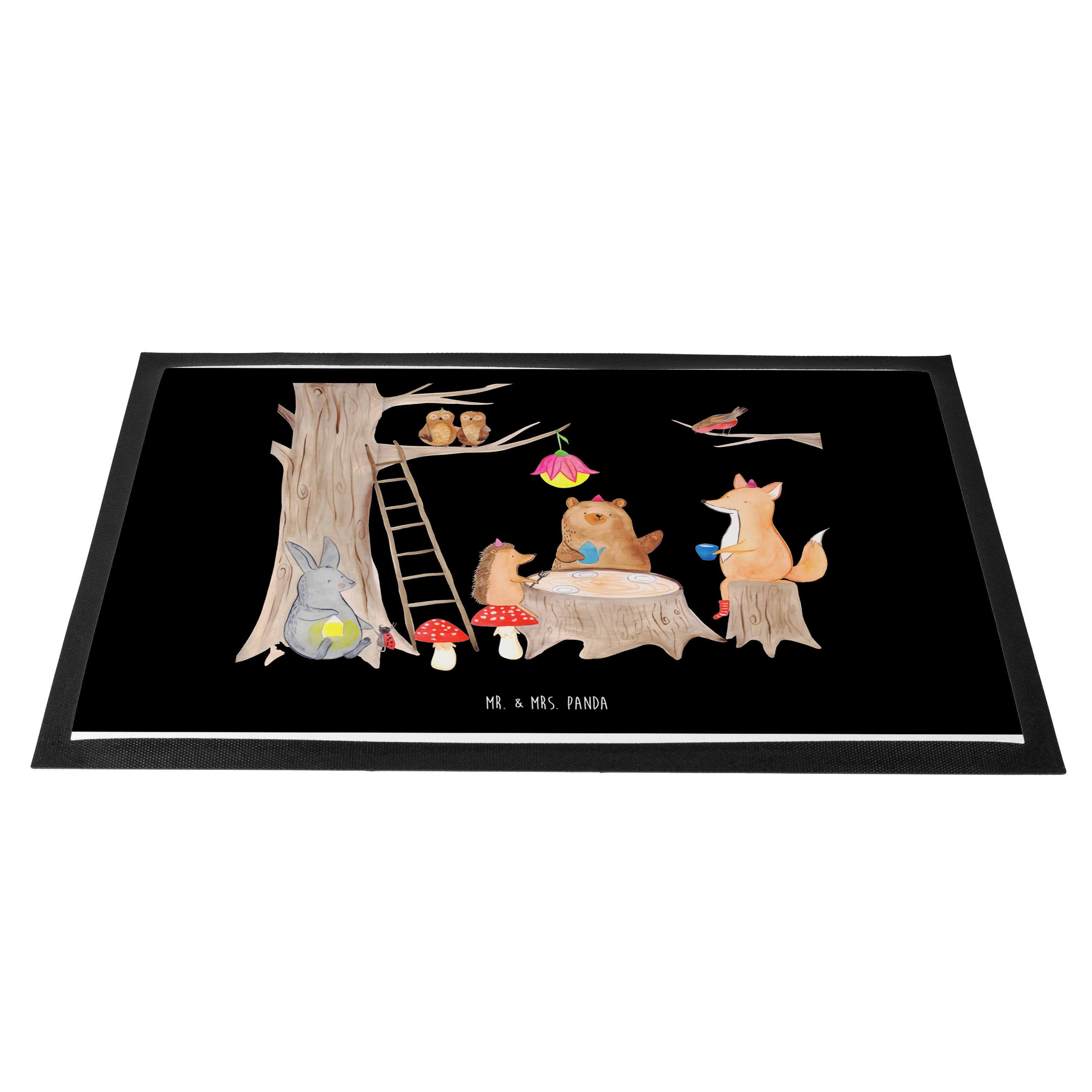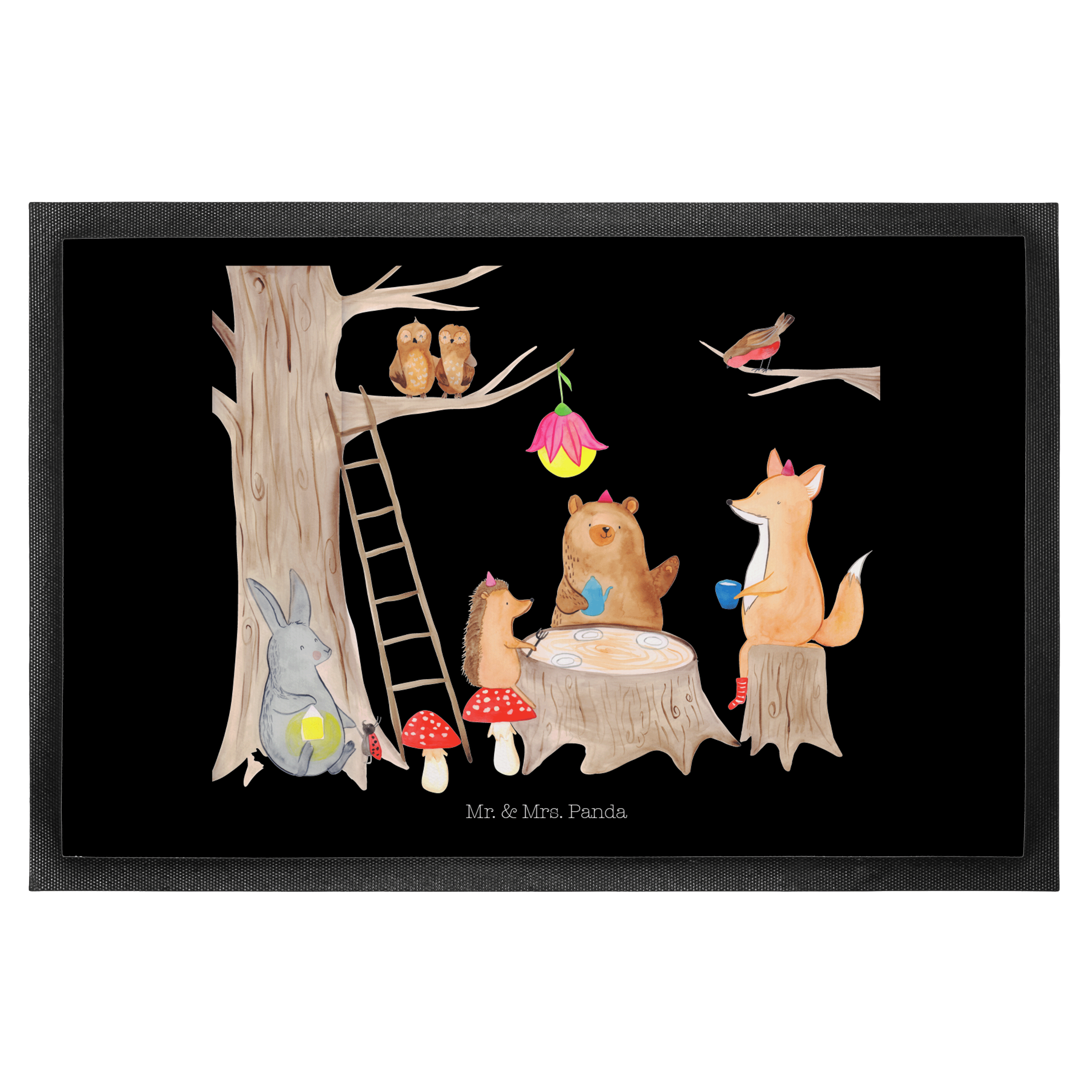 Fußmatte Waldtiere Picknick - 60 x 90 cm - mit Spruch - Schwarz