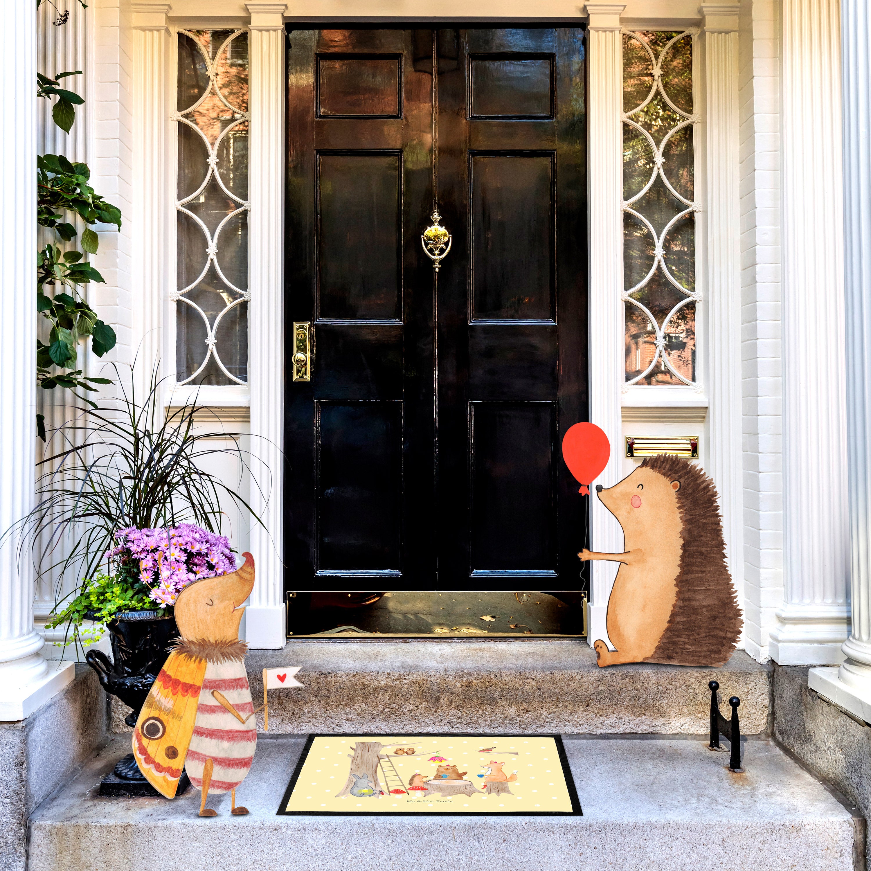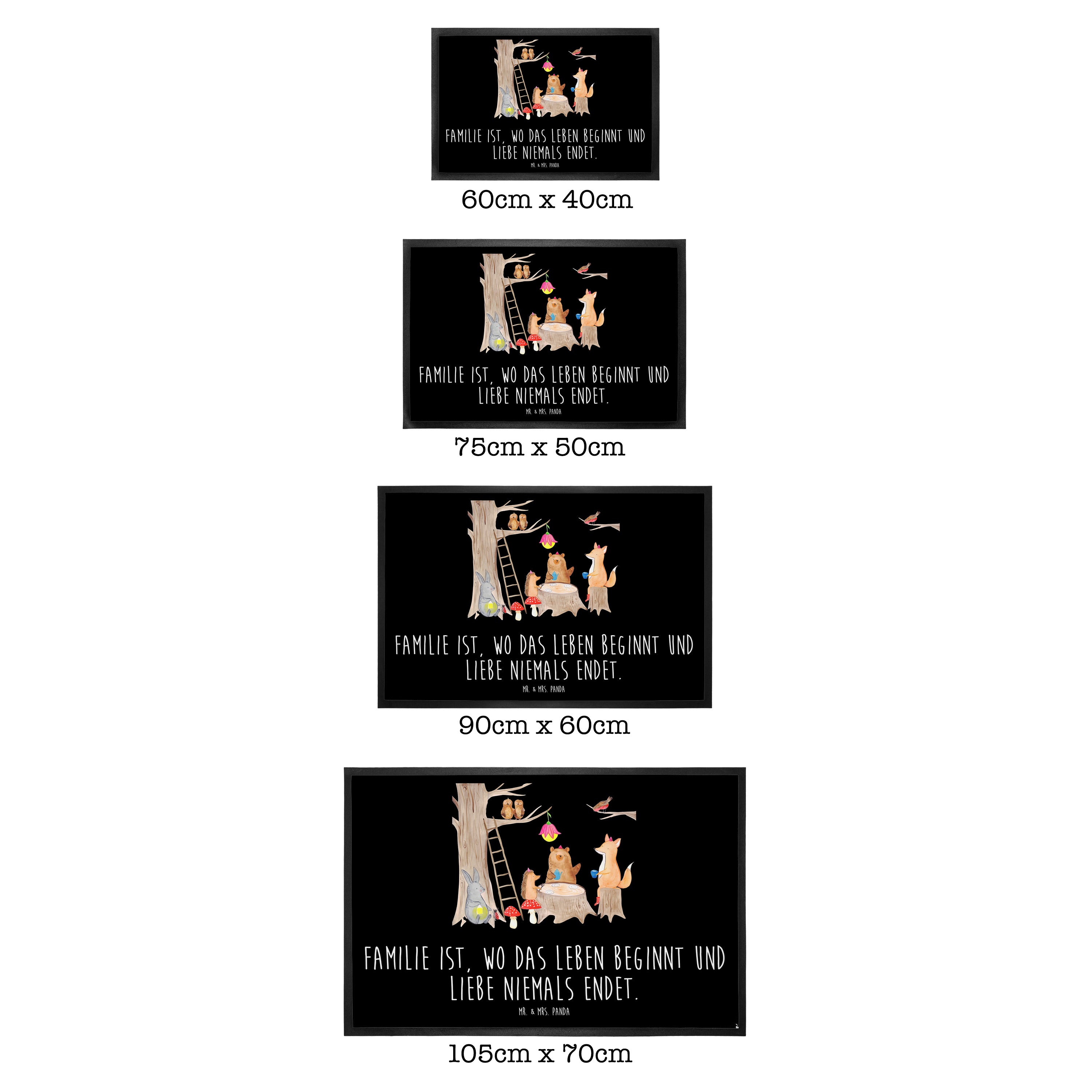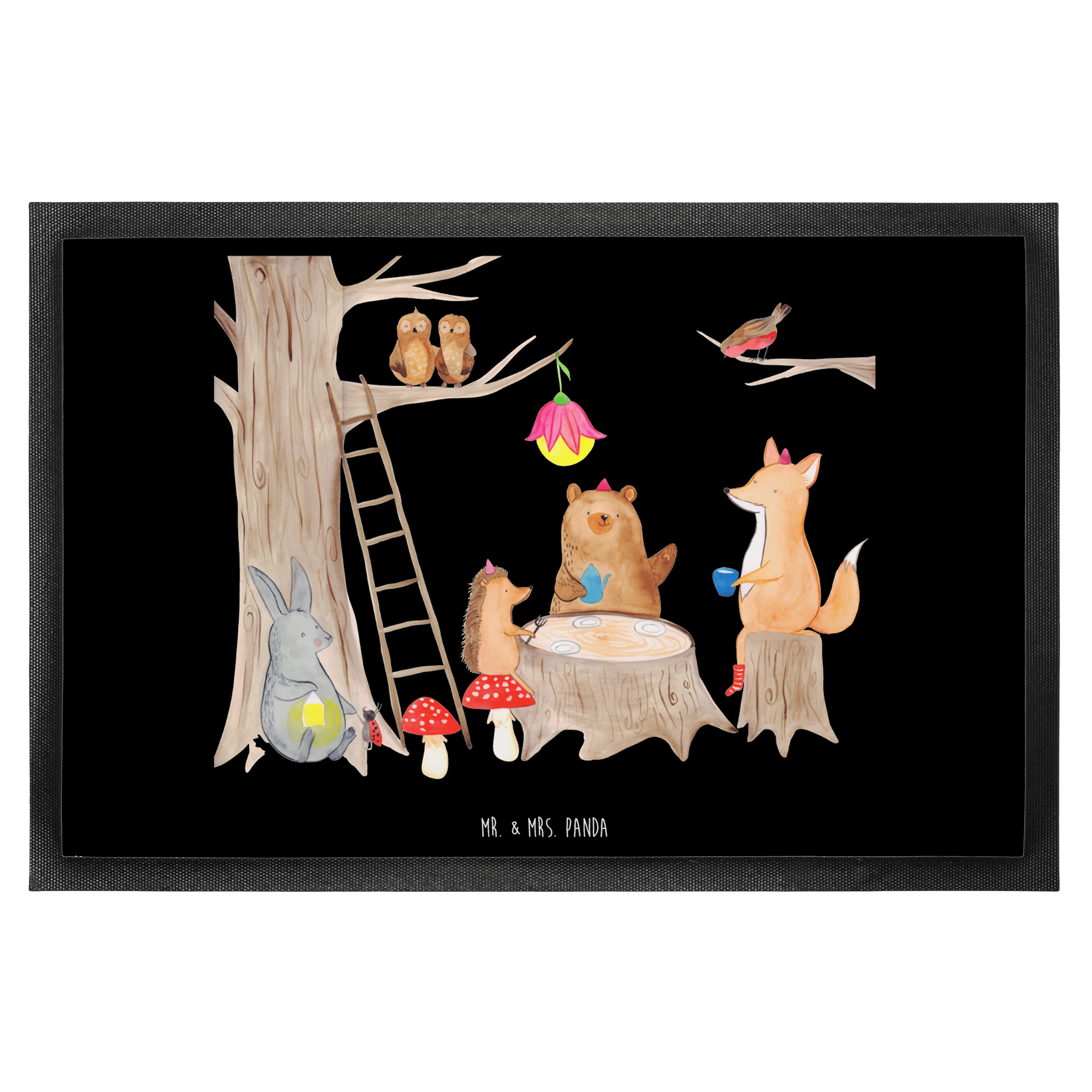 Fußmatte Waldtiere Picknick - 60 x 90 cm - mit Spruch - Schwarz