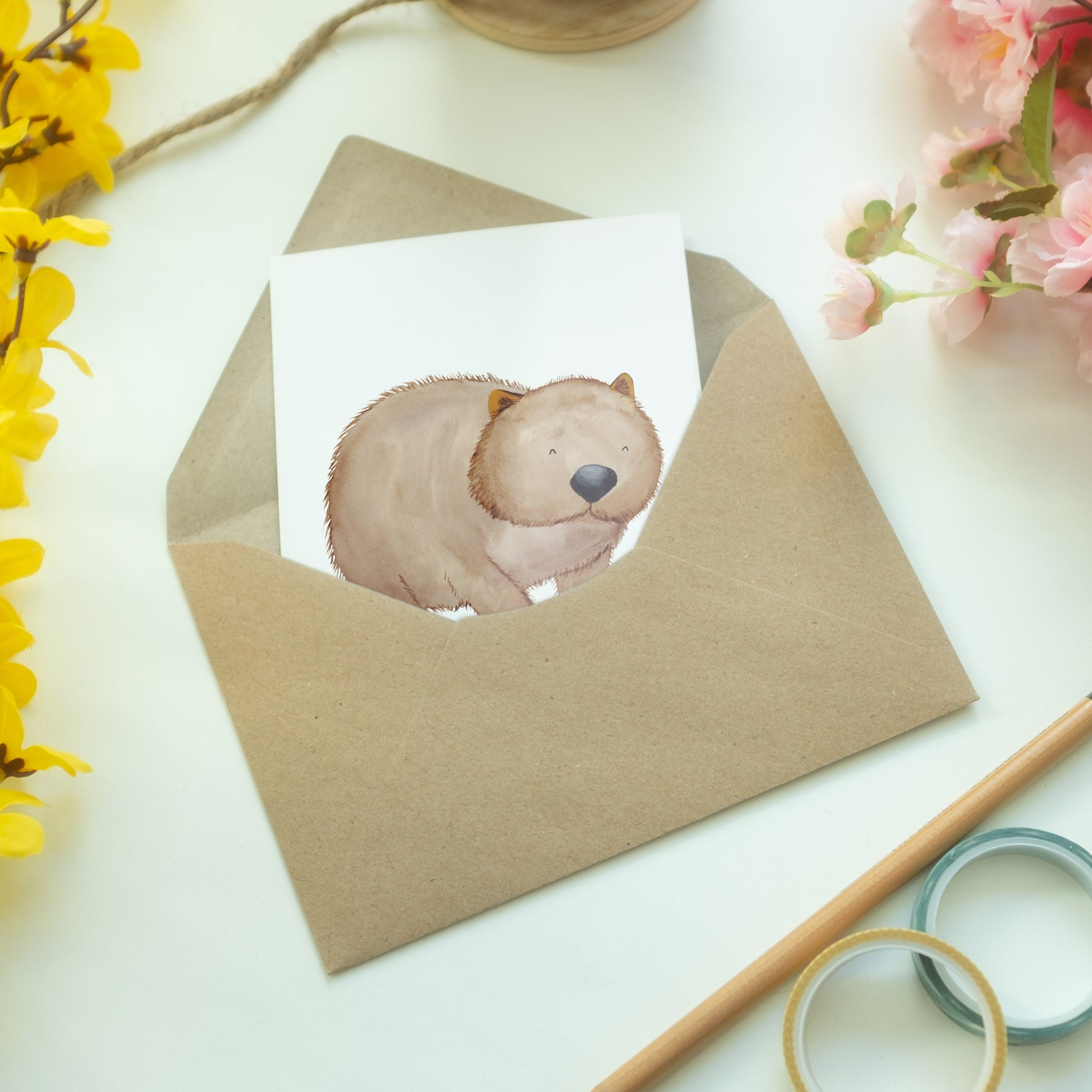 Grußkarte Wombat - mit Spruch - Gelb Pastell
